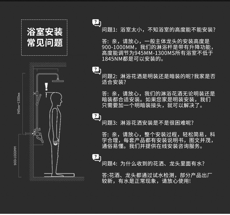 • 10inch 정사각형 방폭 304 헤드 + 46CM 크로스바 + 1.5m 호스