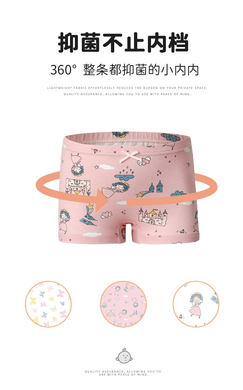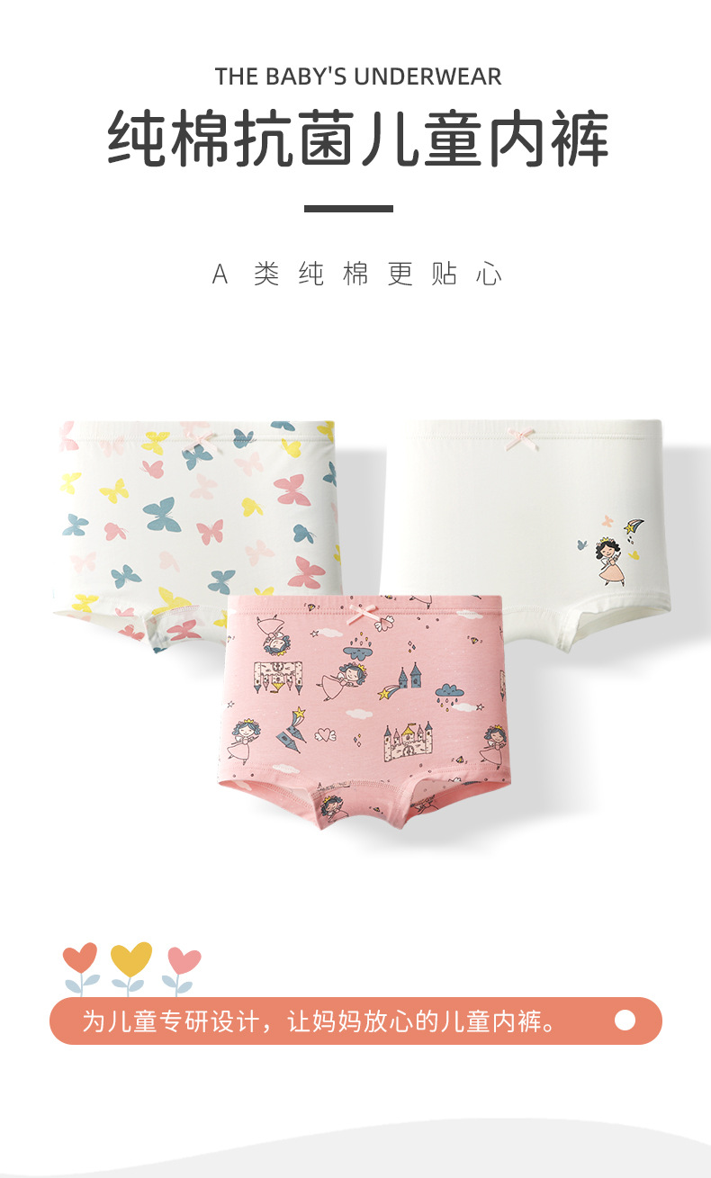 여아 순면 A급 속옷, 봄철 사각팬티, 아동 속옷, 여아용 만화 캐릭터 사각팬티, 엉덩이에 꼬임 없는 속옷스토어 가기
