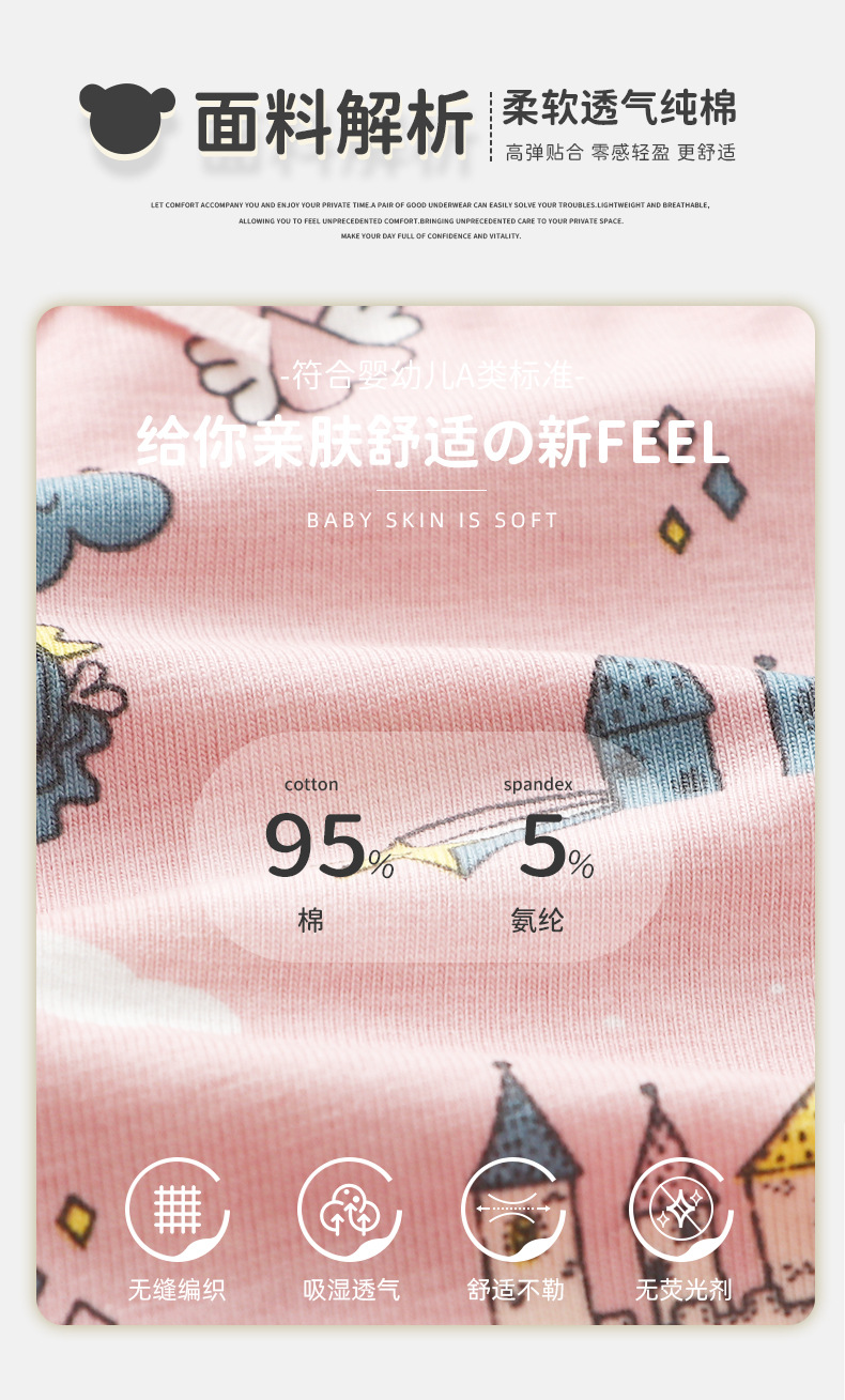 여아 순면 A급 속옷, 봄철 사각팬티, 아동 속옷, 여아용 만화 캐릭터 사각팬티, 엉덩이에 꼬임 없는 속옷