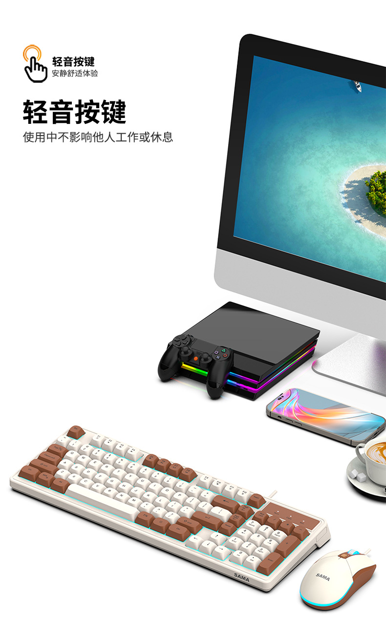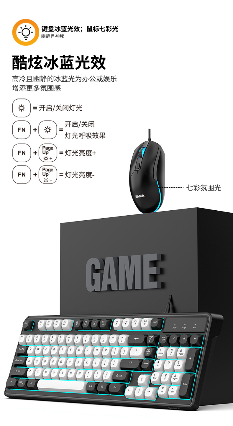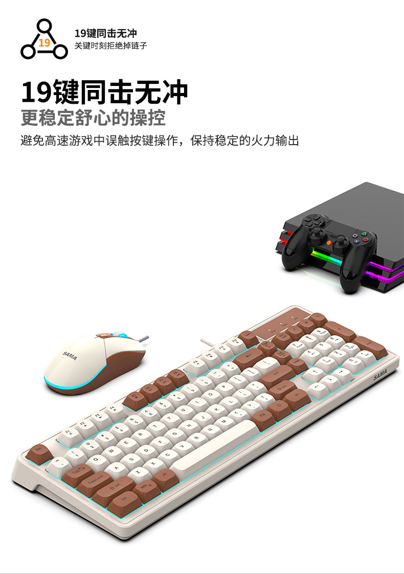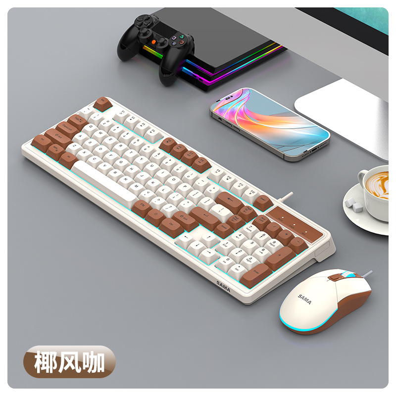 Sama GW980 컬러 매칭 키보드 및 마우스 세트 키보드 USB 비즈니스 오피스 게임용 키보드 및 마우스 세트스토어 가기