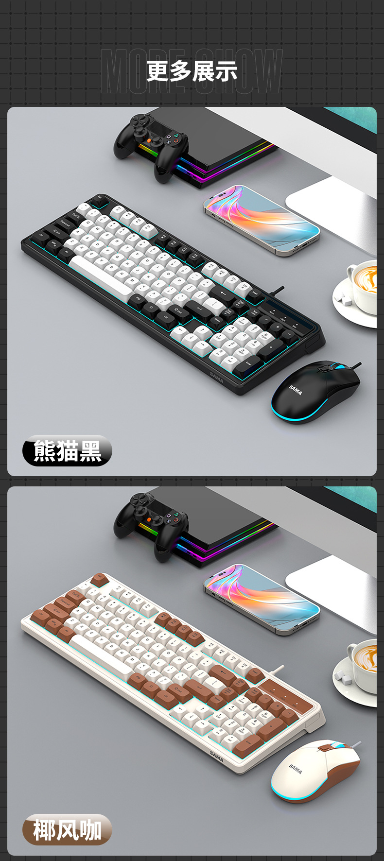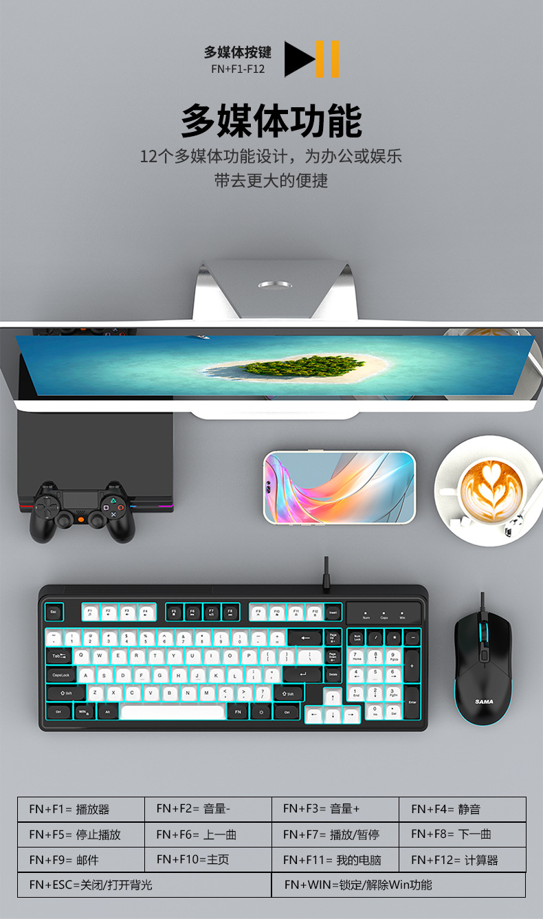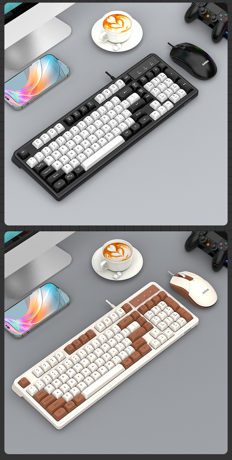 Sama GW980 컬러 매칭 키보드 및 마우스 세트 키보드 USB 비즈니스 오피스 게임용 키보드 및 마우스 세트스토어 가기