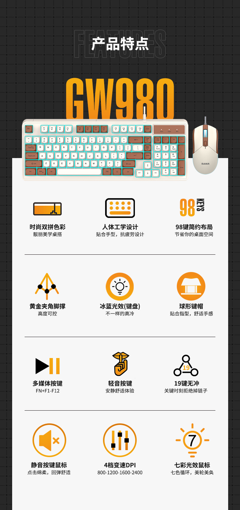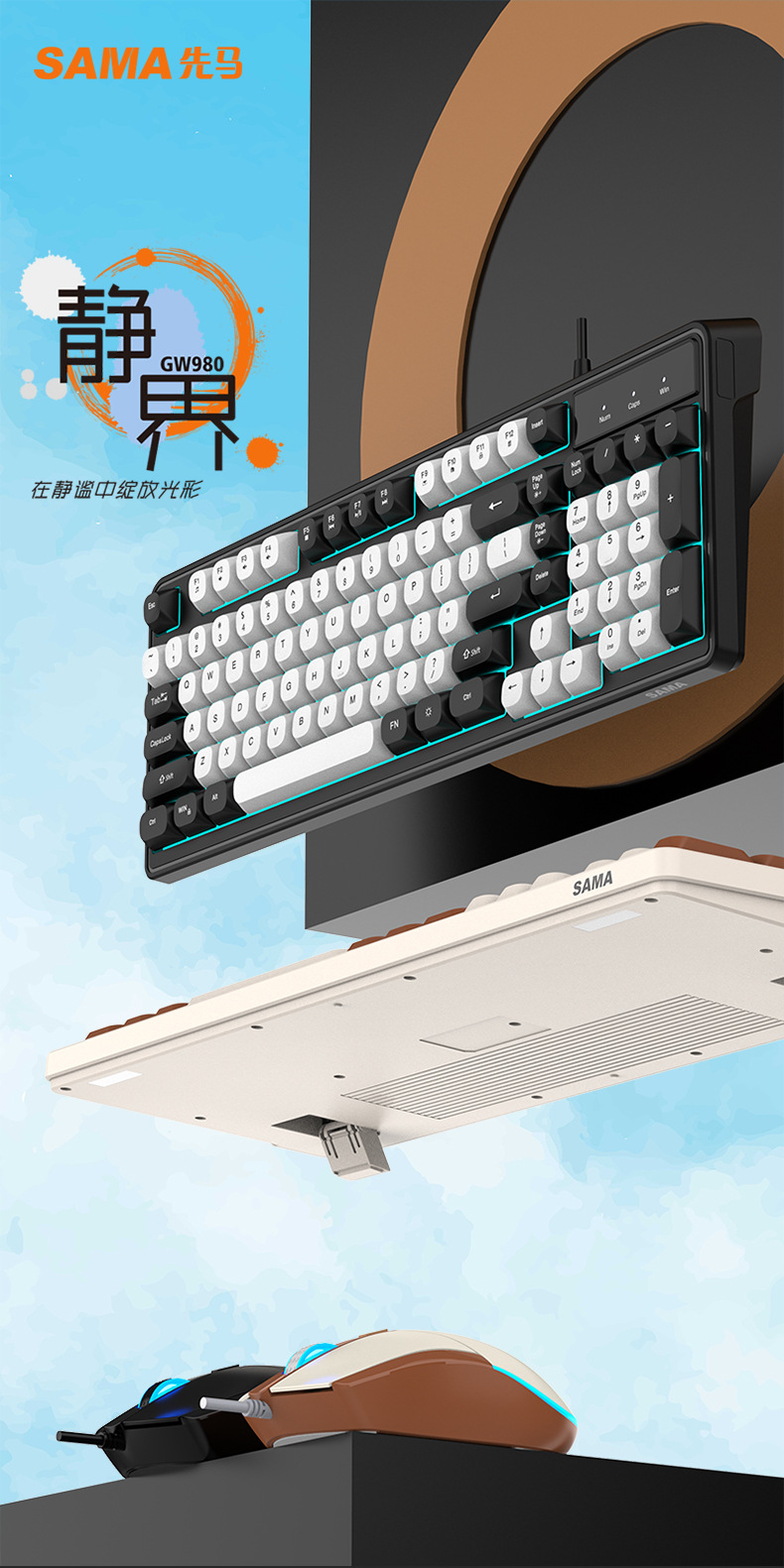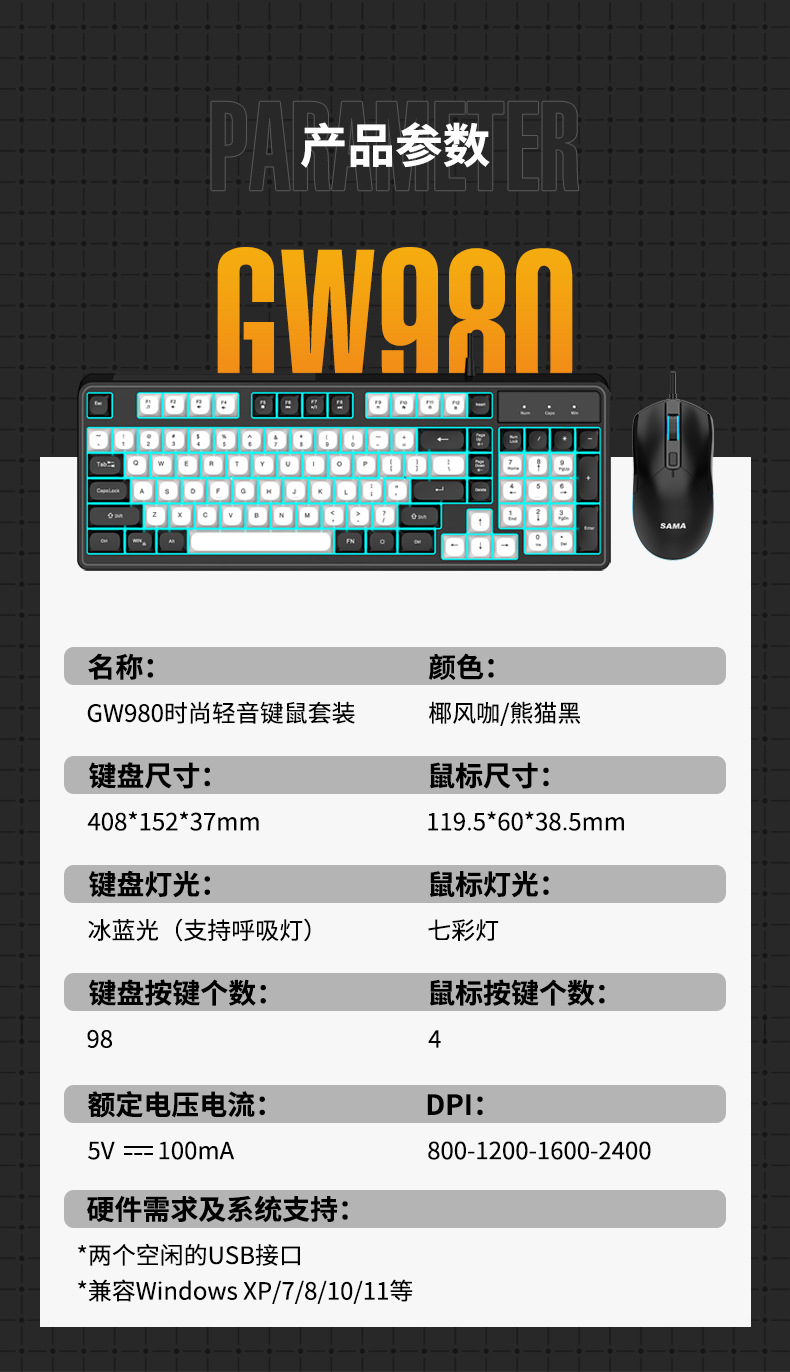 Sama GW980 컬러 매칭 키보드 및 마우스 세트 키보드 USB 비즈니스 오피스 게임용 키보드 및 마우스 세트