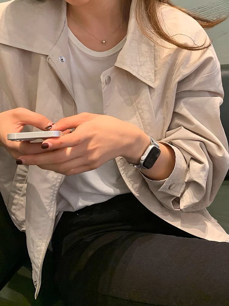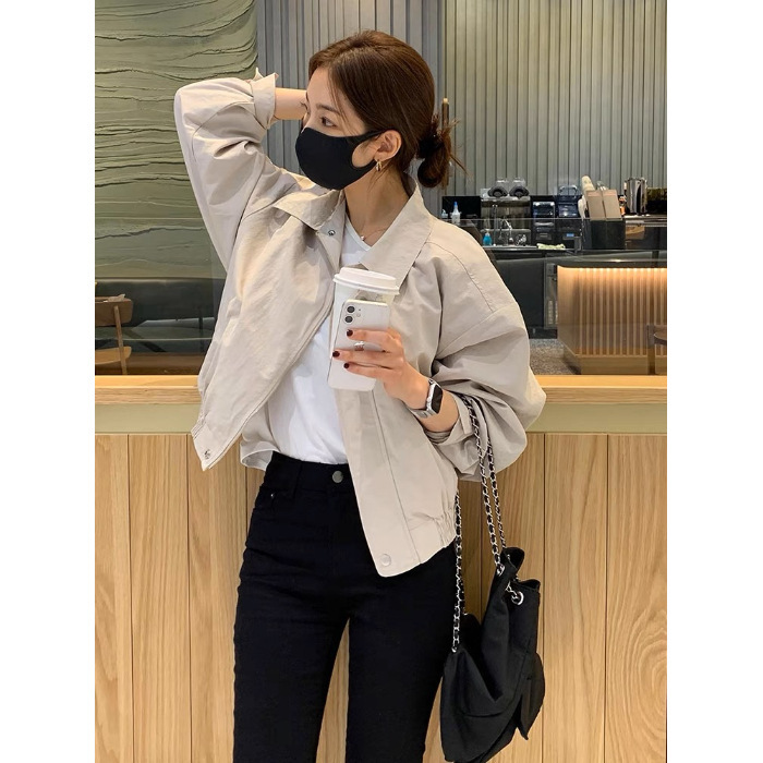 여성을위한 한국 세련된 가을 간단한 우아한 옷깃 얇은 느슨한 캐주얼 올 매치 짧은 긴팔 자켓스토어 가기