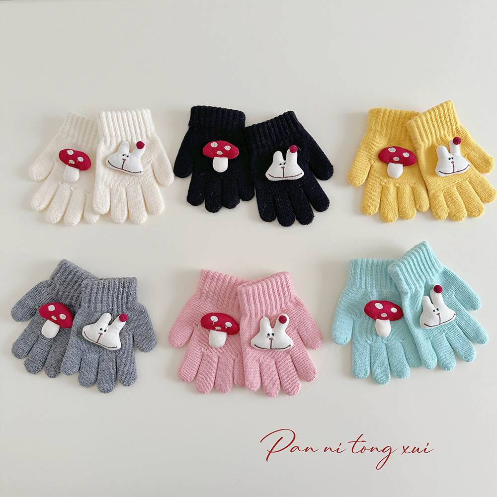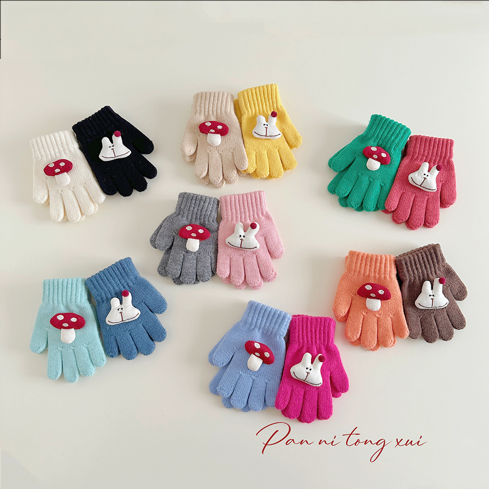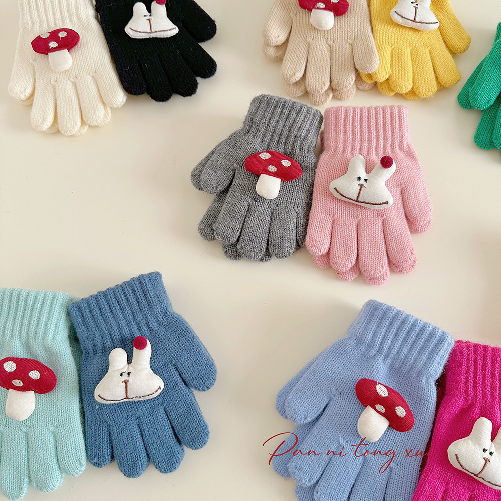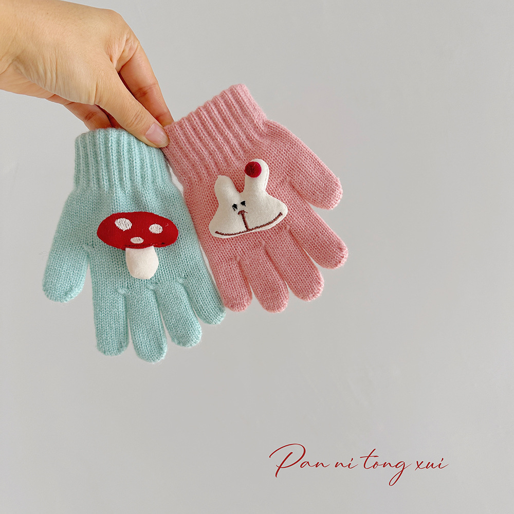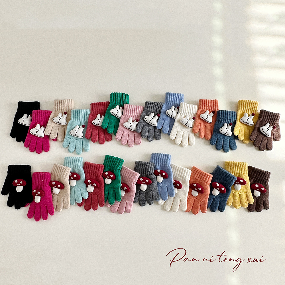 만화 다섯 손가락 겨울 어린이 장갑 따뜻한 겨울 장갑 양모 니트 귀여운 어린이 아기 손가락 장갑스토어 가기