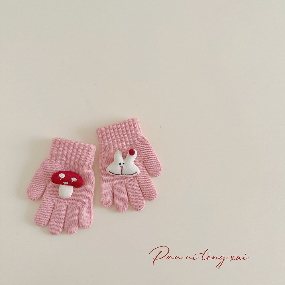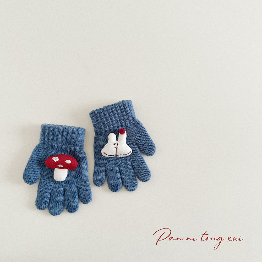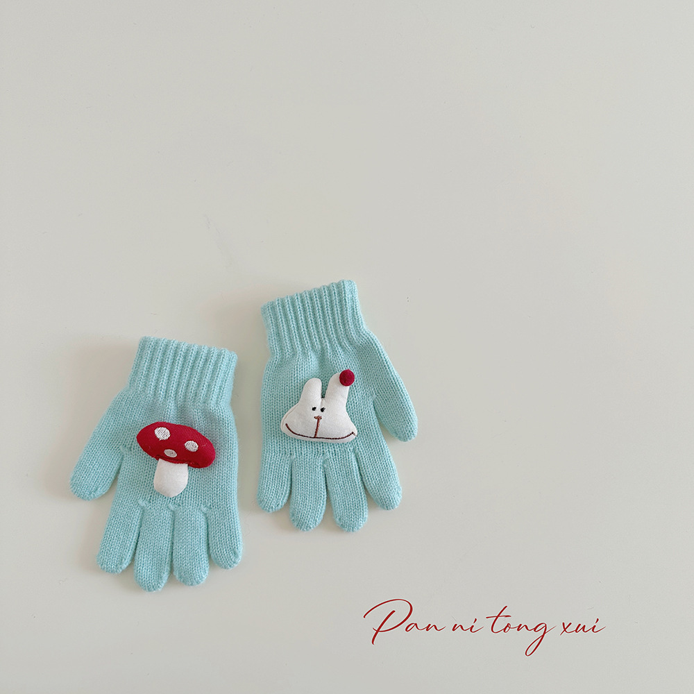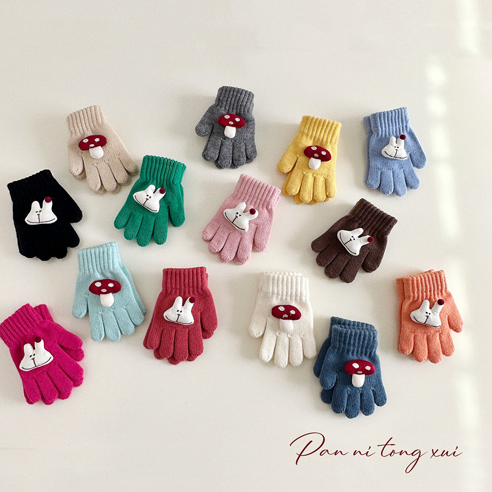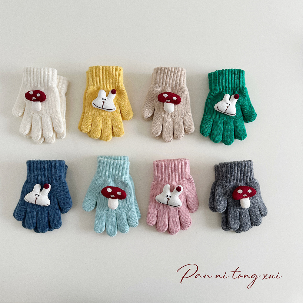 만화 다섯 손가락 겨울 어린이 장갑 따뜻한 겨울 장갑 양모 니트 귀여운 어린이 아기 손가락 장갑스토어 가기