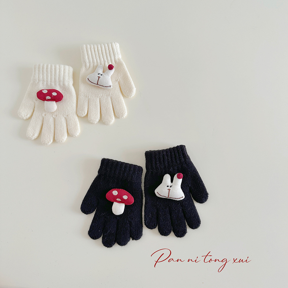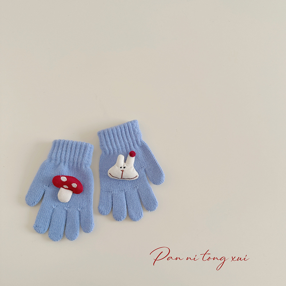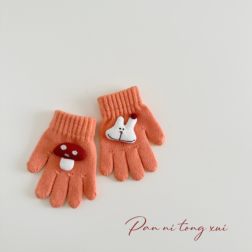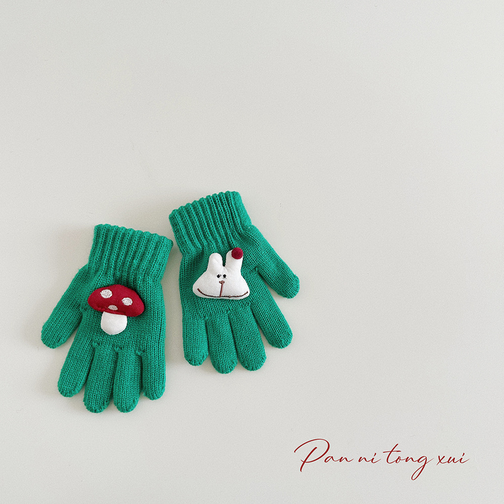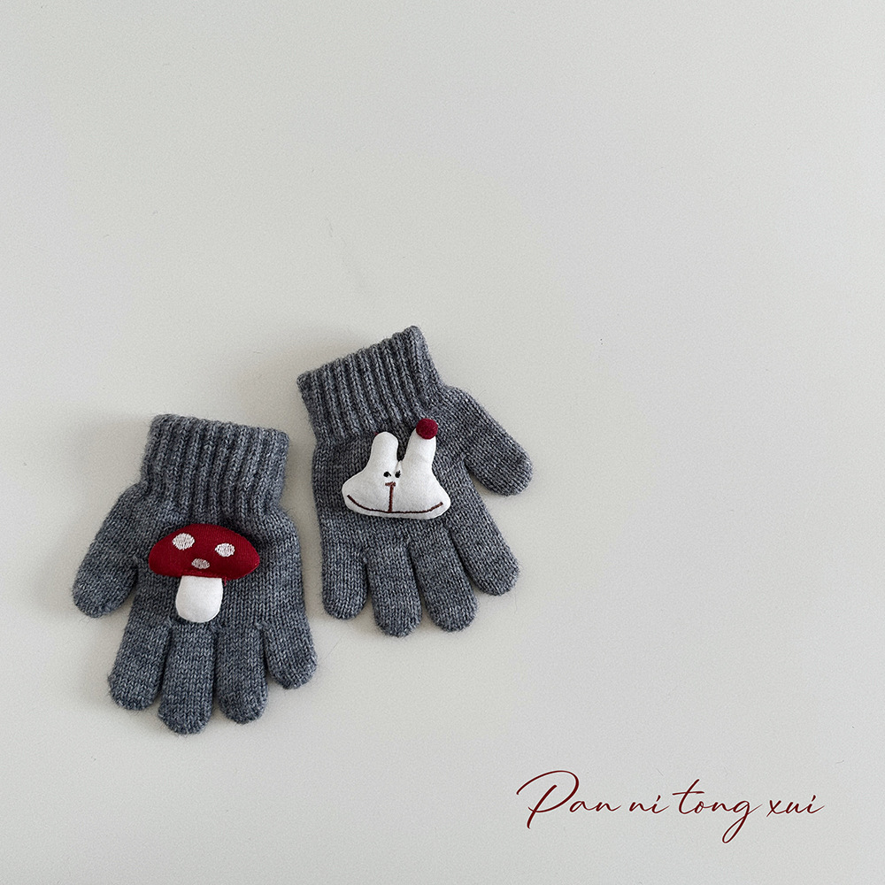 만화 다섯 손가락 겨울 어린이 장갑 따뜻한 겨울 장갑 양모 니트 귀여운 어린이 아기 손가락 장갑스토어 가기