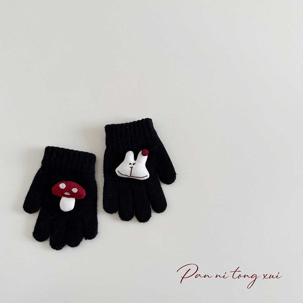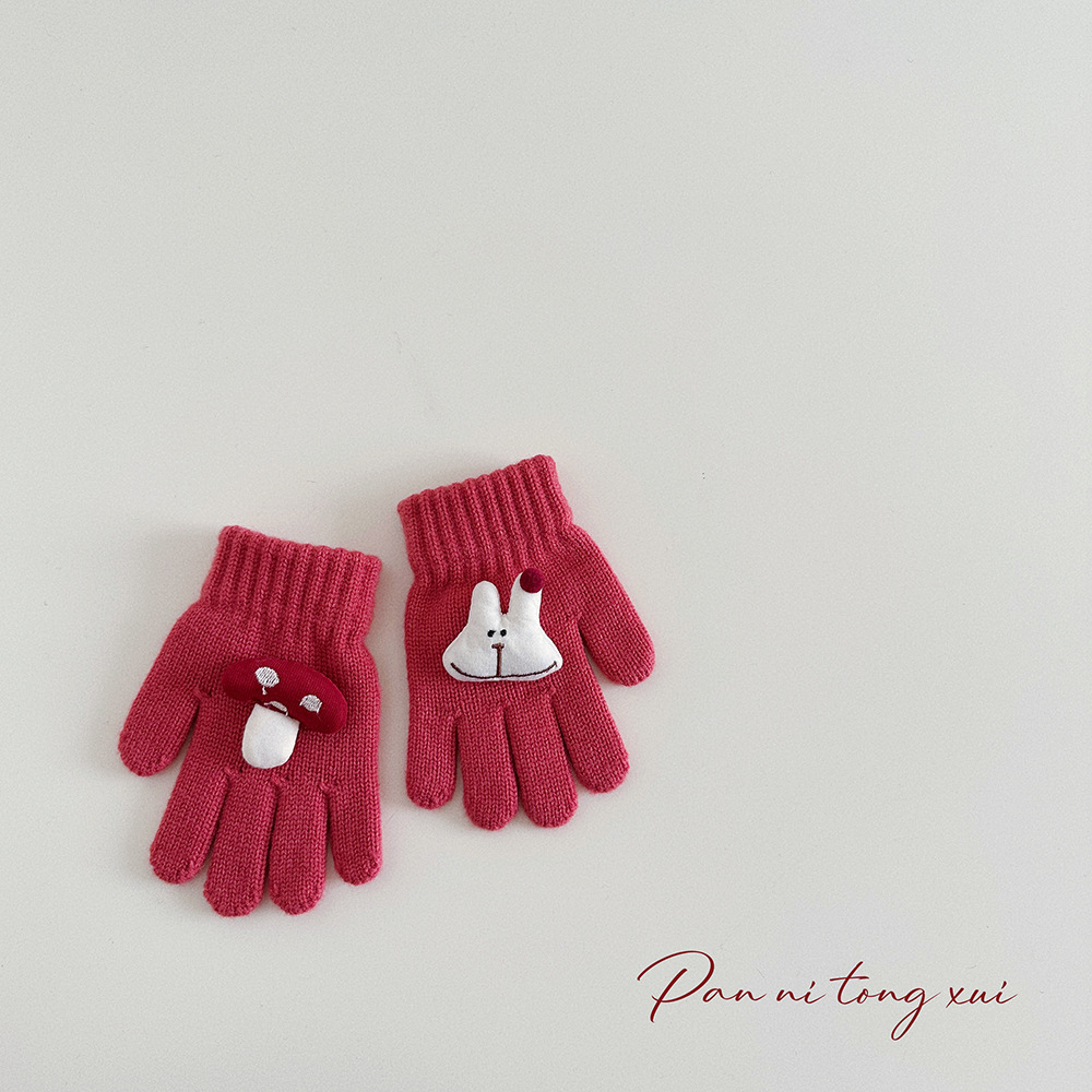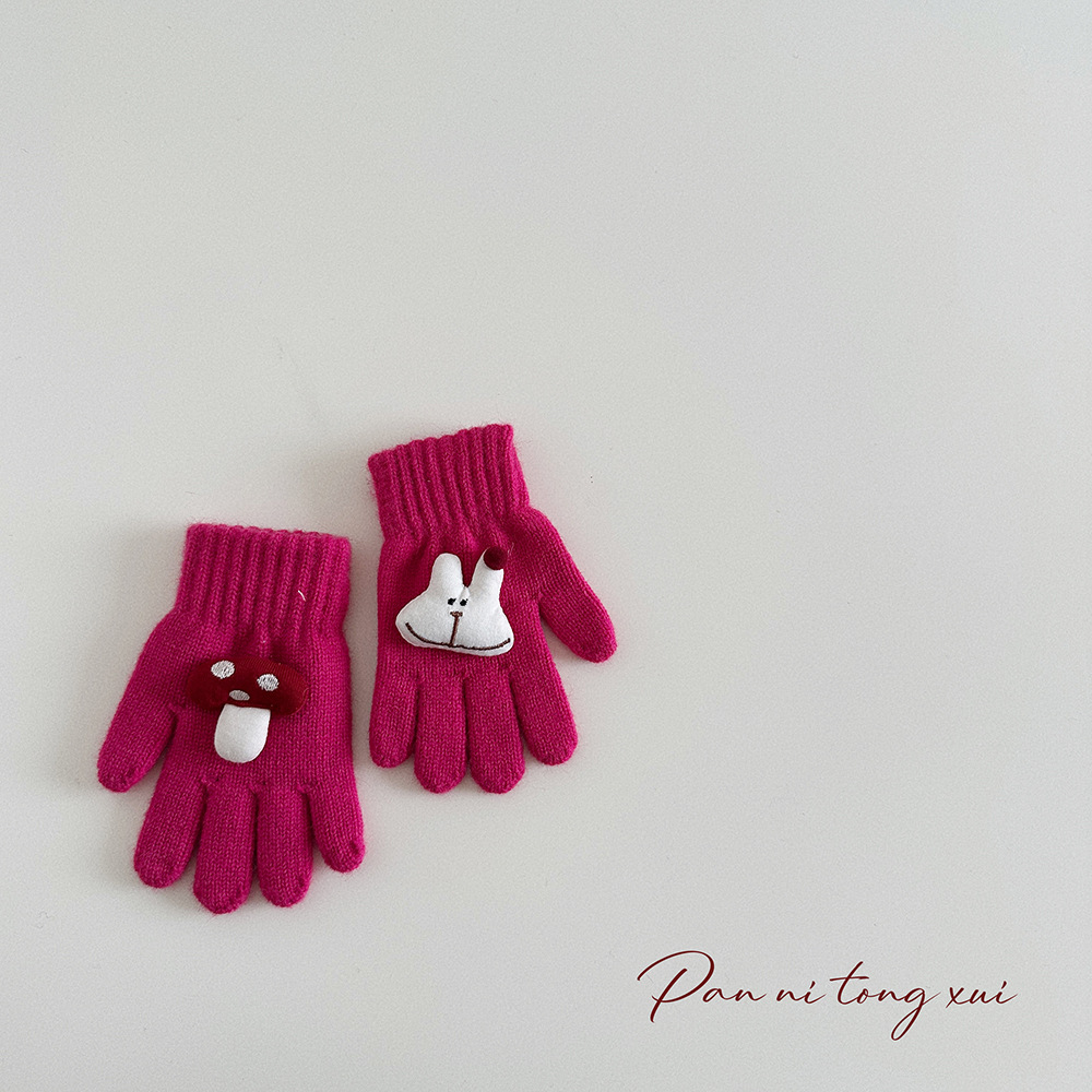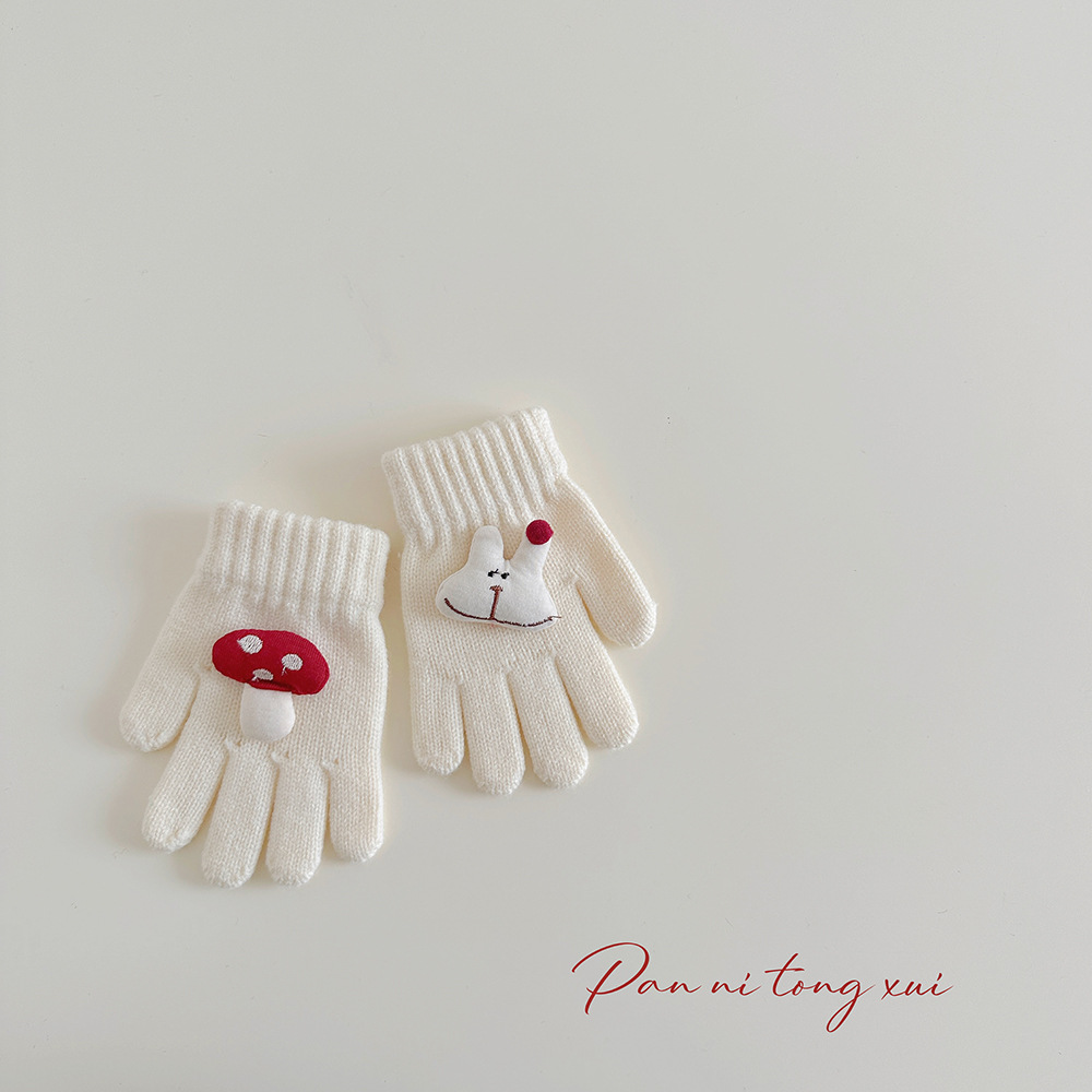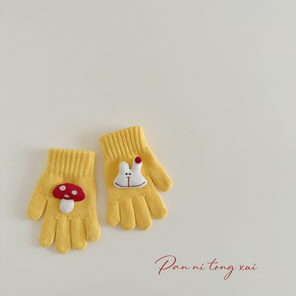 만화 다섯 손가락 겨울 어린이 장갑 따뜻한 겨울 장갑 양모 니트 귀여운 어린이 아기 손가락 장갑스토어 가기