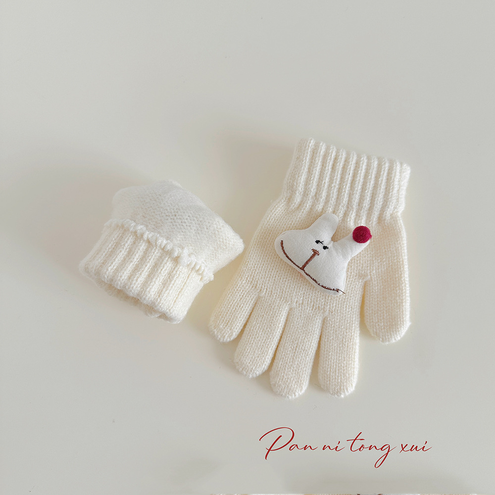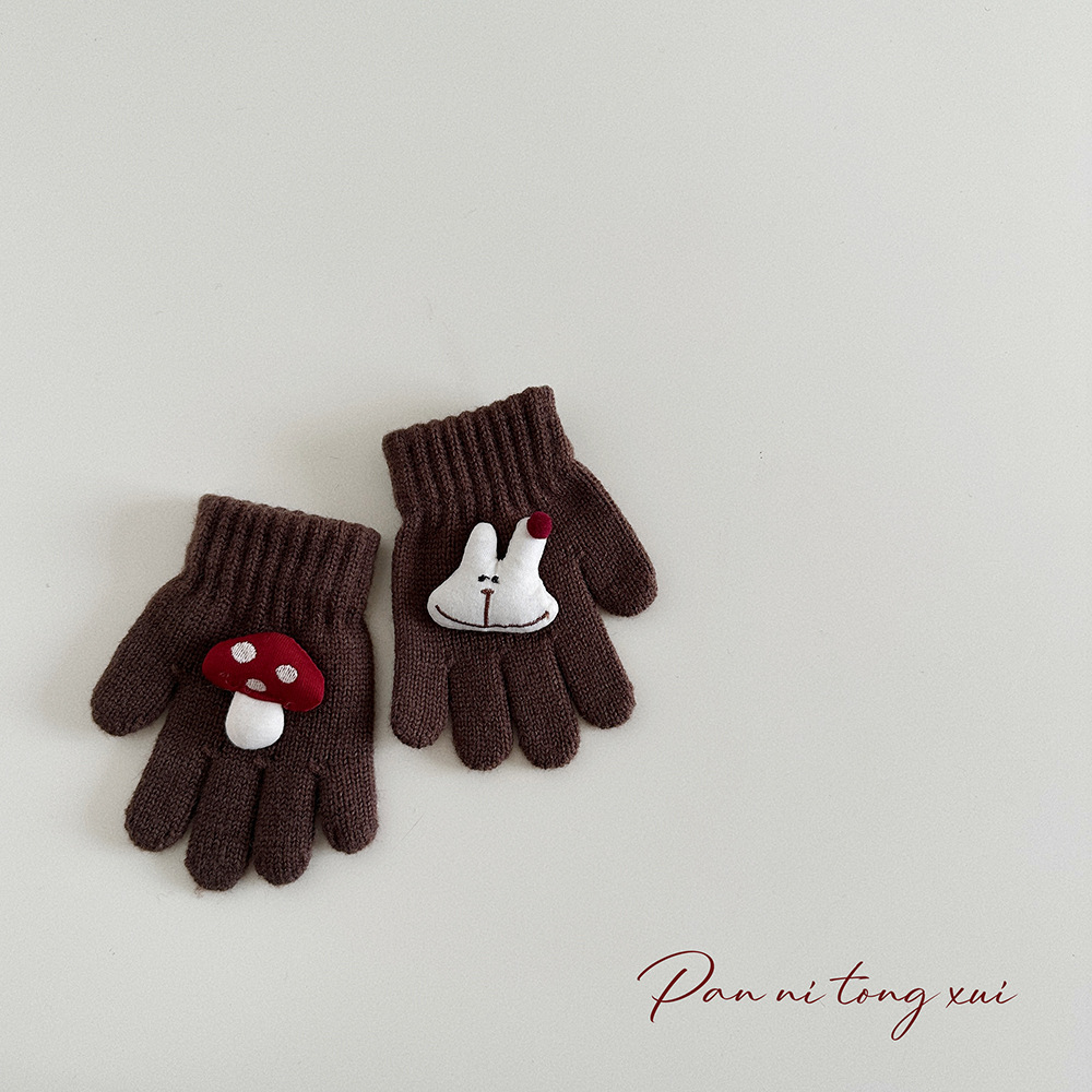 만화 다섯 손가락 겨울 어린이 장갑 따뜻한 겨울 장갑 양모 니트 귀여운 어린이 아기 손가락 장갑