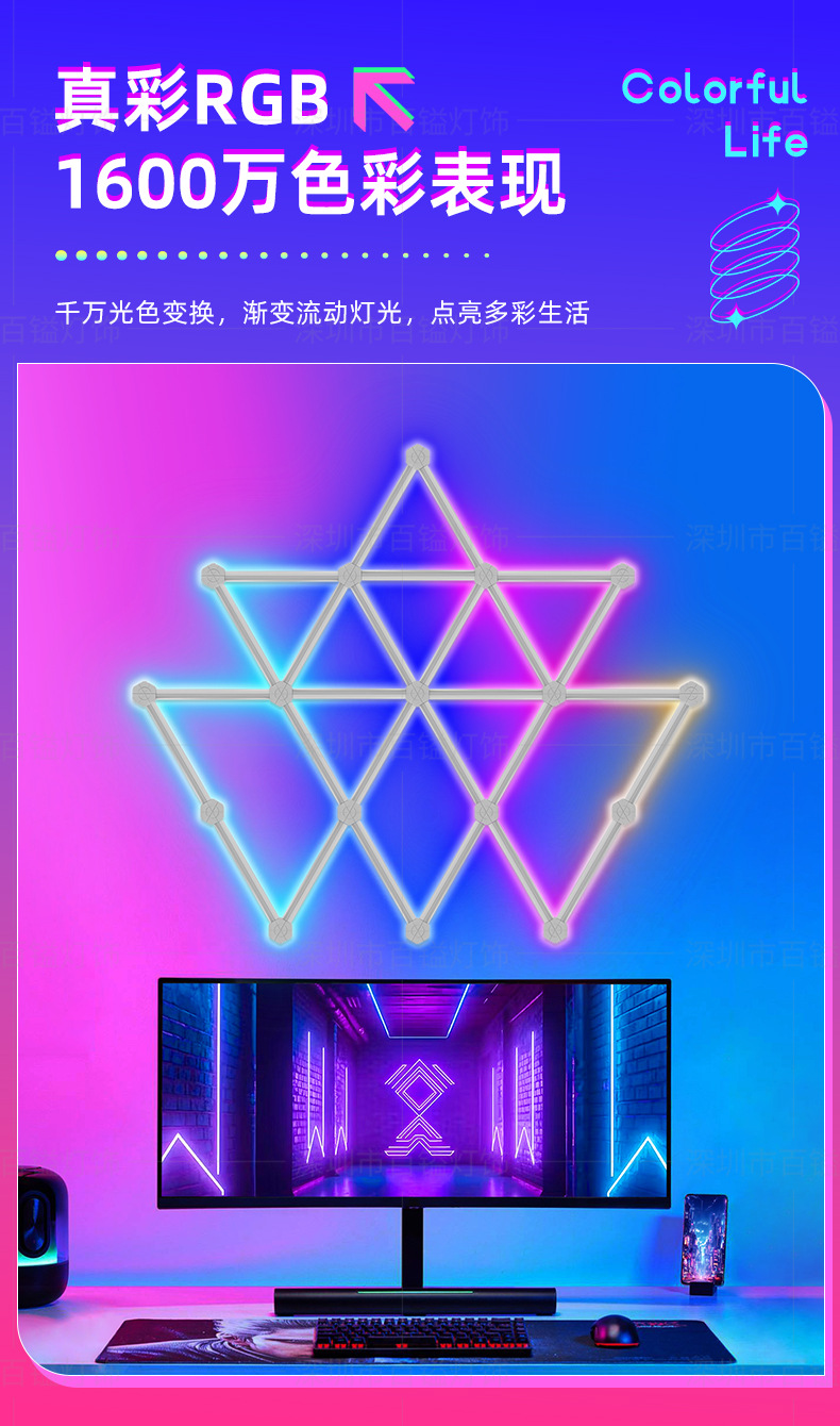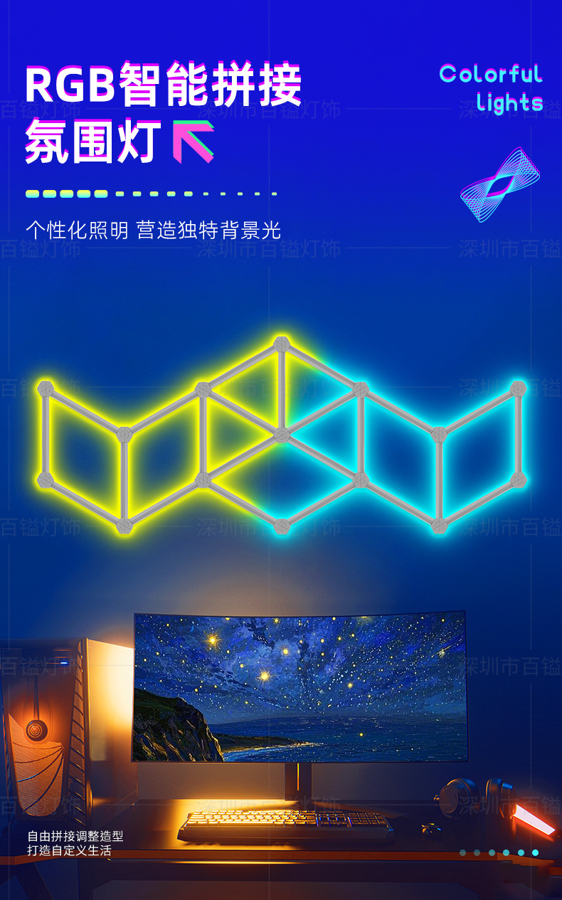 국경 간 DIY 접합 램프 전자 스포츠 게임 홈 라이브 치킨 분위기 램프 침실 RGB 별자리 스마트 벽 램프