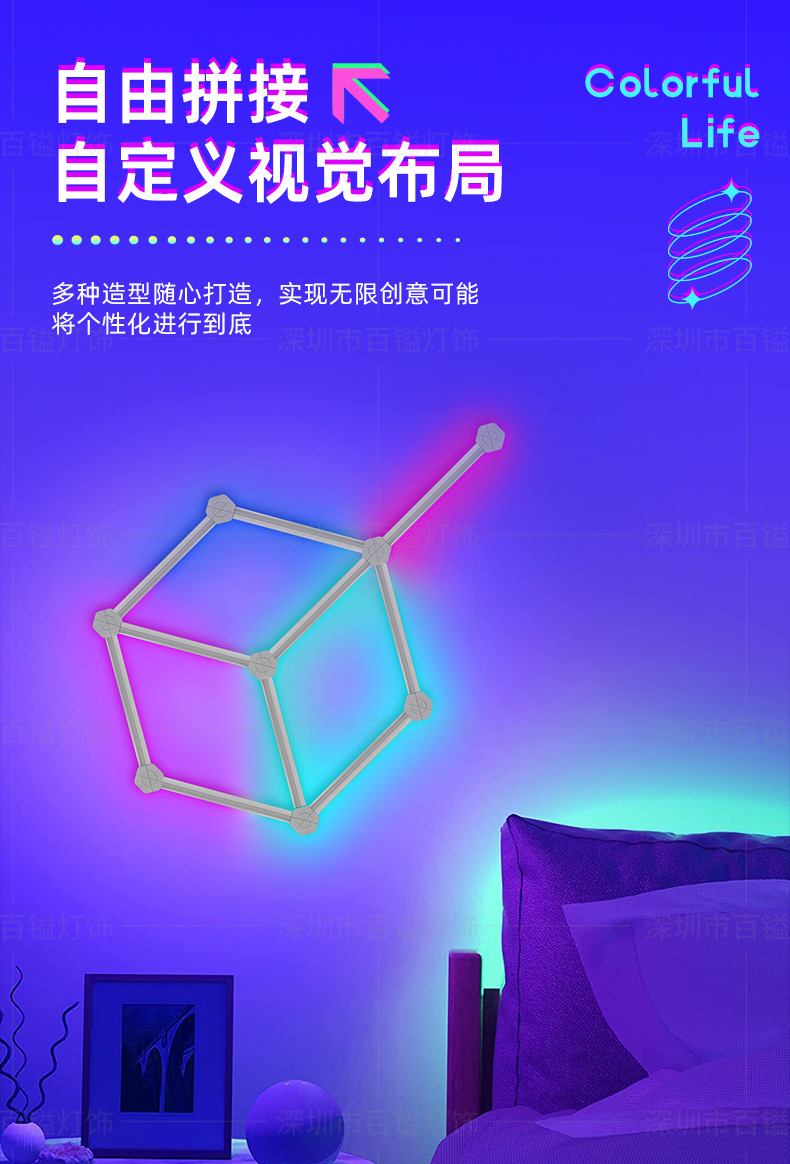국경 간 DIY 접합 램프 전자 스포츠 게임 홈 라이브 치킨 분위기 램프 침실 RGB 별자리 스마트 벽 램프스토어 가기