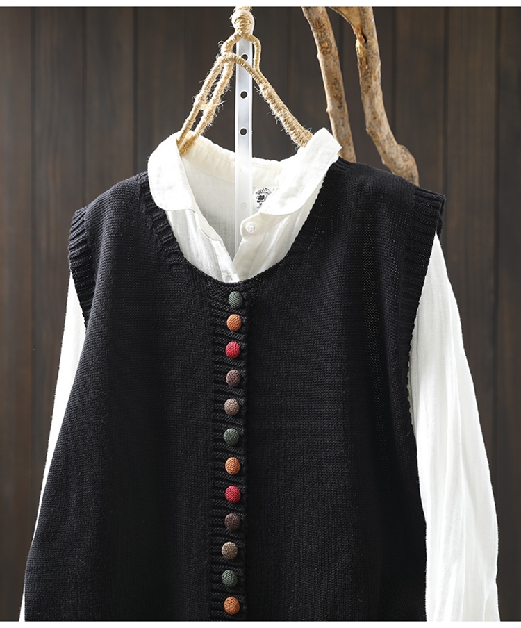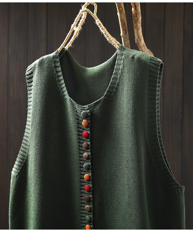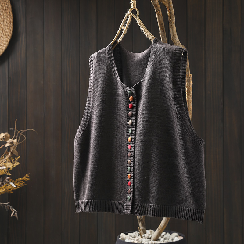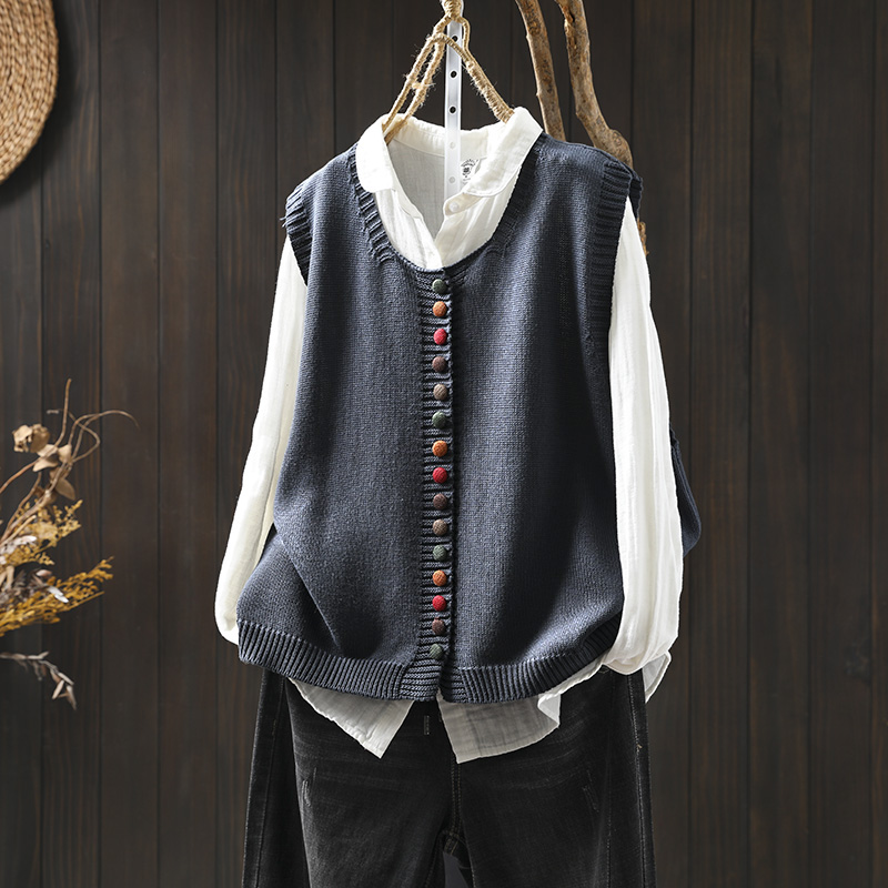 화려한 버튼 코튼 니트 조끼 여성의 느슨한 슬리밍 가을 예술적 캐주얼 스택 민소매 조끼
