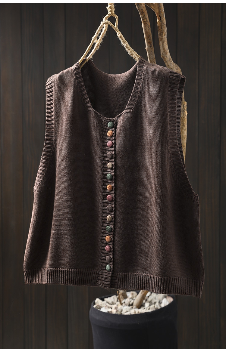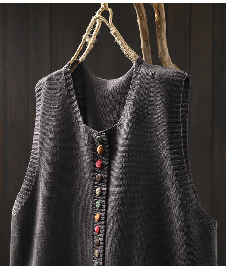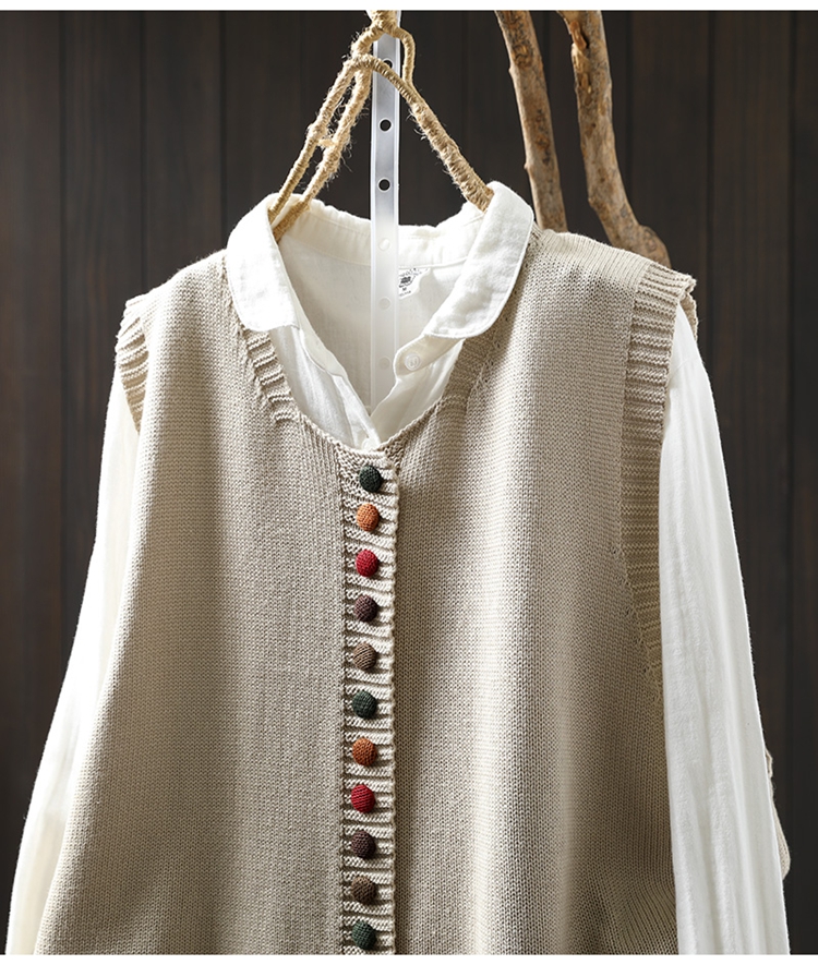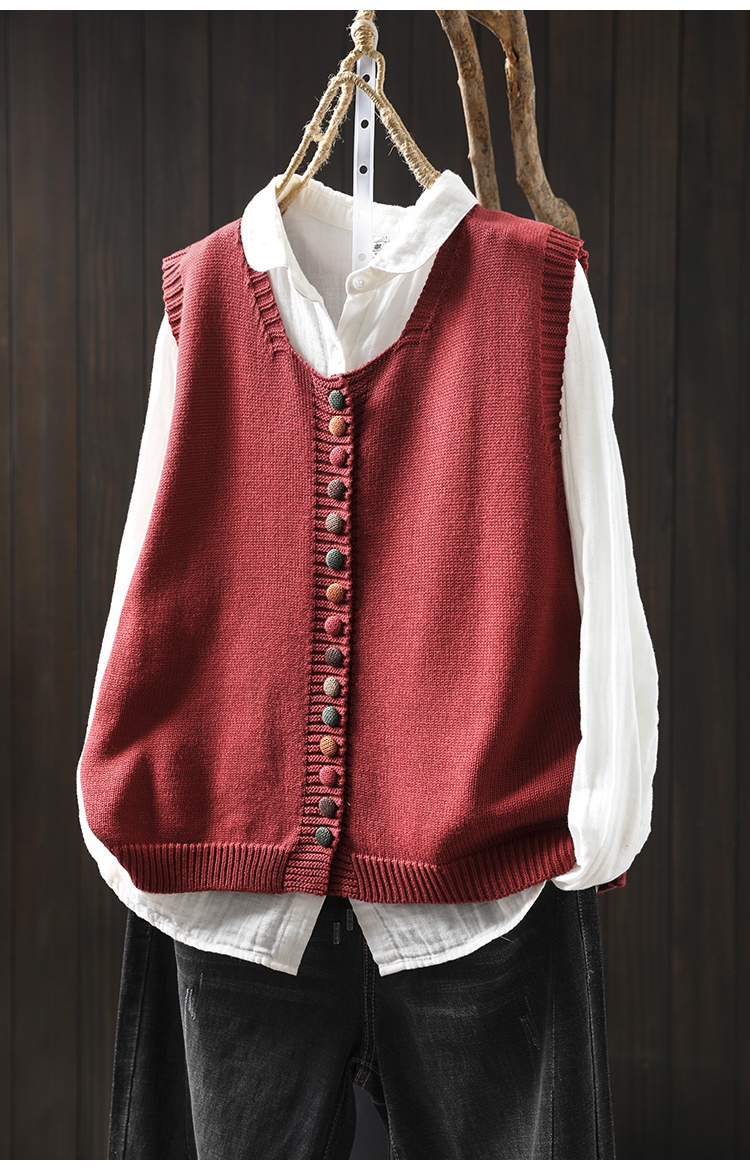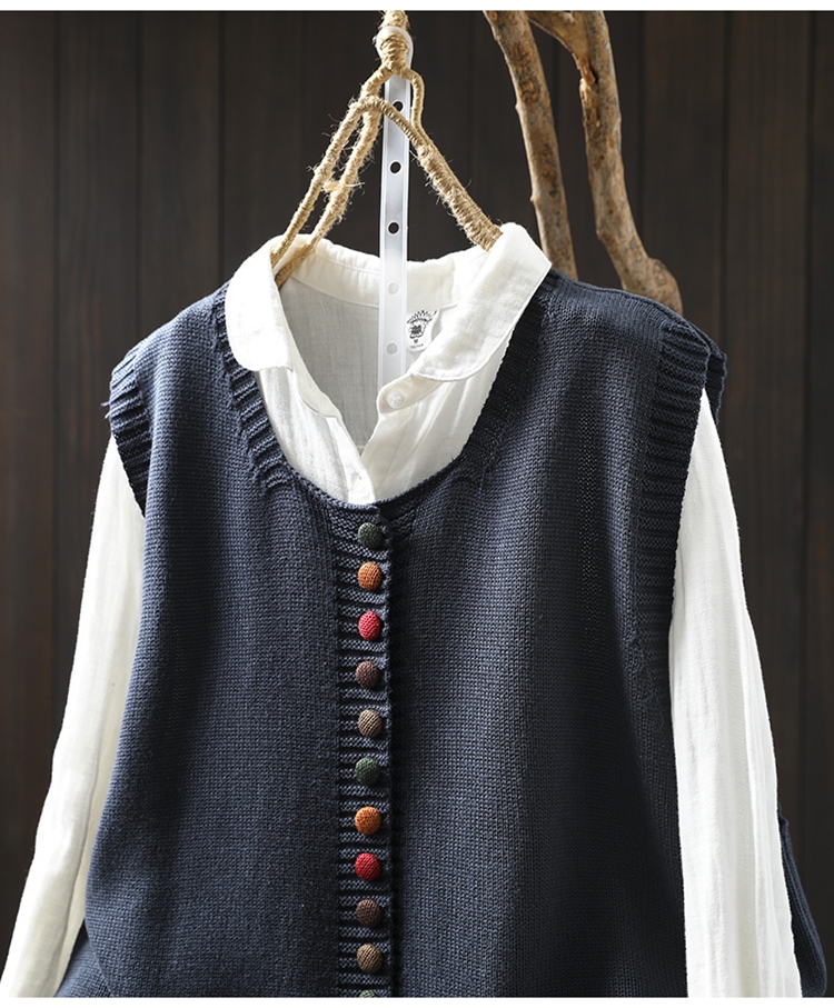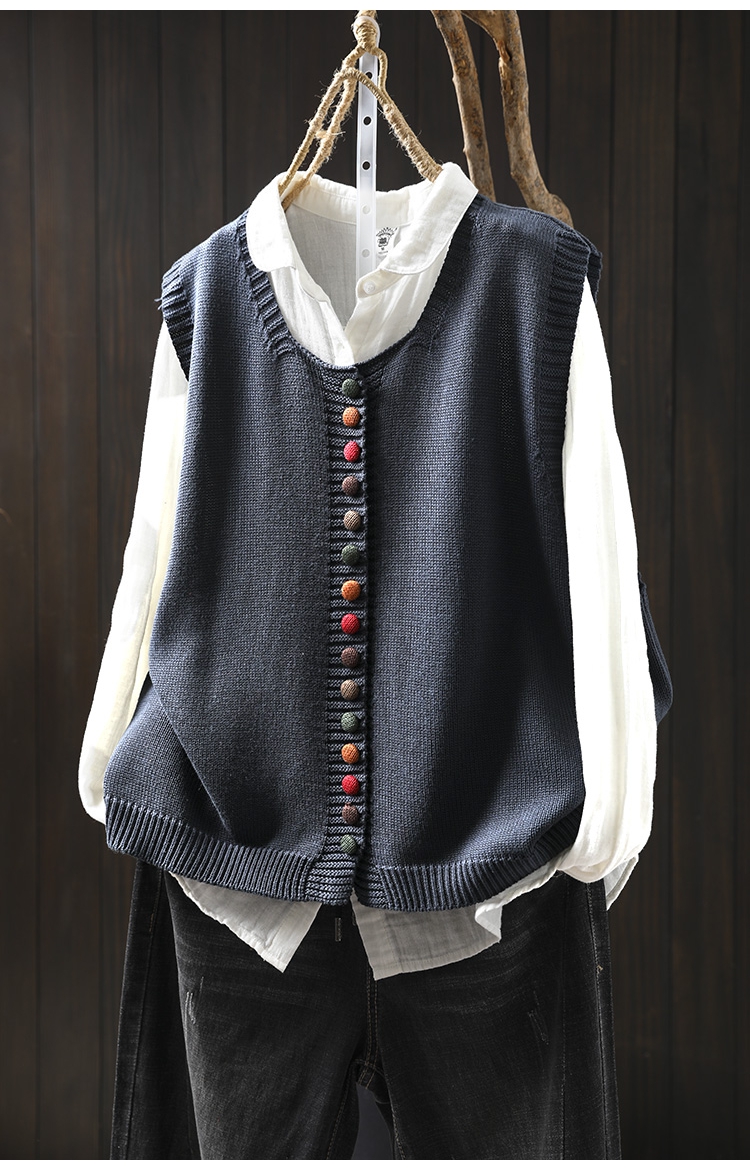 화려한 버튼 코튼 니트 조끼 여성의 느슨한 슬리밍 가을 예술적 캐주얼 스택 민소매 조끼스토어 가기