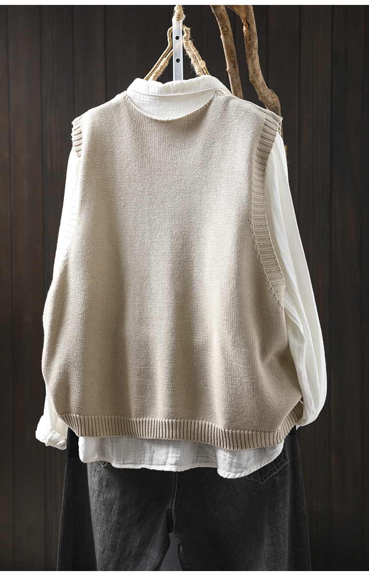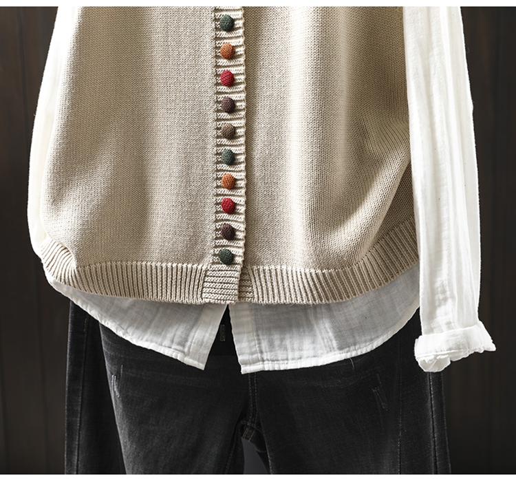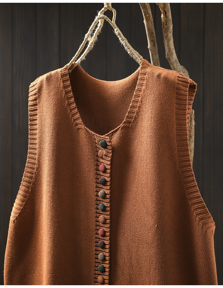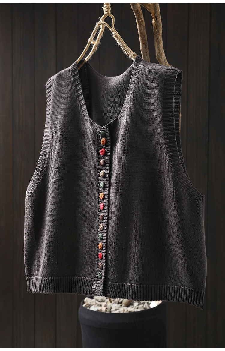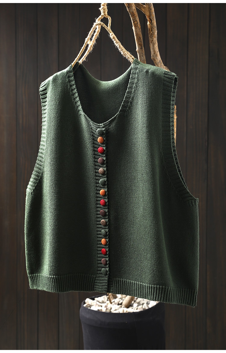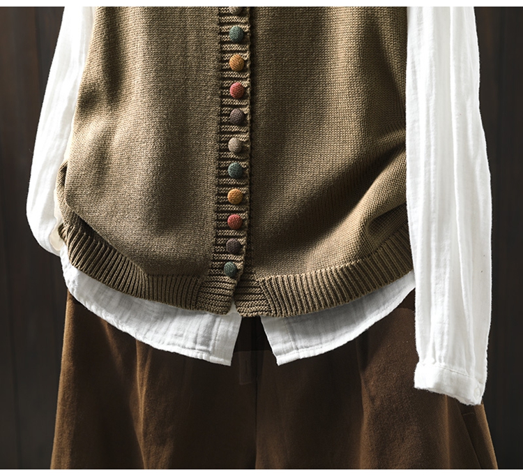 화려한 버튼 코튼 니트 조끼 여성의 느슨한 슬리밍 가을 예술적 캐주얼 스택 민소매 조끼스토어 가기