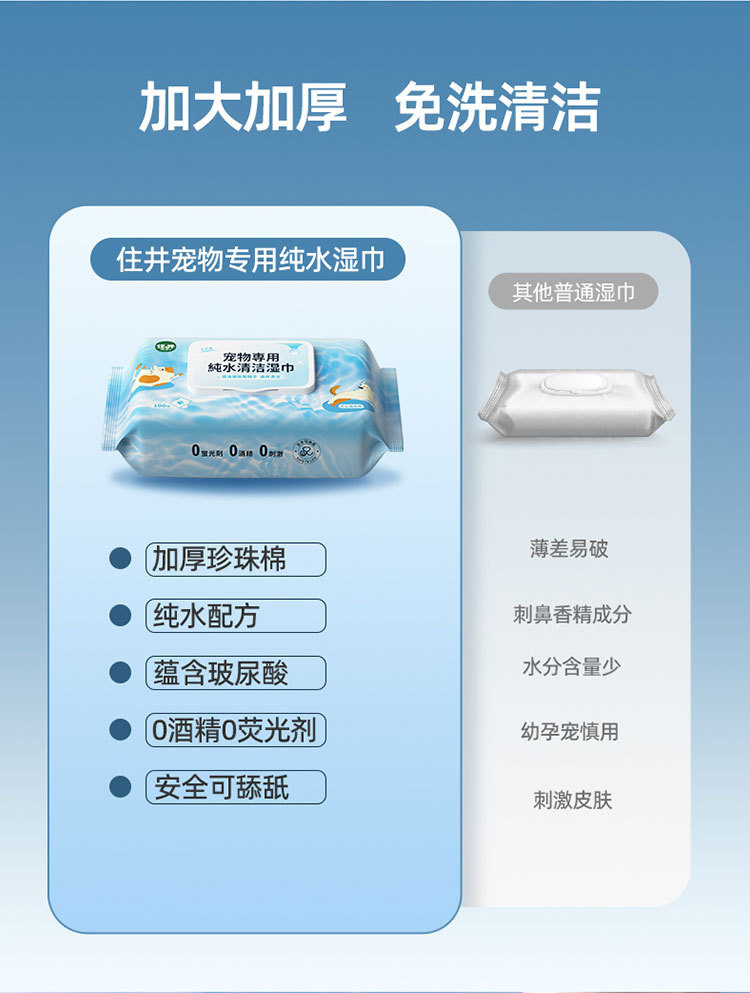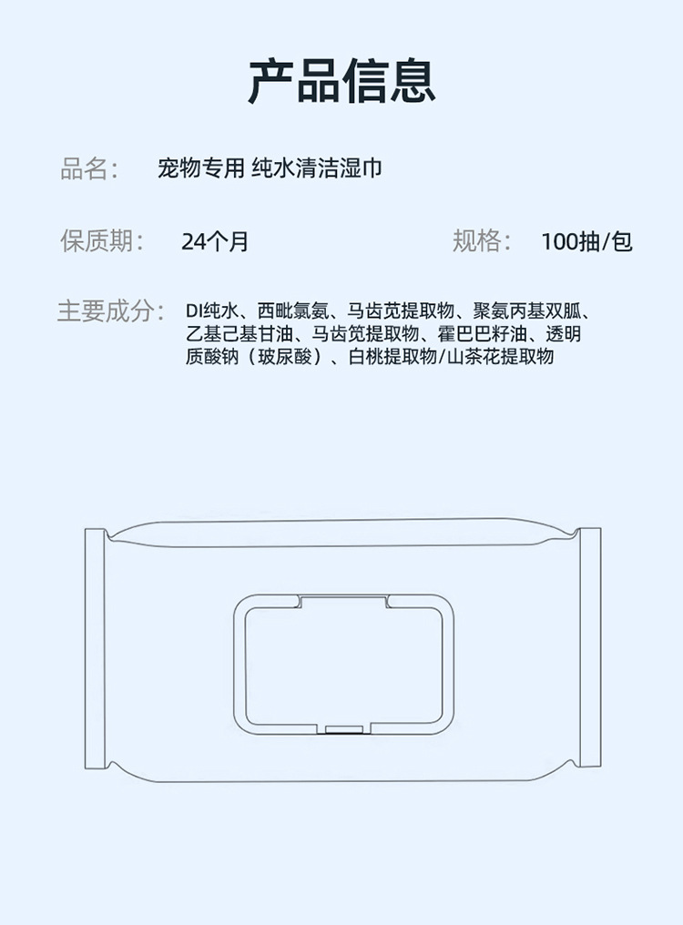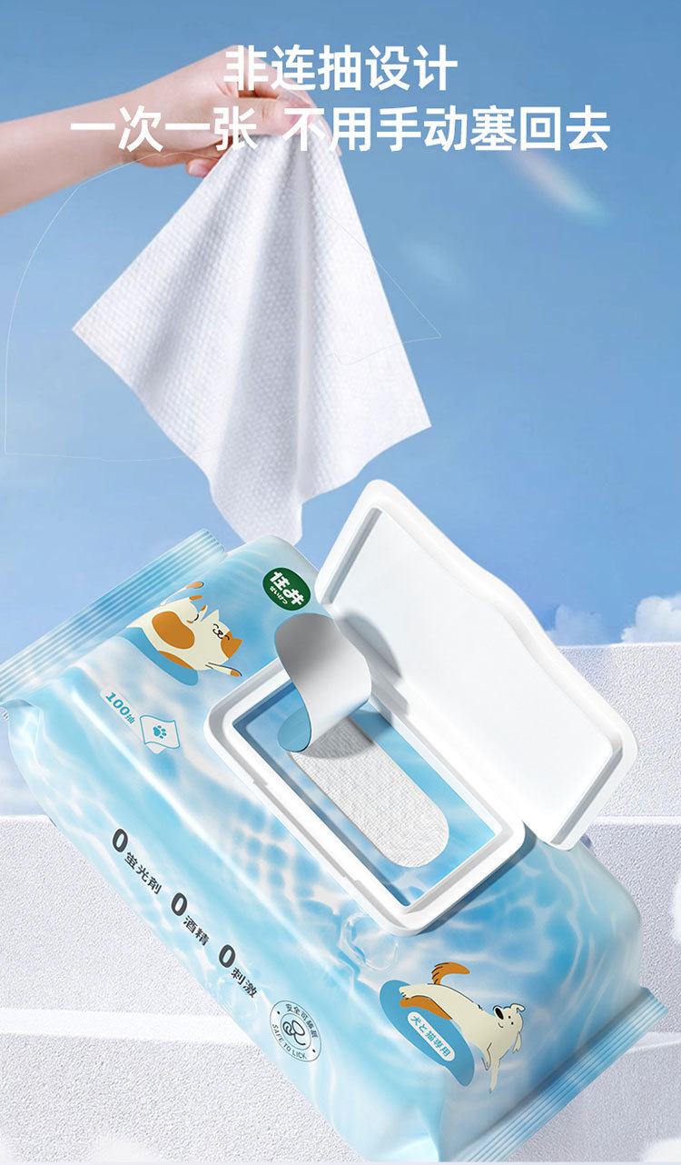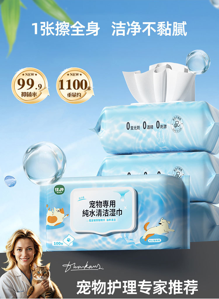 잘 사는 애완 동물 특별한 순수한 물 청소 물티슈 100 대량 가정 애완 동물 개 청소 용품 도매스토어 가기