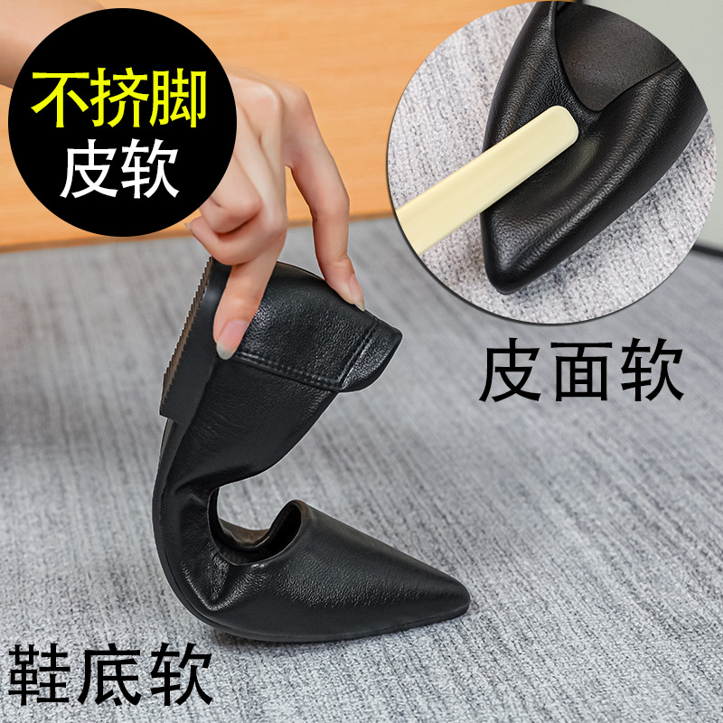 전문 툴링 부드러운 밑창 작업 신발 여성 검은 봄과 가을 부드러운 가죽 뾰족한 신발 플랫 밑창 작업 인터뷰 가죽 신발스토어 가기