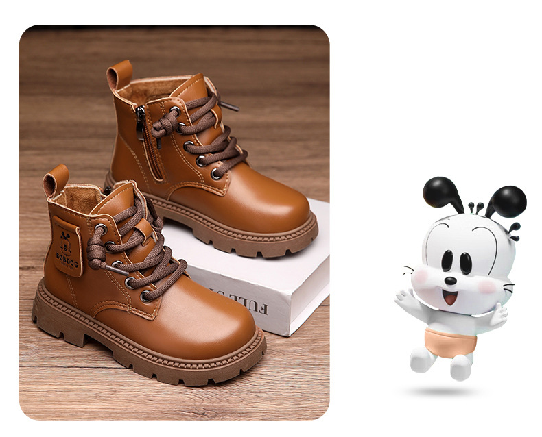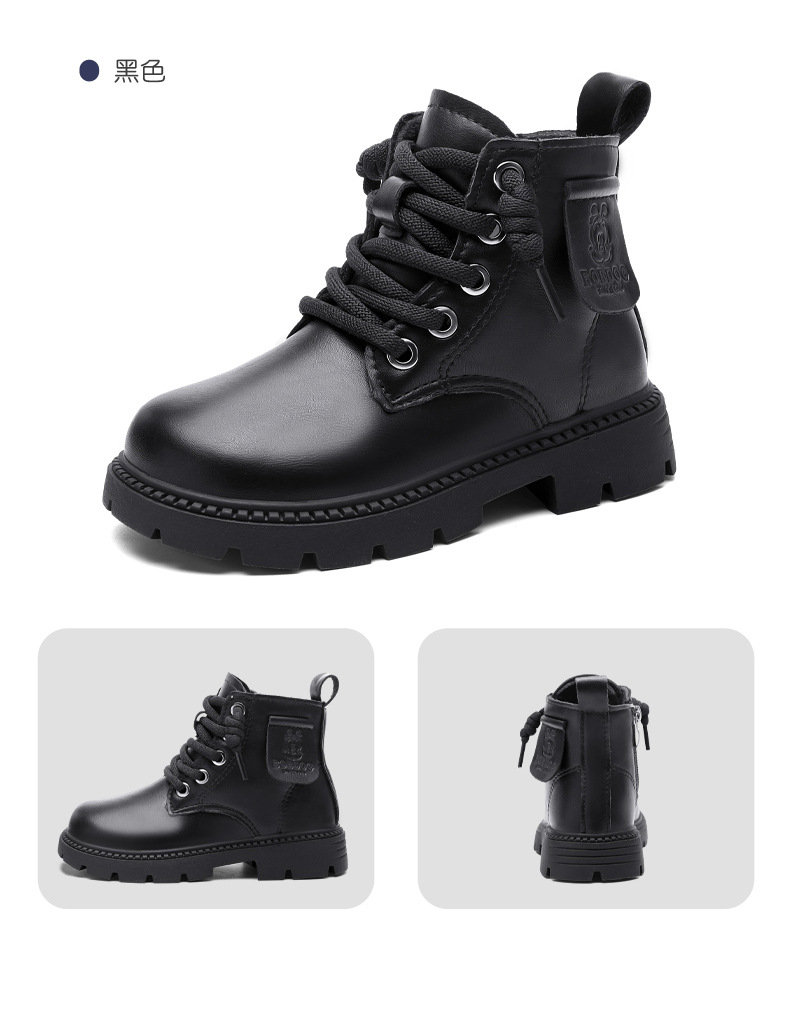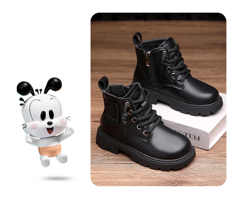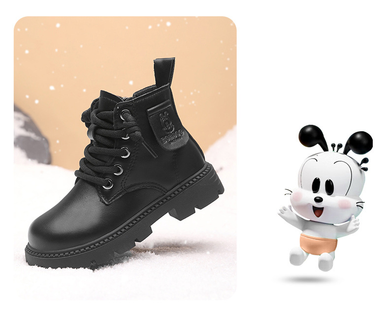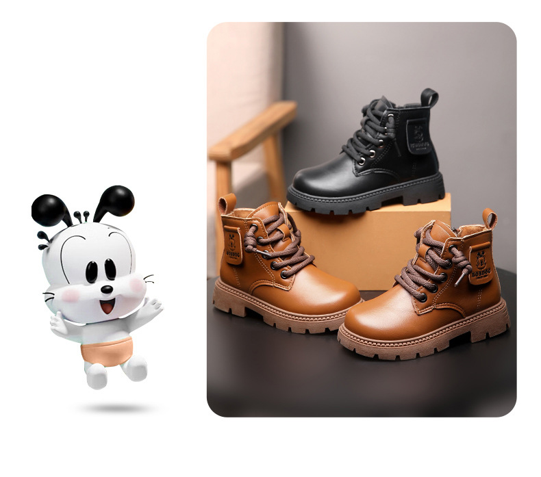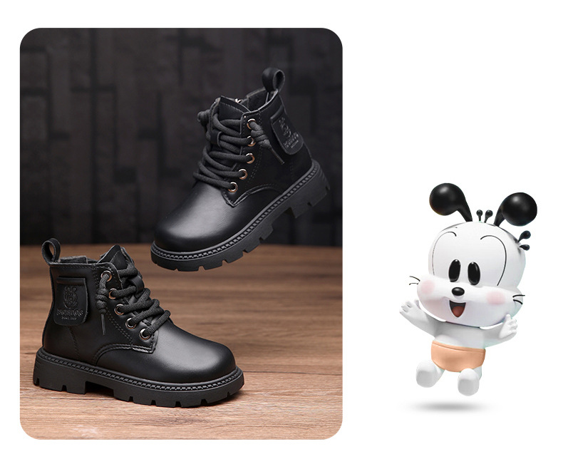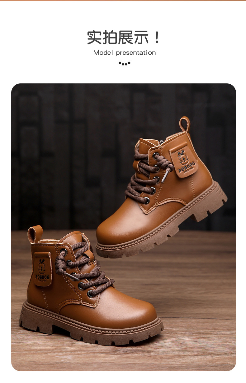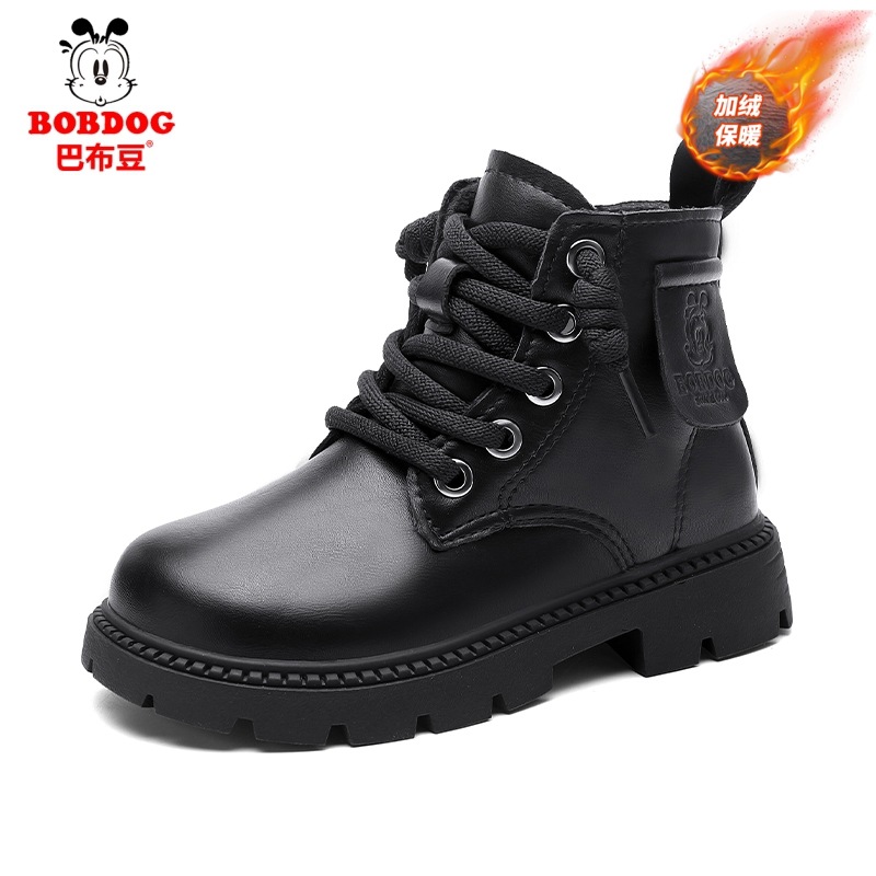 Babu Bean Girls Martin 부츠 가을 및 겨울 새로운 어린이 부츠 소년 검은 가을 및 겨울 짧은 부츠 어린이 부드러운 가죽 싱글 부츠