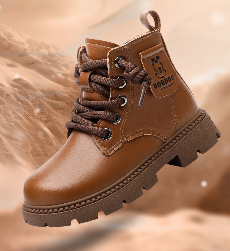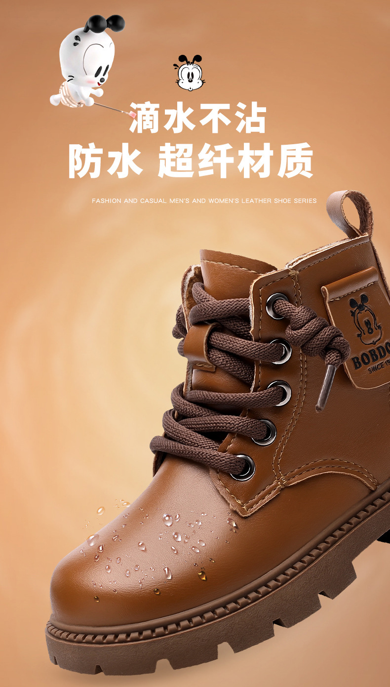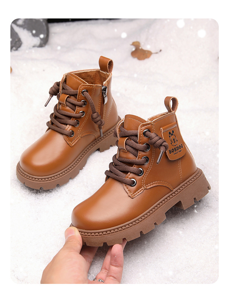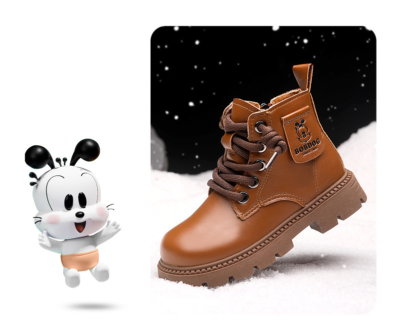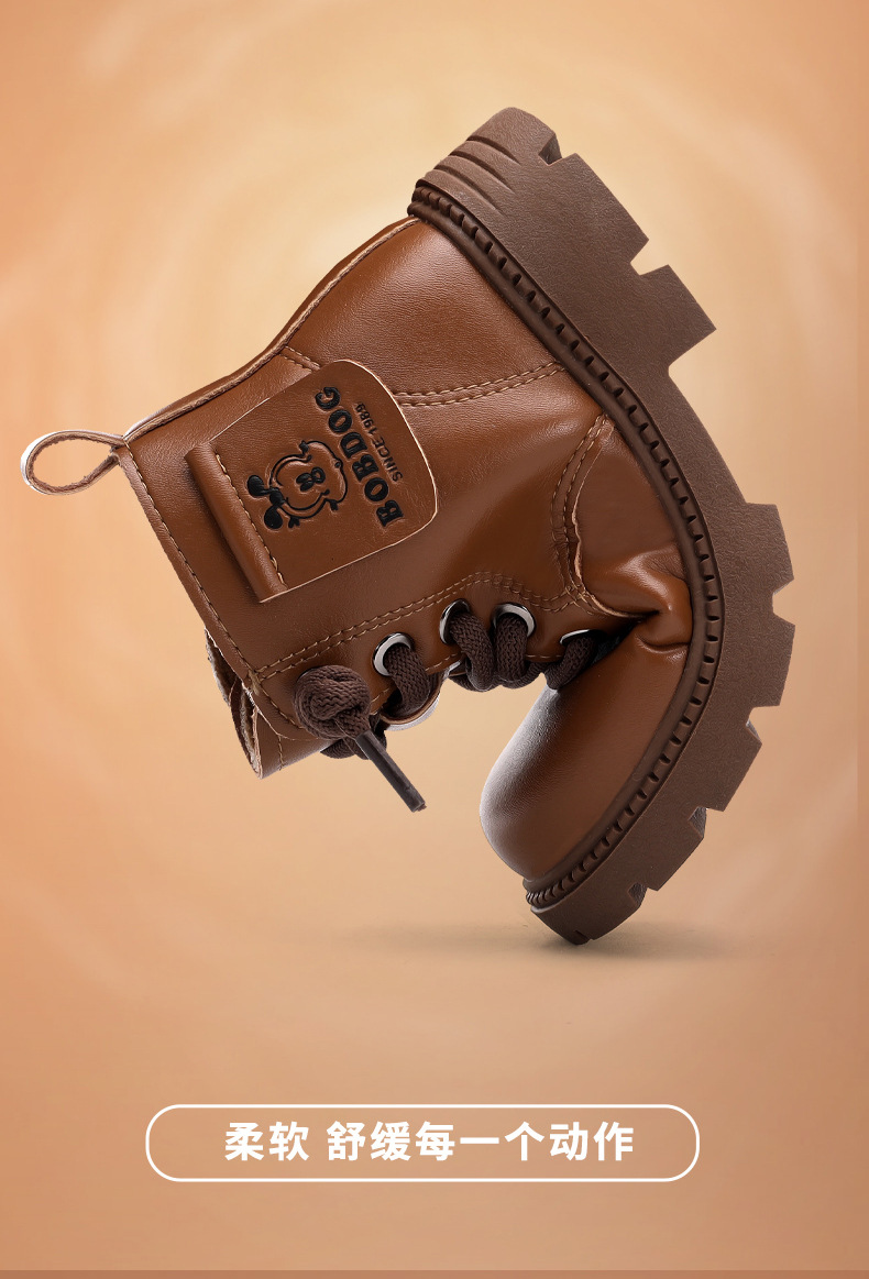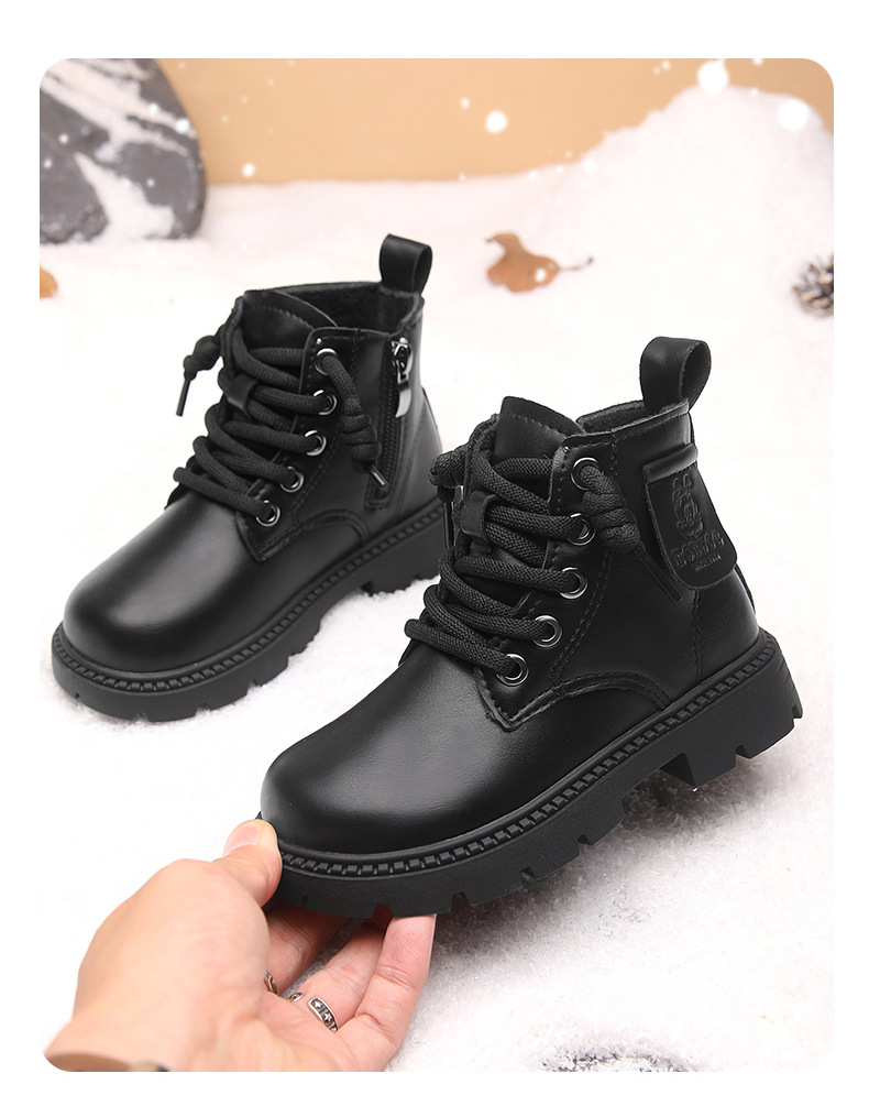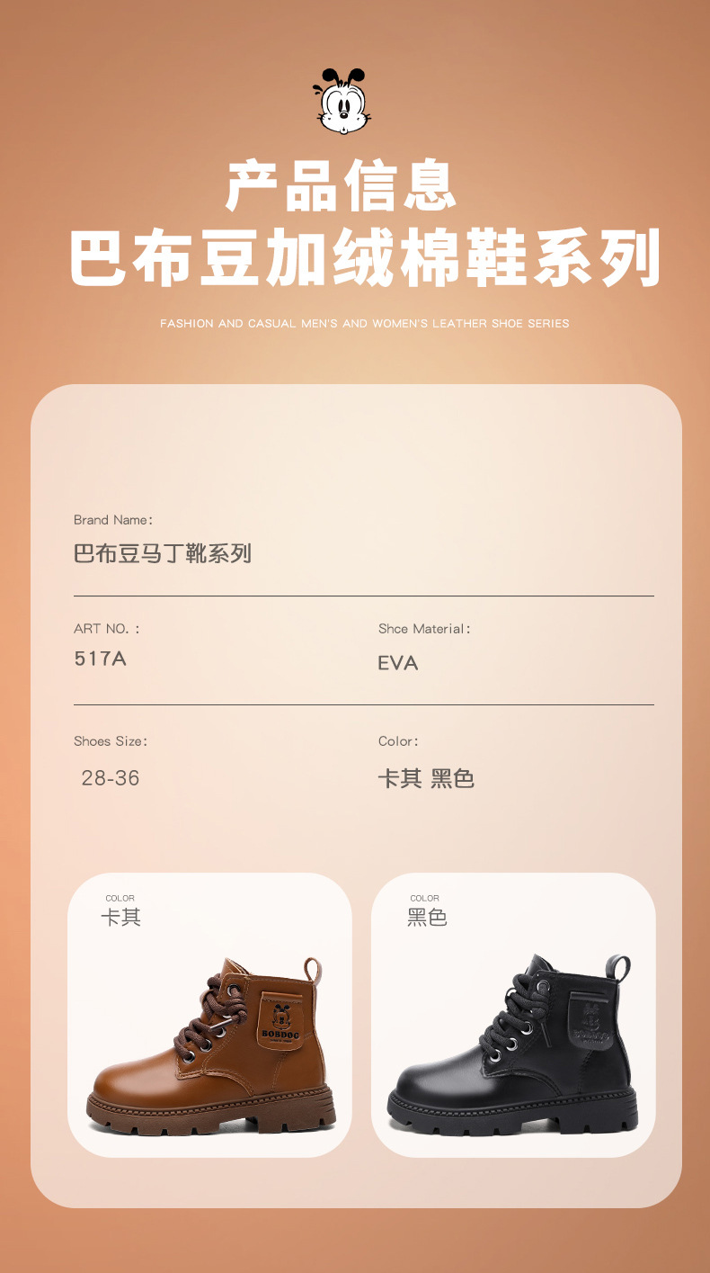 Babu Bean Girls Martin 부츠 가을 및 겨울 새로운 어린이 부츠 소년 검은 가을 및 겨울 짧은 부츠 어린이 부드러운 가죽 싱글 부츠