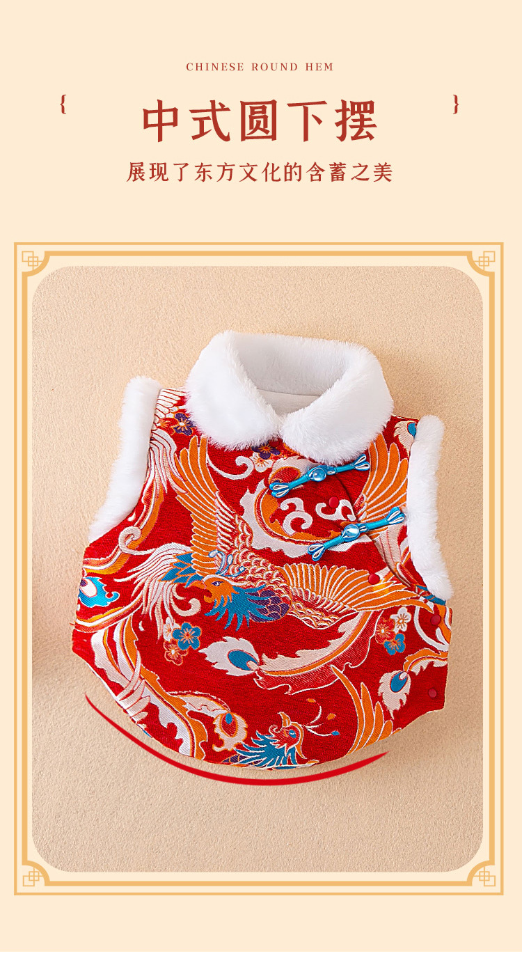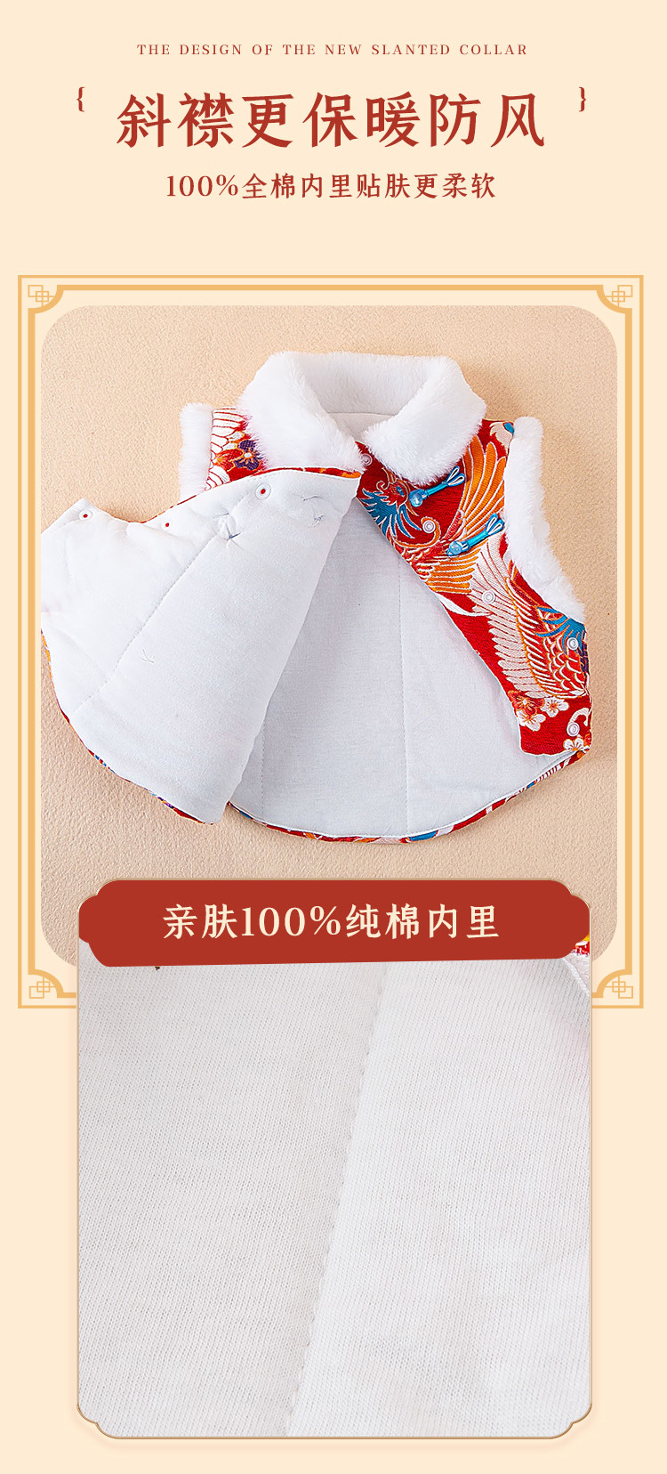 중국 스타일의 새로운 중국 스타일 조끼 어린이 두꺼운 따뜻한 기모 허리 코트 겨울 축제 민소매 신년 옷 면 조끼스토어 가기