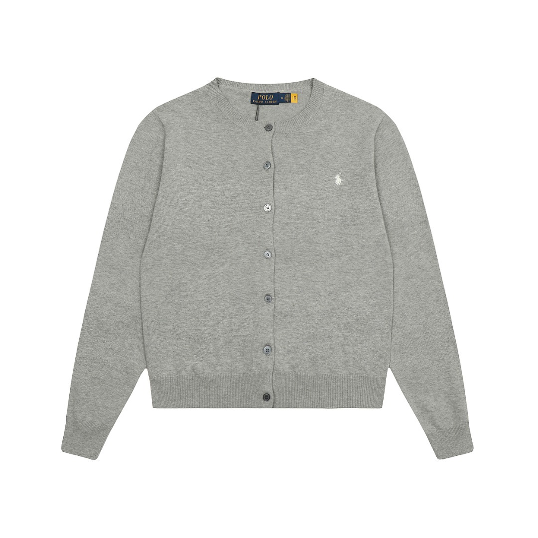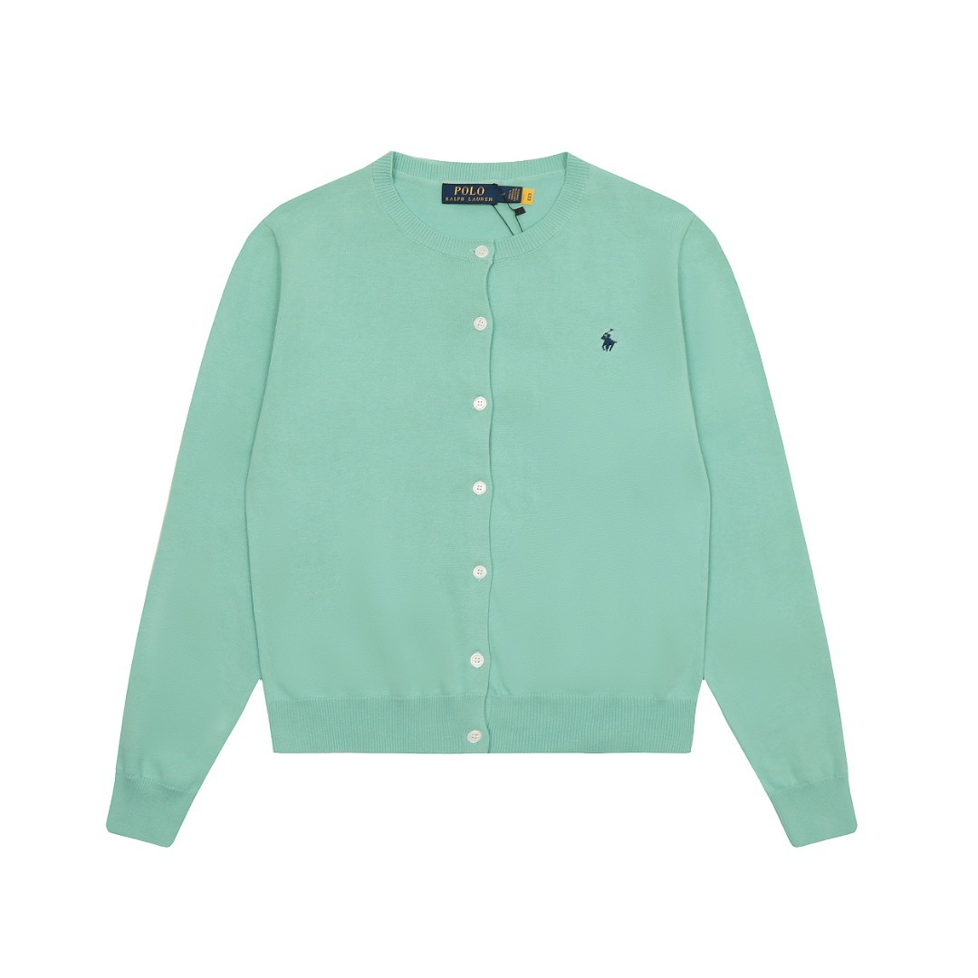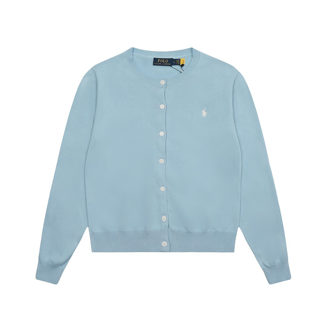 스윕 사이즈 RL 라프 단색 둥근 목 기본 조랑말 자수 로고 니트 카디건 긴 소매 남성과 여성의 헤어 세대