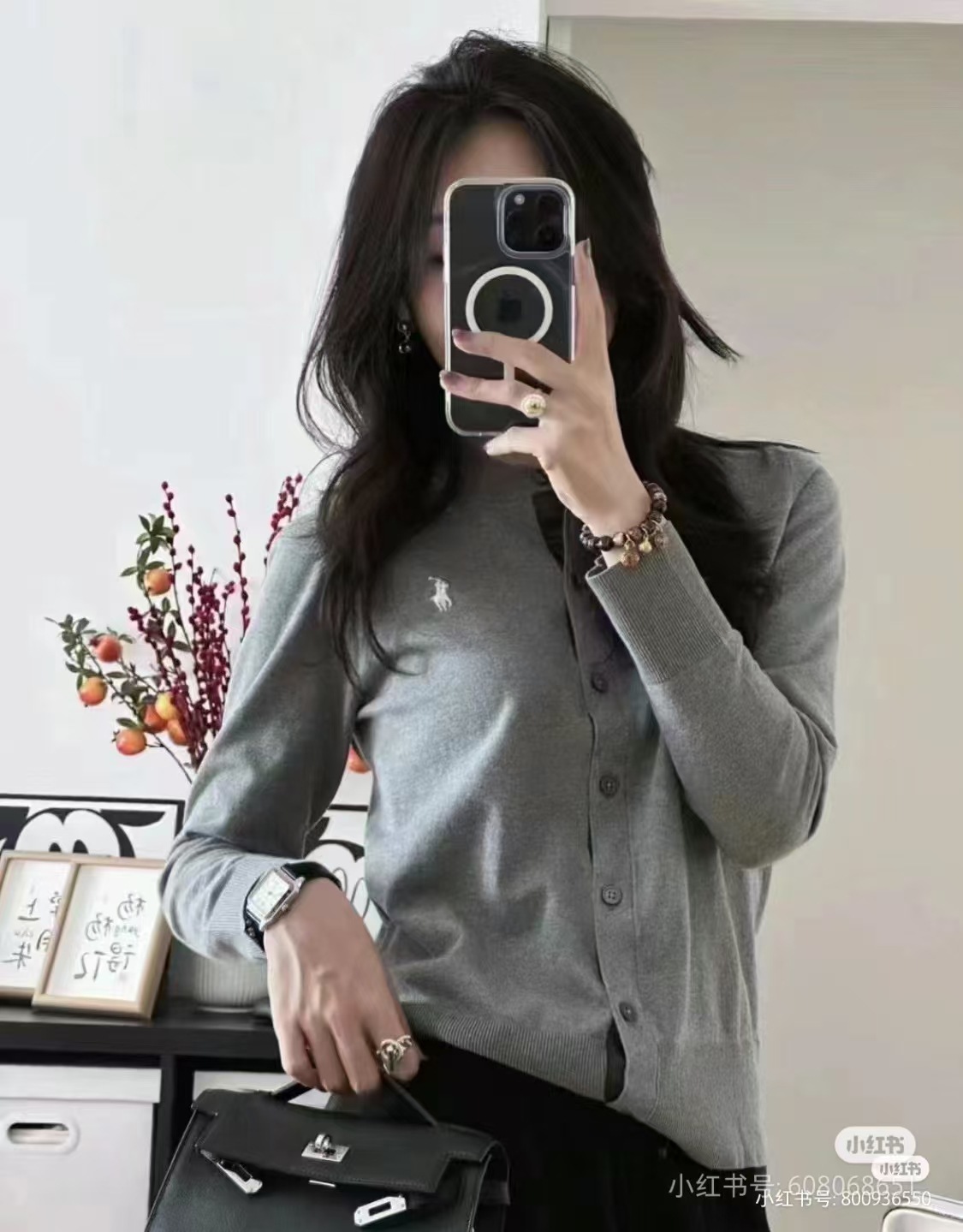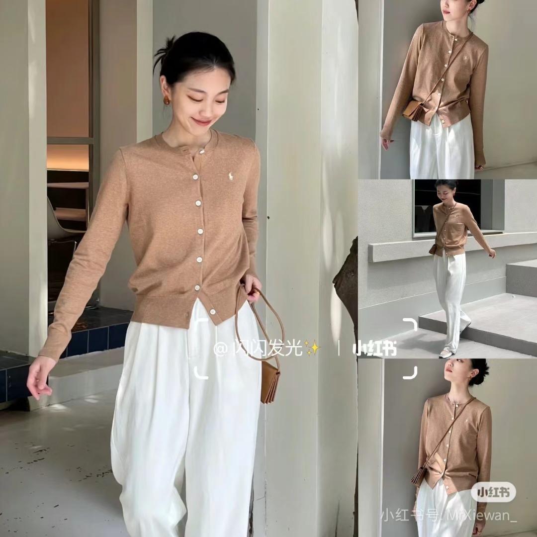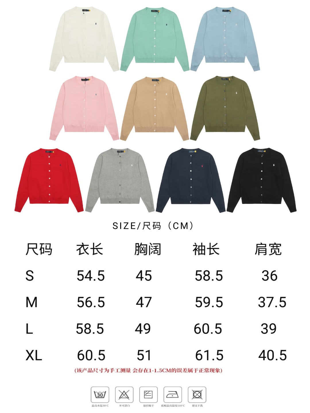 스윕 사이즈 RL 라프 단색 둥근 목 기본 조랑말 자수 로고 니트 카디건 긴 소매 남성과 여성의 헤어 세대