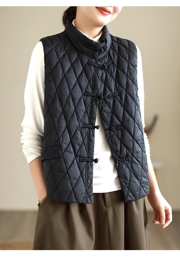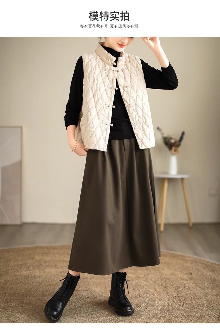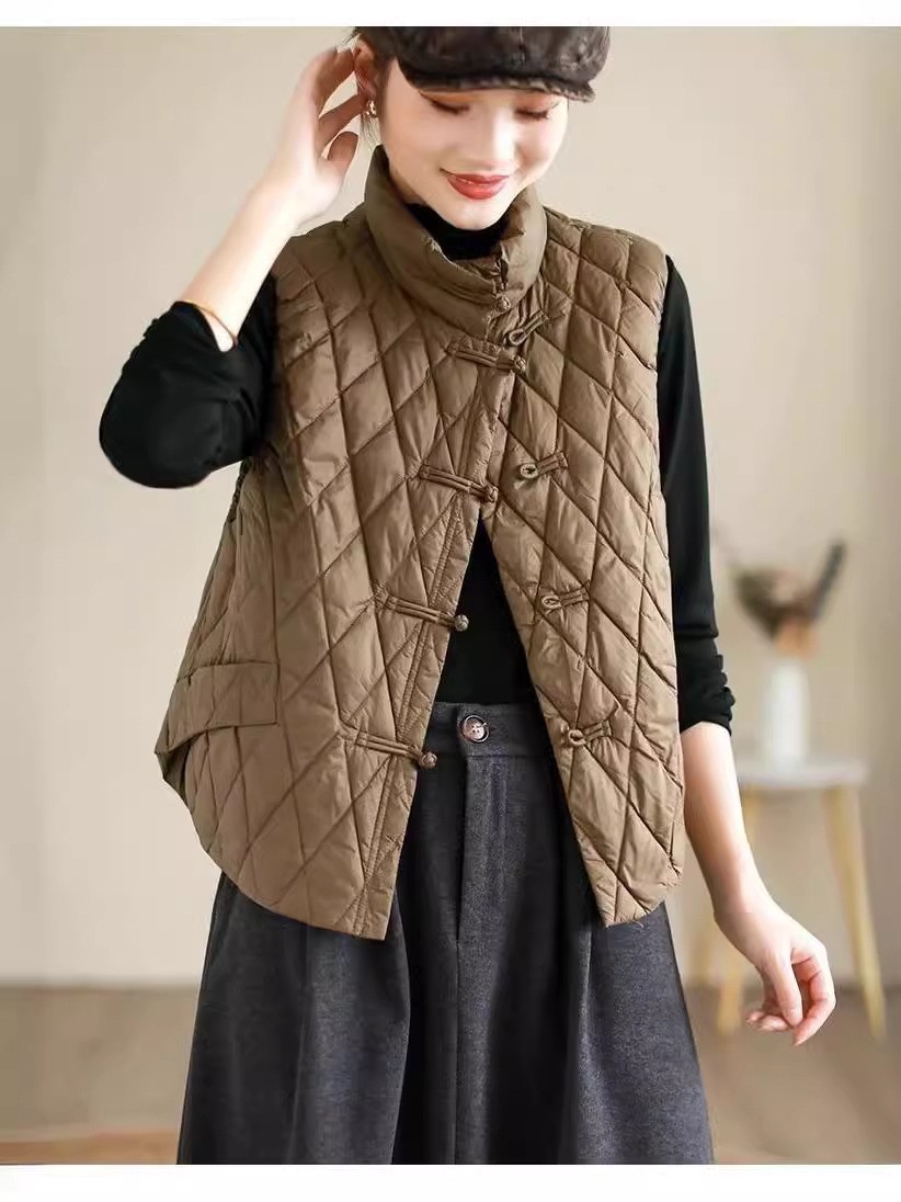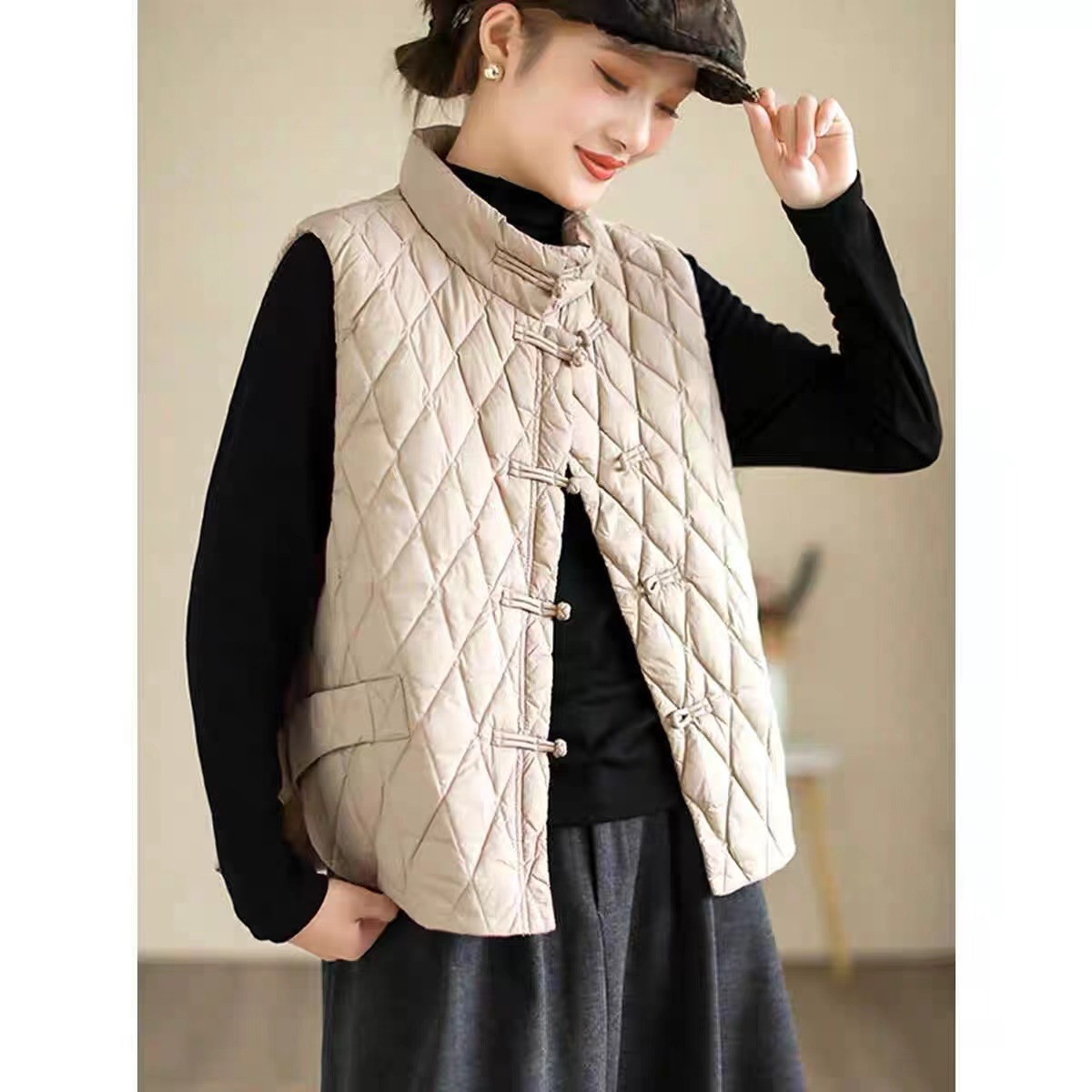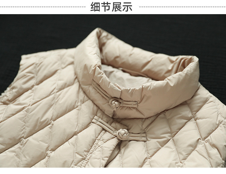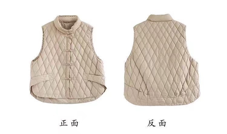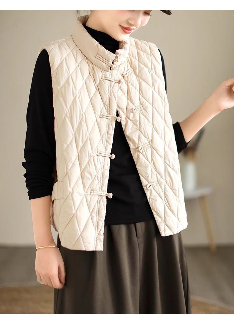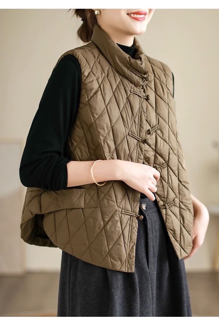 레트로 중국 스타일 다운 조끼 여성 마름모 버클 짧은 2024 겨울 새로운 흰색 오리 다운 조끼 유행 경량스토어 가기