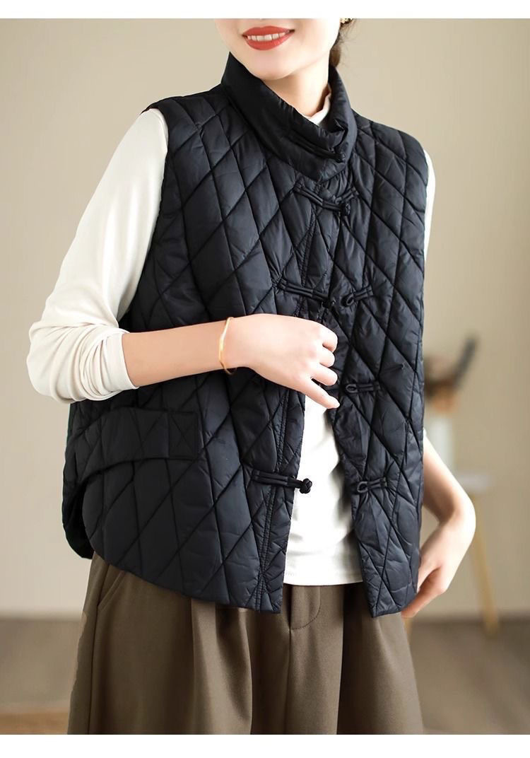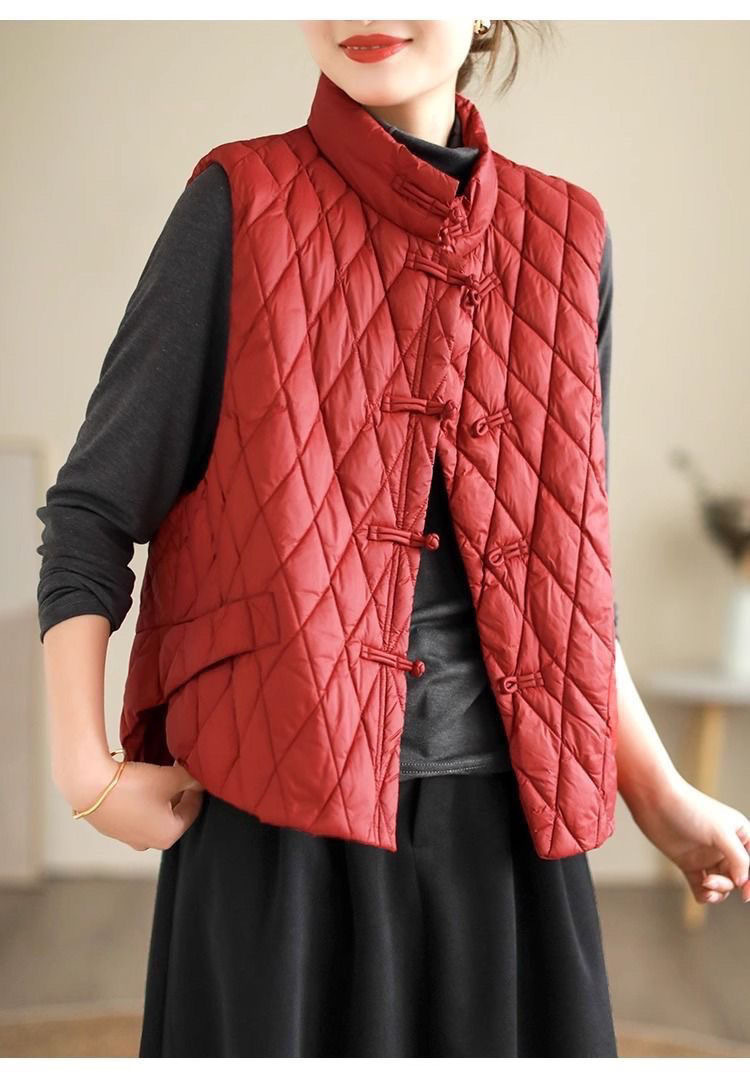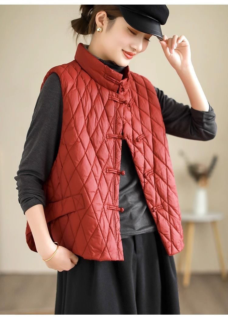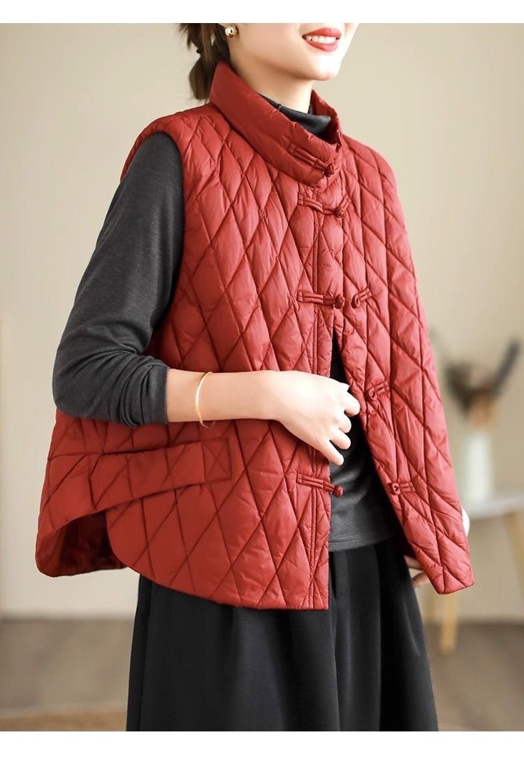 레트로 중국 스타일 다운 조끼 여성 마름모 버클 짧은 2024 겨울 새로운 흰색 오리 다운 조끼 유행 경량