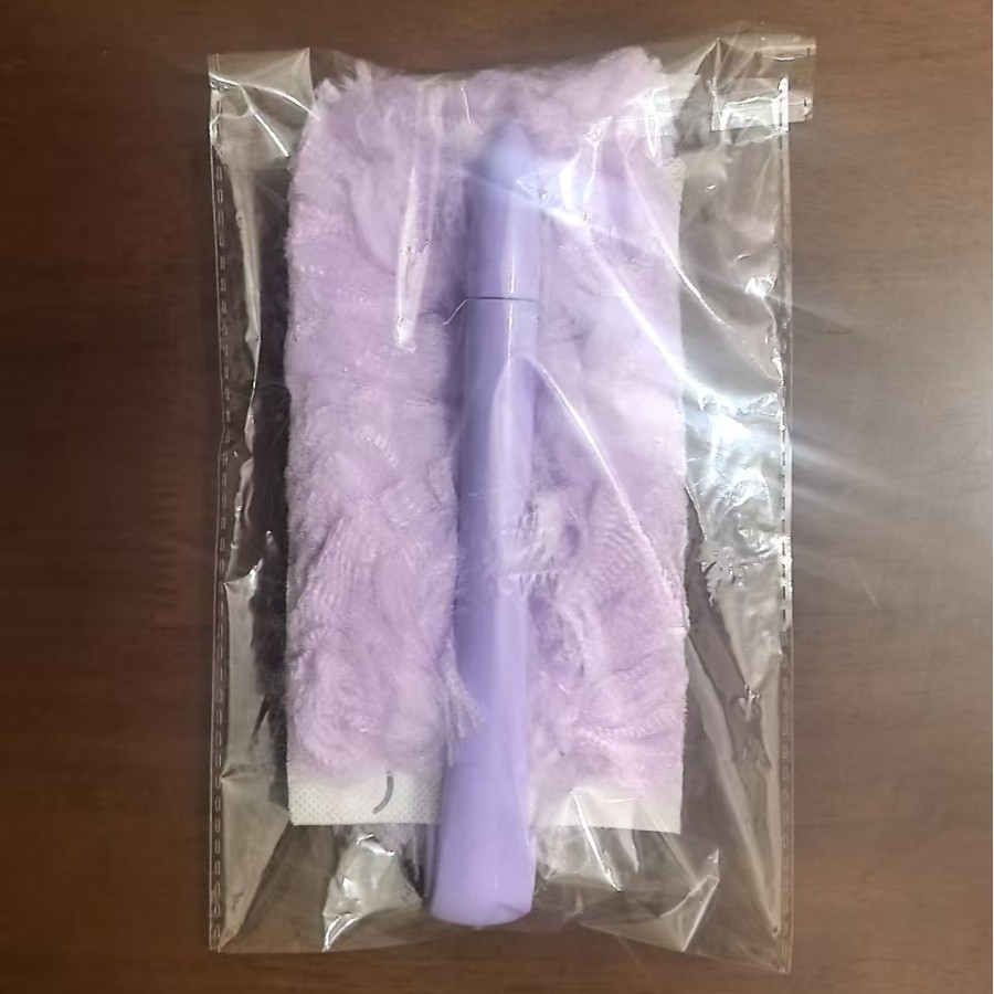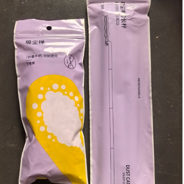 • 보라색 접이식 긴 막대, 막대 1개, 먼지떨이 1개 {다채로운 가방 1개}