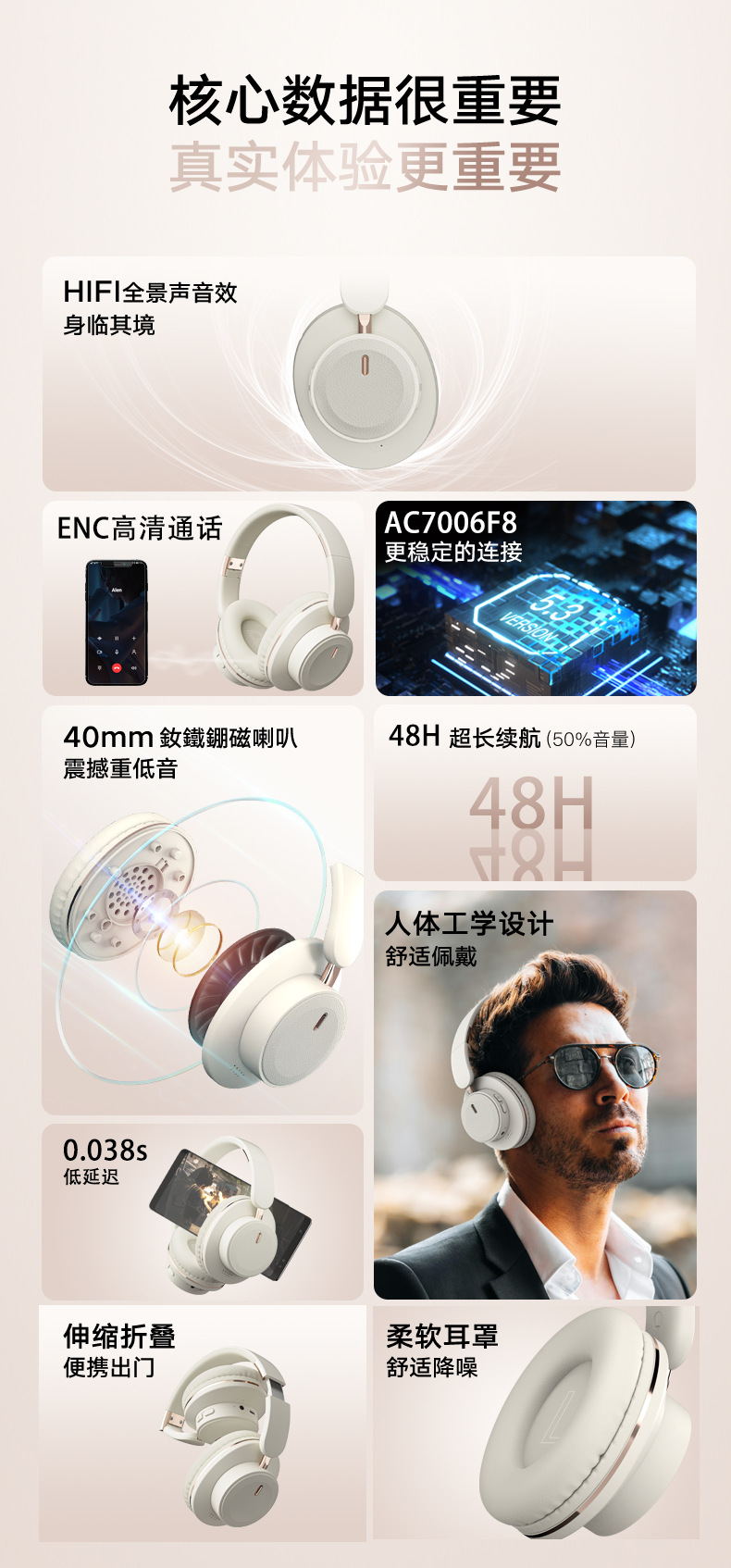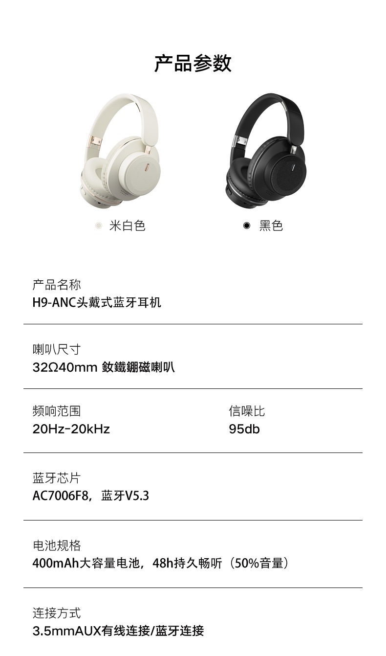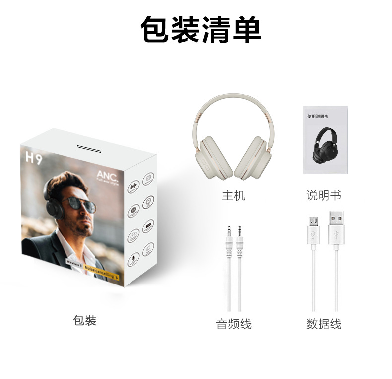 H9-ANC 능동 소음 제거 헤드셋 접이식 초장시간 배터리 게임용 무선 경쟁용 저지연