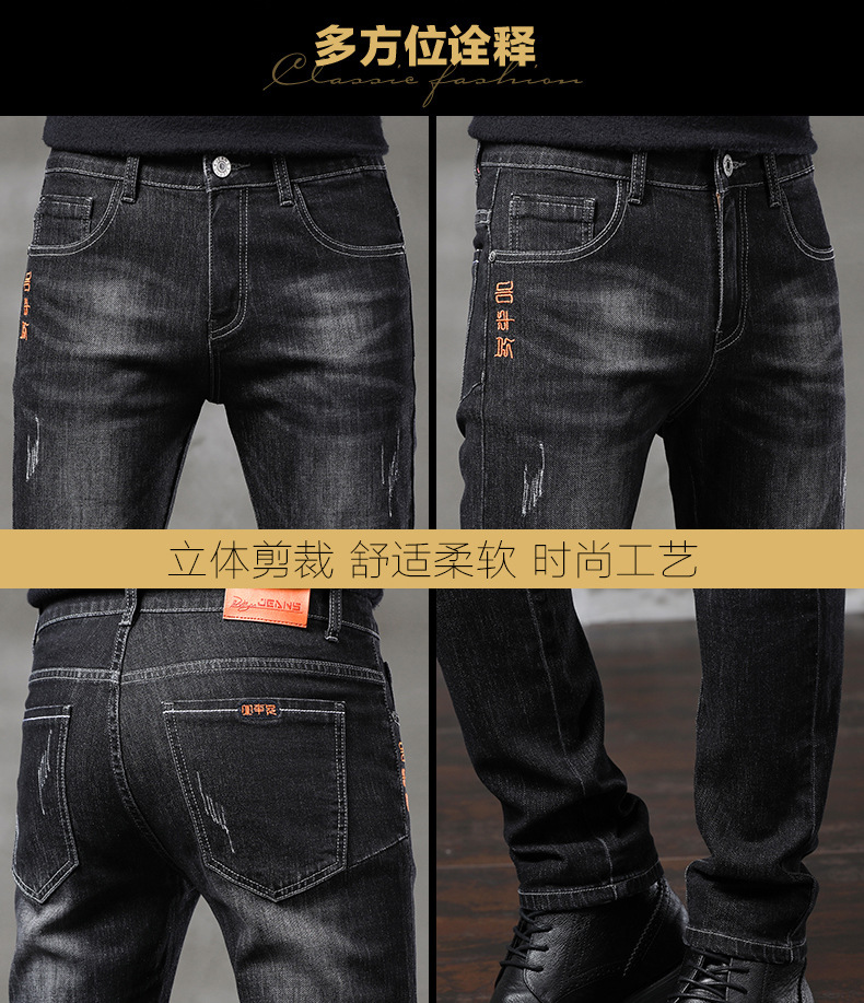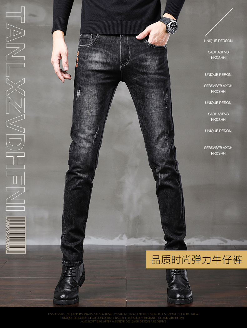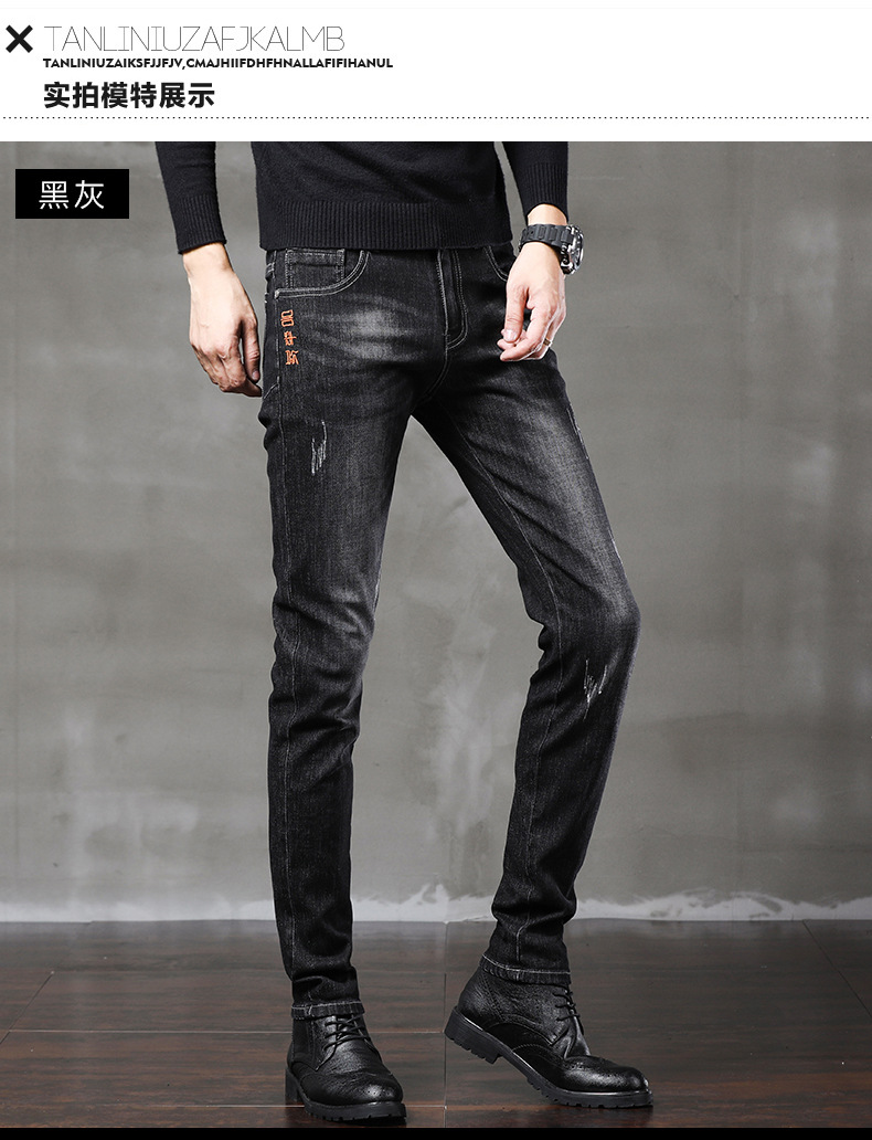 봄과 여름 스트레치 남성용 청바지 남성용 트렌디 스트레치 슬림핏 스키니 팬츠 한국 스타일 슬림 핏 긴 바지스토어 가기