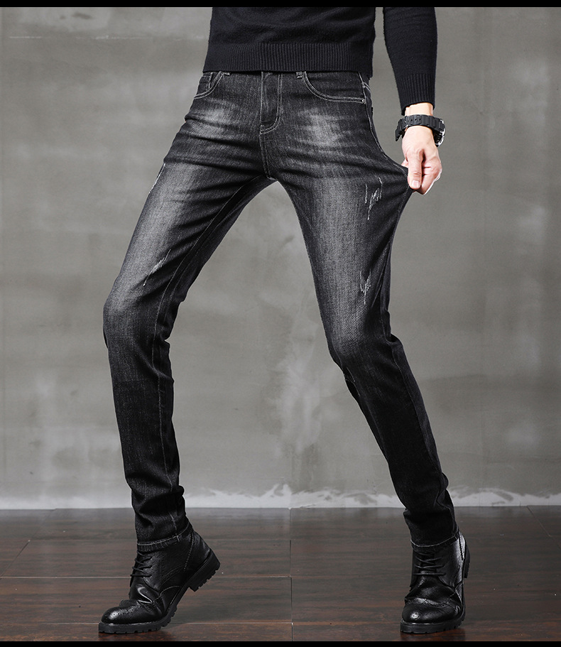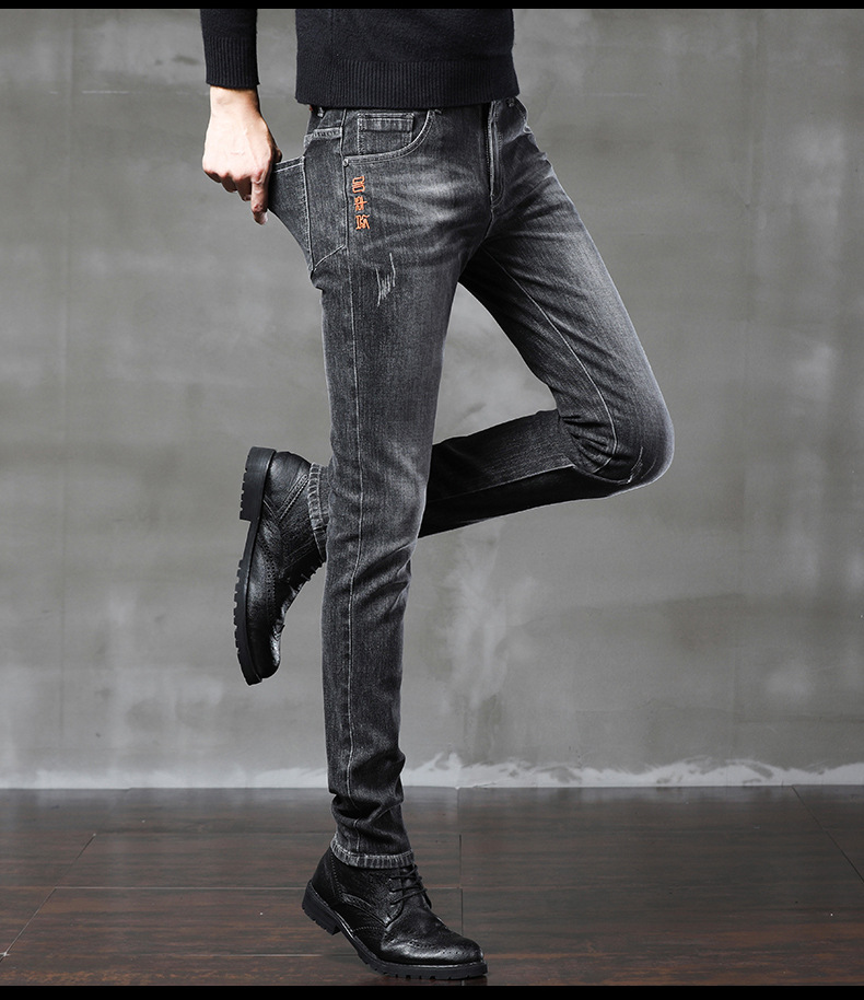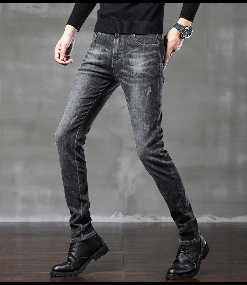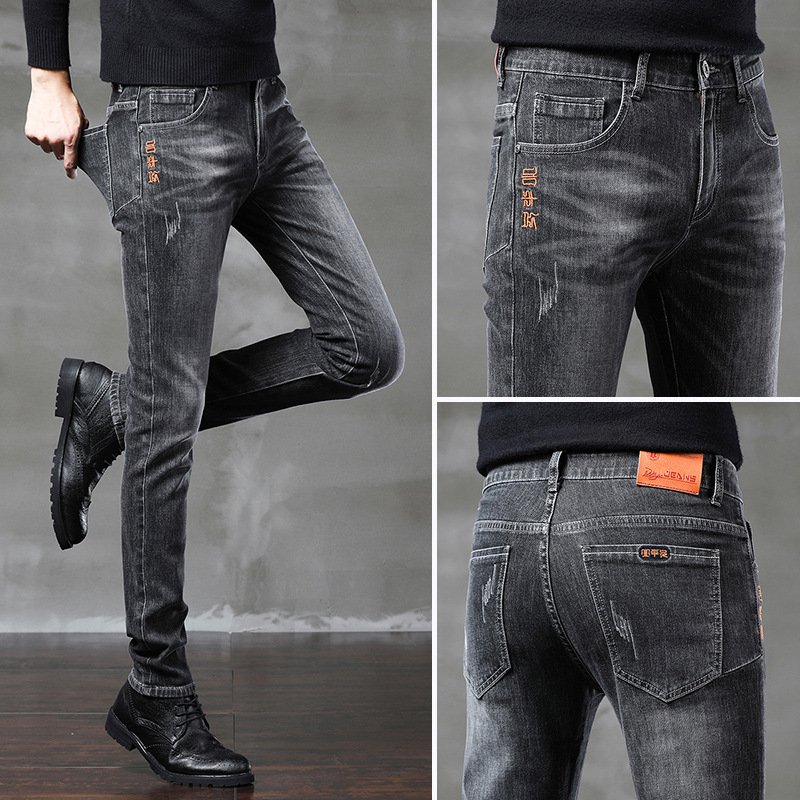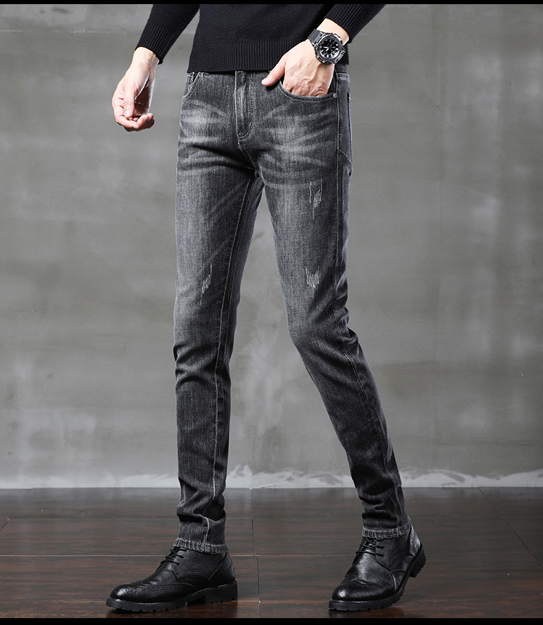 봄과 여름 스트레치 남성용 청바지 남성용 트렌디 스트레치 슬림핏 스키니 팬츠 한국 스타일 슬림 핏 긴 바지