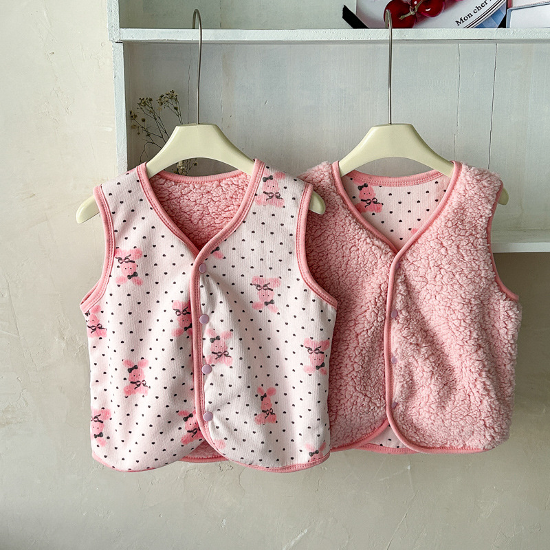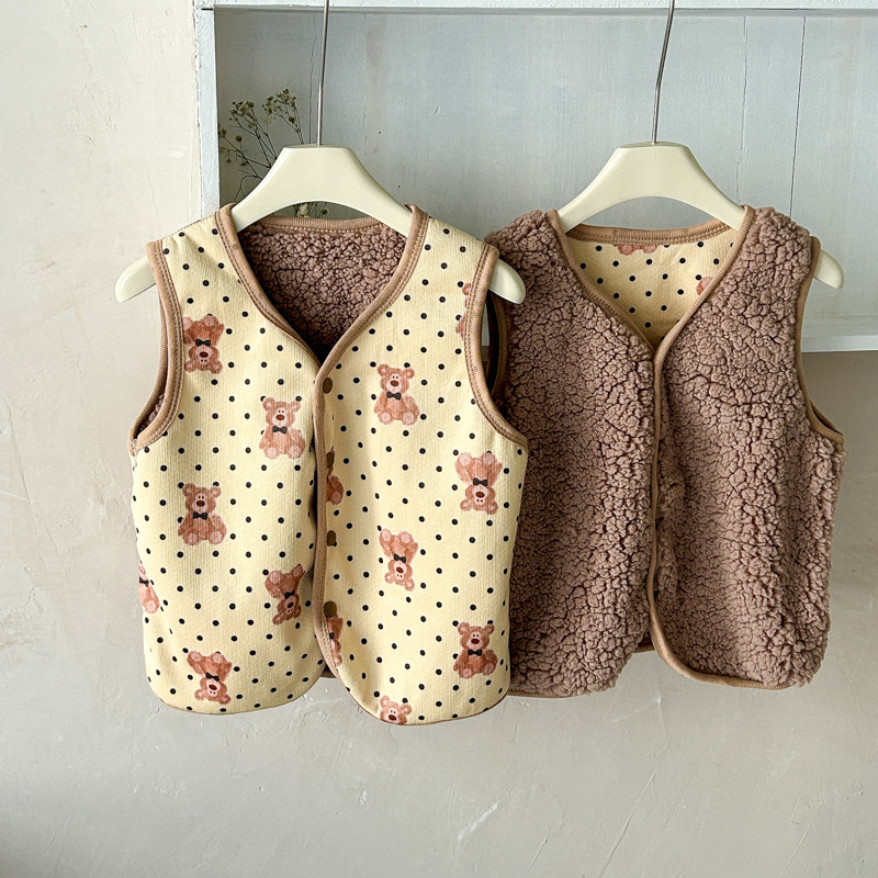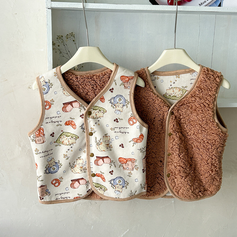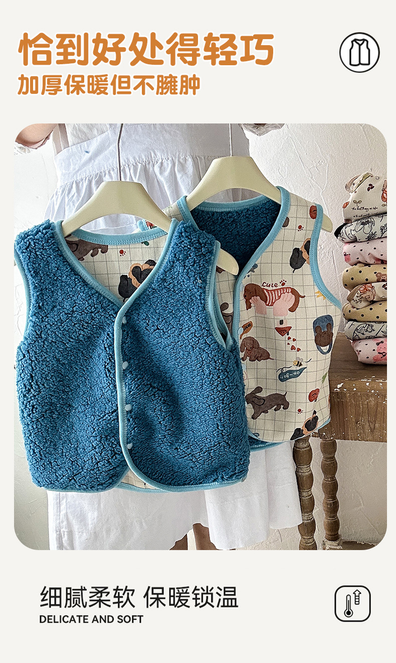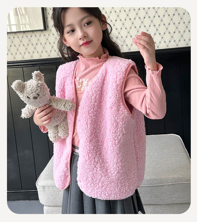 어린이 기모 두꺼운 조끼 겉옷 양고기 벨벳 양면 따뜻한 카디건 허리 코트 아기 조끼 가을과 겨울