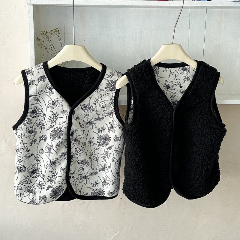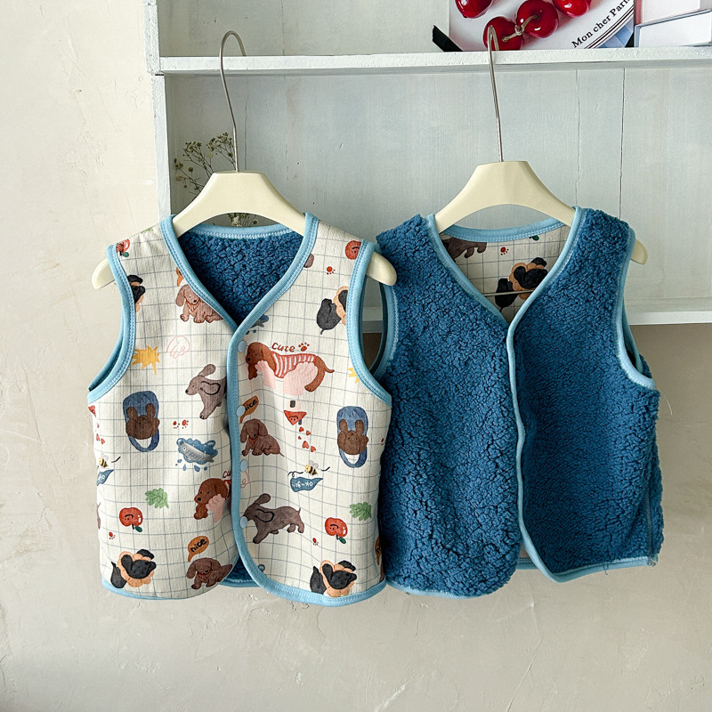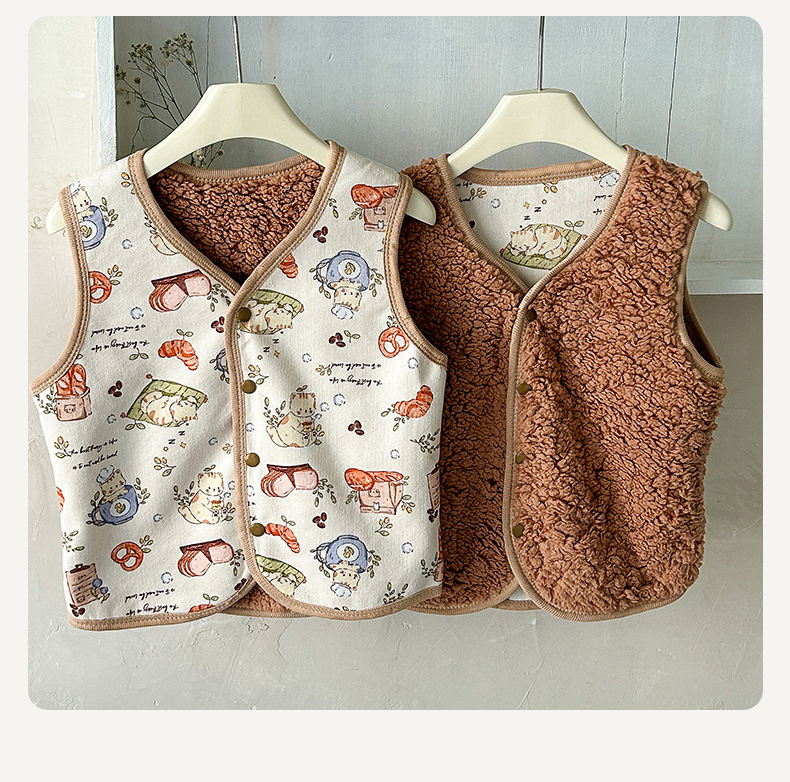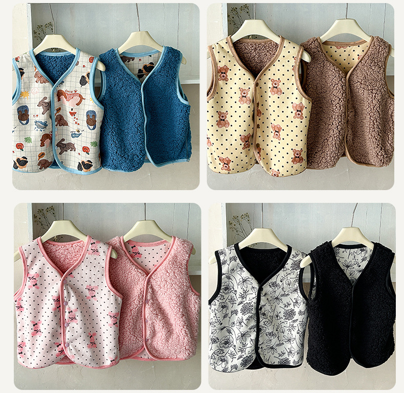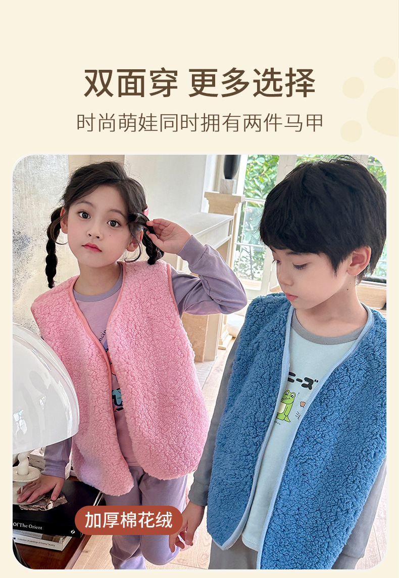 어린이 기모 두꺼운 조끼 겉옷 양고기 벨벳 양면 따뜻한 카디건 허리 코트 아기 조끼 가을과 겨울