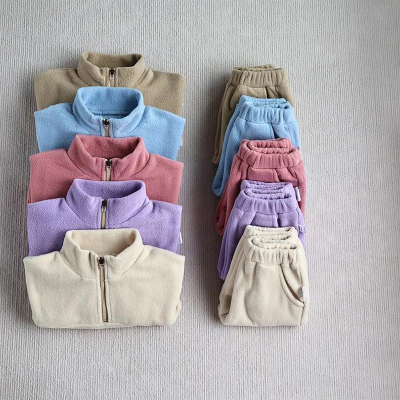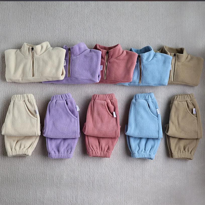 아마존 신상 가을 유아용 양면 플리스 스포츠 세트 아기 봄 가을 플리스 세트 외출용 투피스 세트