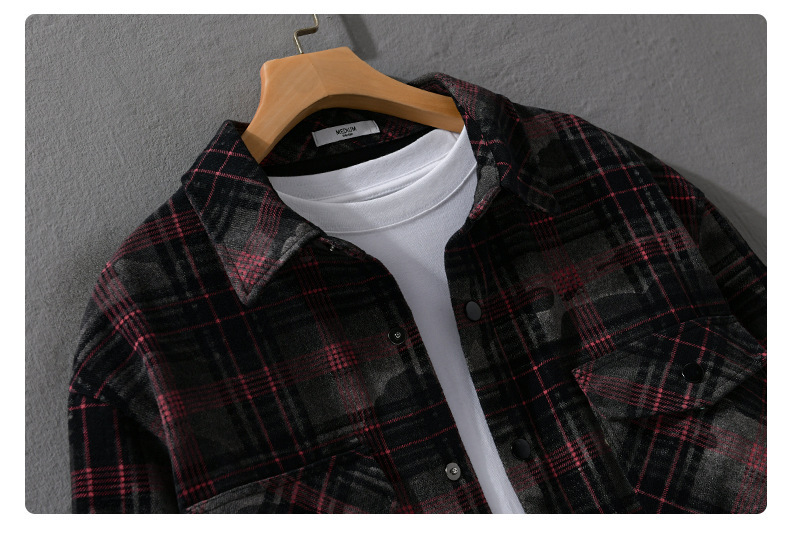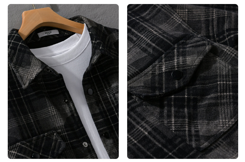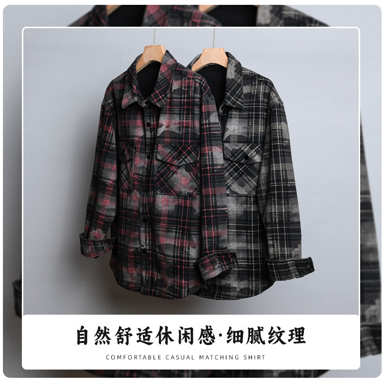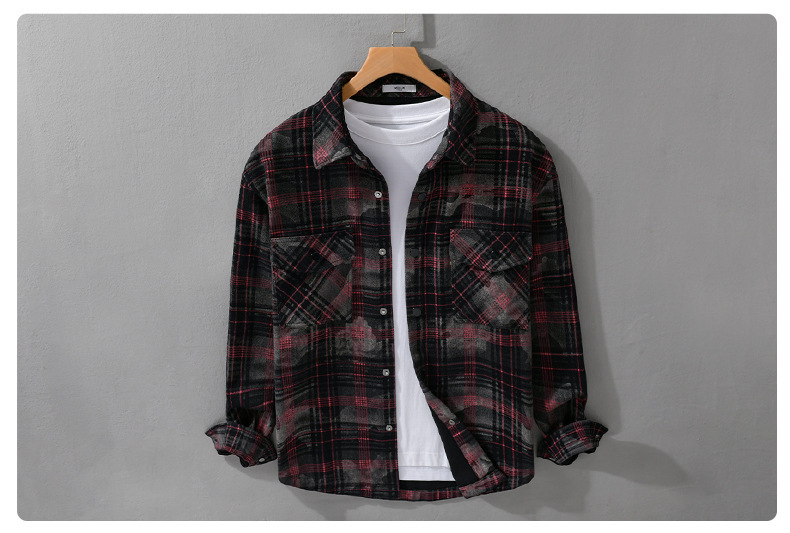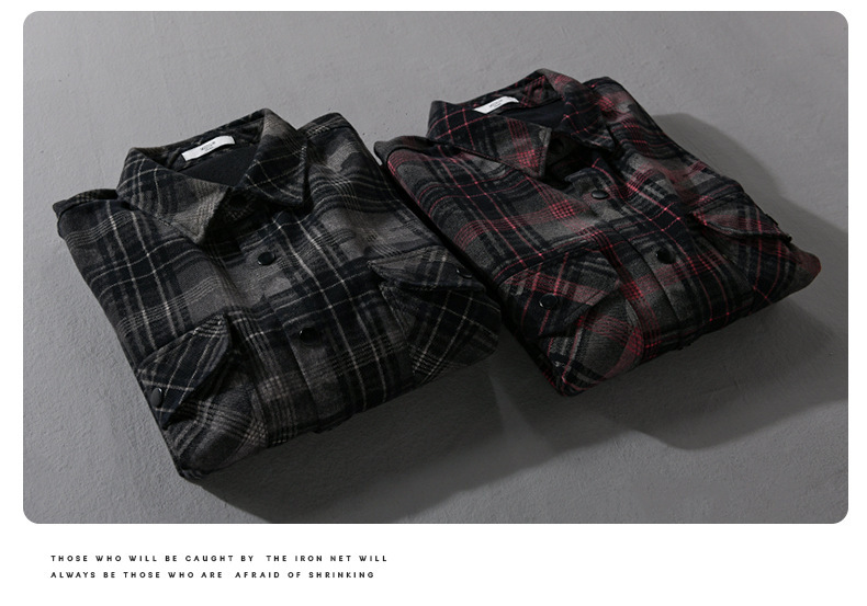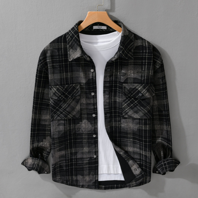 가을, 겨울 클래식 격자 무늬 남성 긴팔 셔츠 옷깃 복고풍 남성 트렌디 캐주얼 루즈 자켓 9910