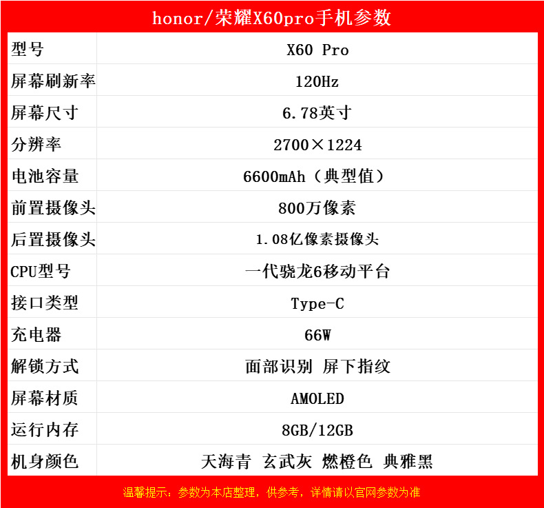 영광 X60Pro 새로운 5G 스마트 폰 6600mAh 칭하이 호수 배터리 오아시스 눈 보호 화면 사진스토어 가기