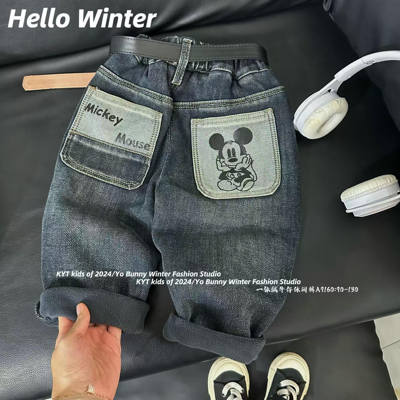 2025 겨울 신상품 부드러운 남아용 중소형 어린이용 일체형 벨벳 데님 팬츠 트렌디한 아기용 따뜻한 벨벳 팬츠