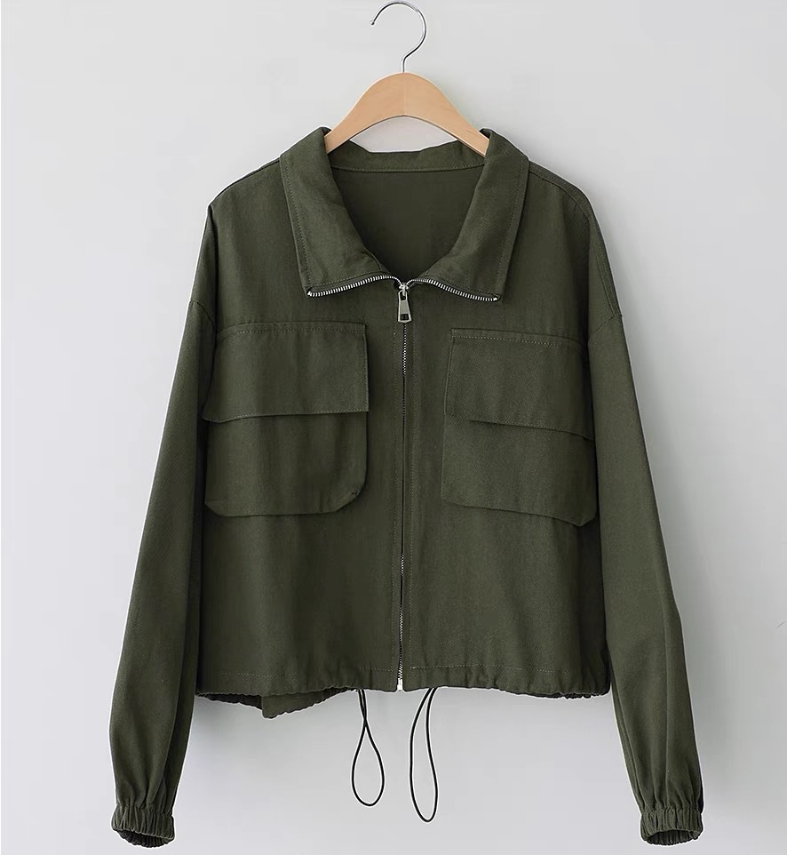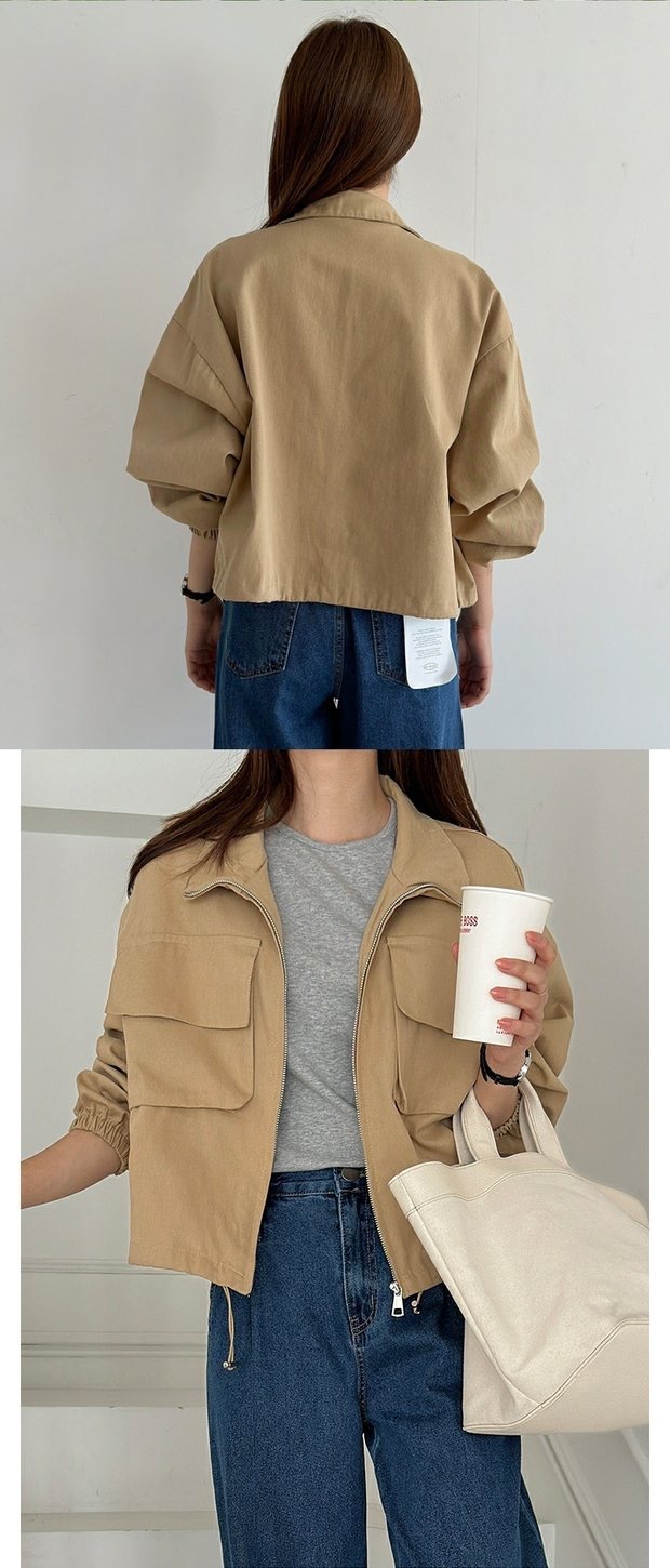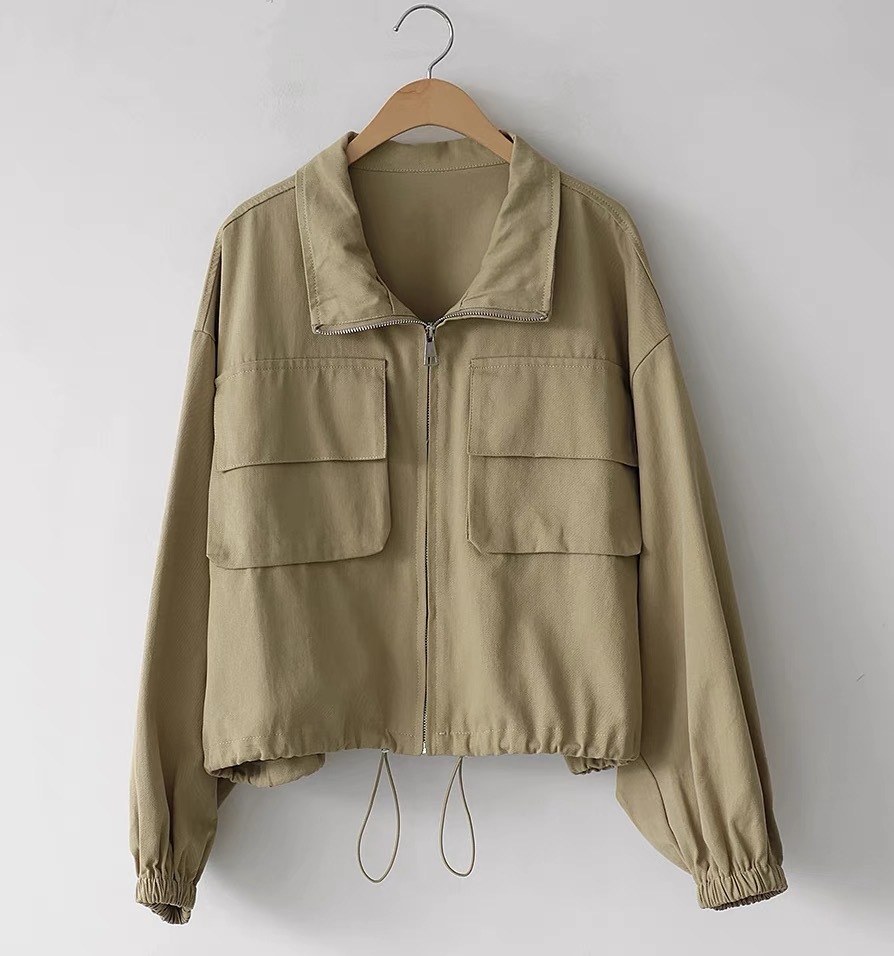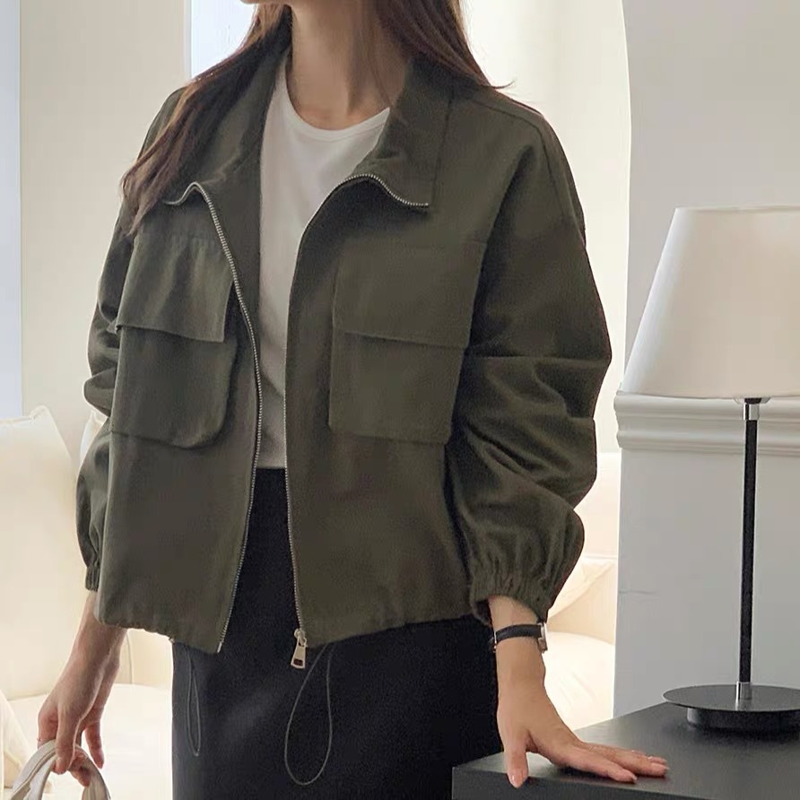한국 세련된 가을 새로운 야구 유니폼 큰 포켓 bf 스타일 캐주얼 지퍼 작업 짧은 재킷 스탠드 칼라 코트 여성