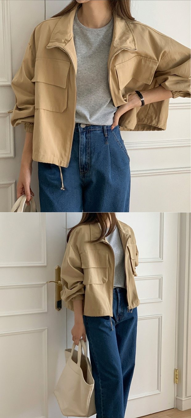 한국 세련된 가을 새로운 야구 유니폼 큰 포켓 bf 스타일 캐주얼 지퍼 작업 짧은 재킷 스탠드 칼라 코트 여성스토어 가기