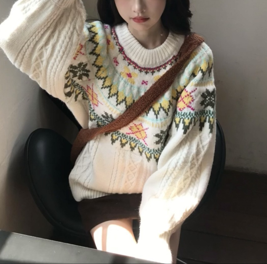 KANING 레트로 스위트 페어 아일 스웨터 여성 2025 새로운 겨울 게으른 하이 엔드 한국 스타일 스웨터 여성스토어 가기