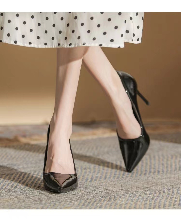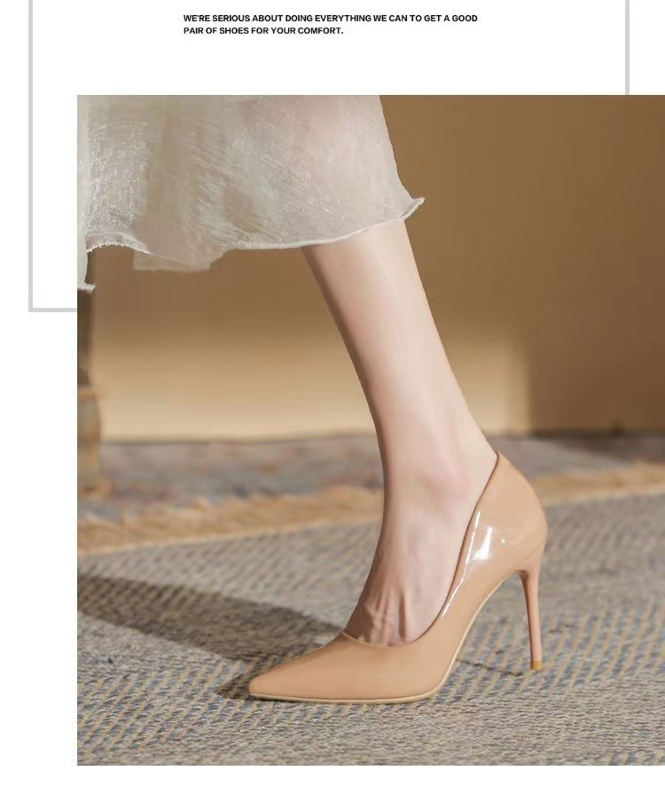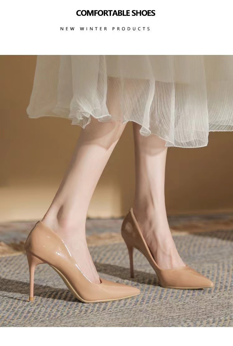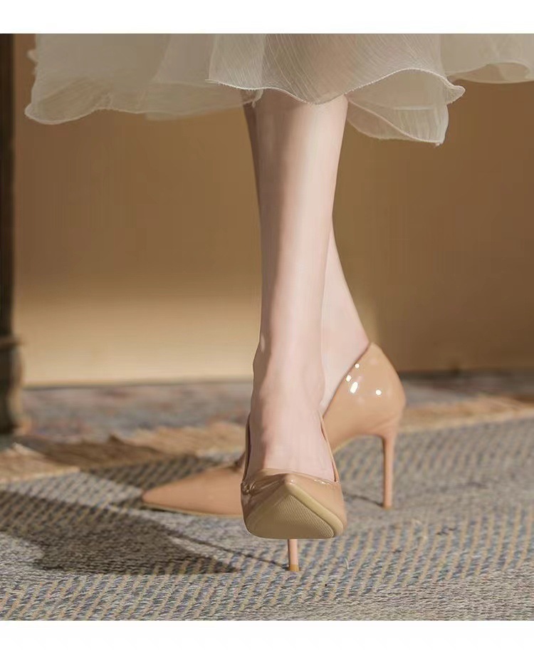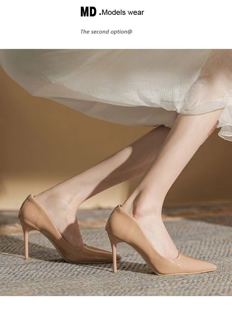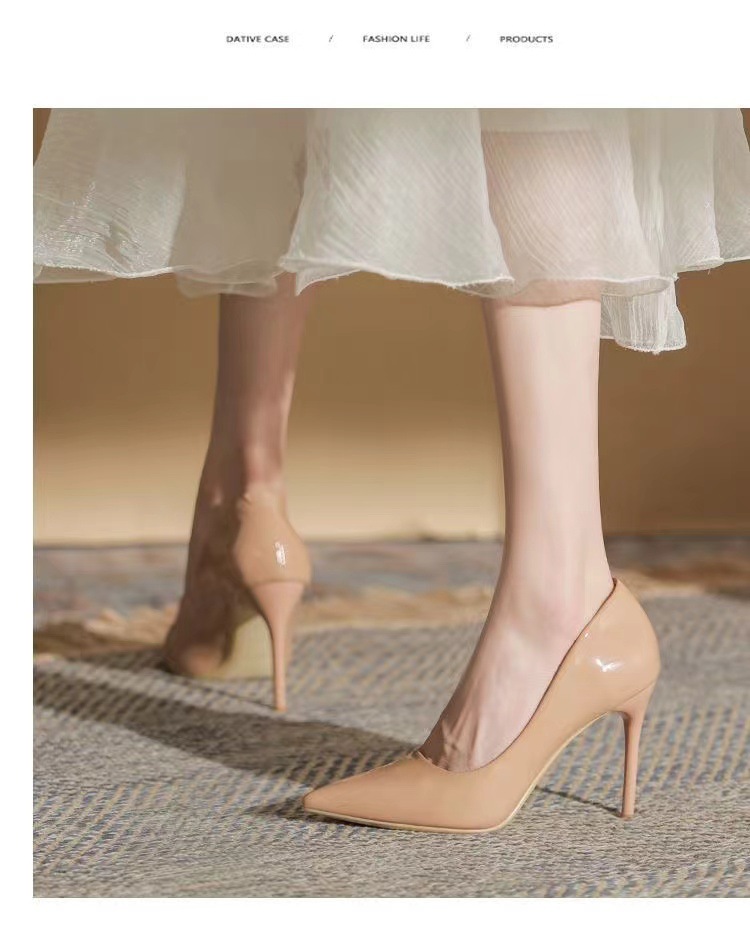 여성을 위한 누드 하이힐 2025 봄 가을 새로운 틈새 디자인 기질 밝은 가죽 블랙 스틸레토 뾰족한 발가락 신발스토어 가기