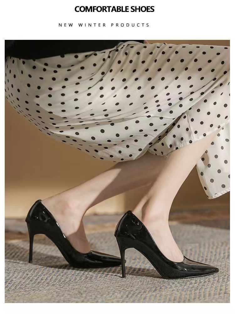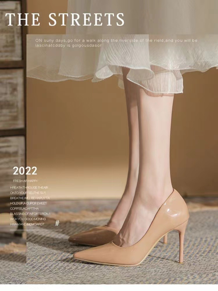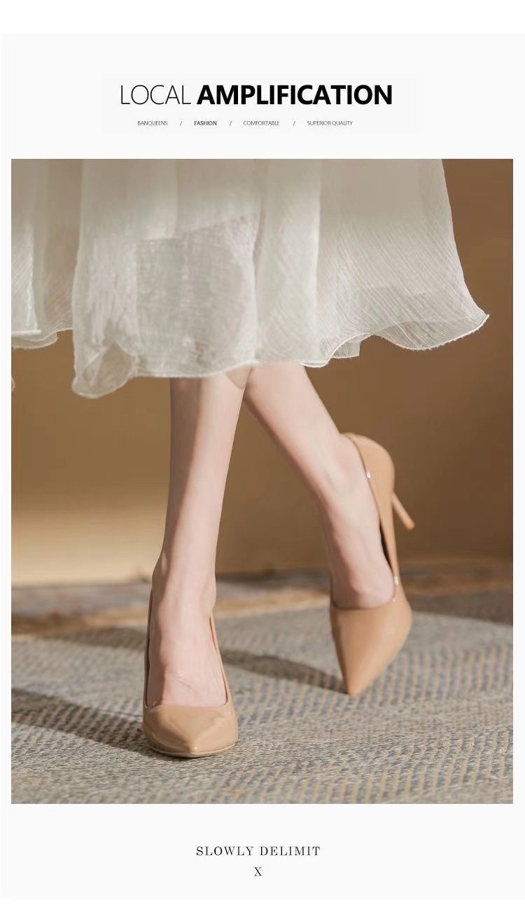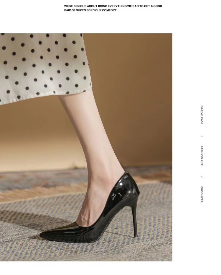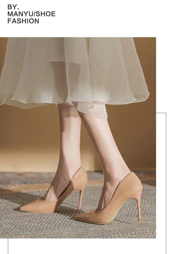 여성을 위한 누드 하이힐 2025 봄 가을 새로운 틈새 디자인 기질 밝은 가죽 블랙 스틸레토 뾰족한 발가락 신발스토어 가기