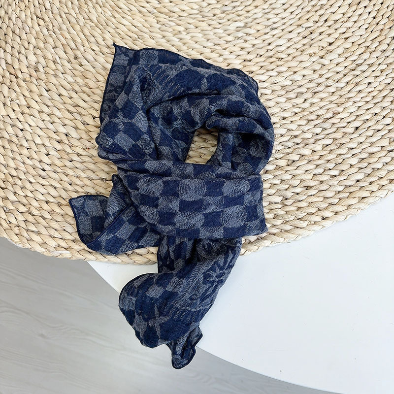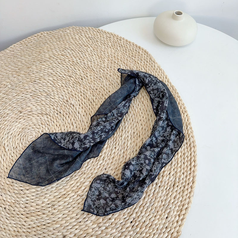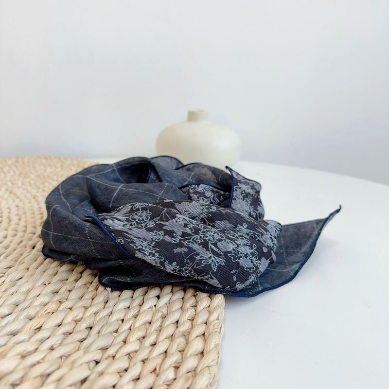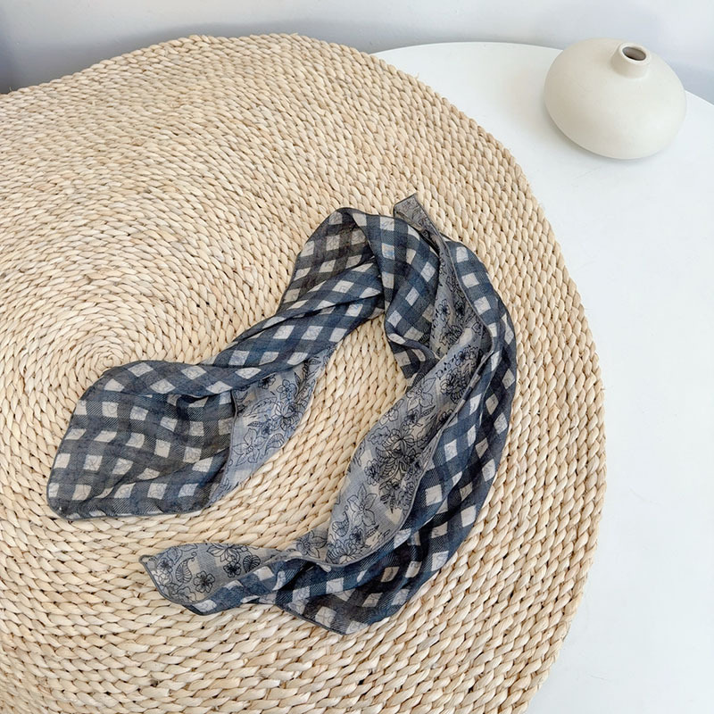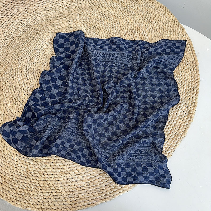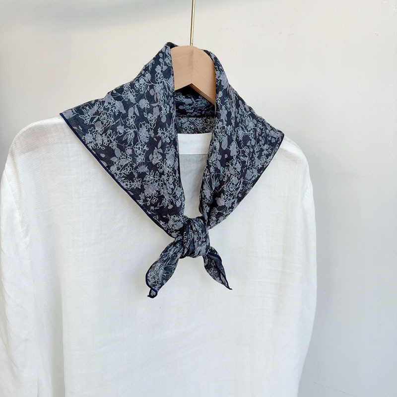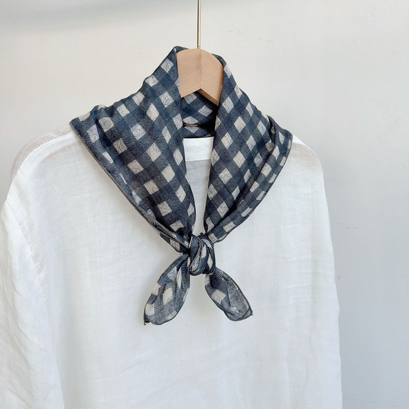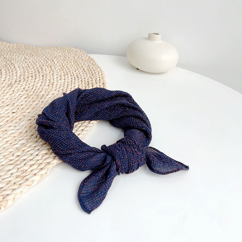 • 컬러 실 사각 스카프 - 네이비 블루 65*65cm