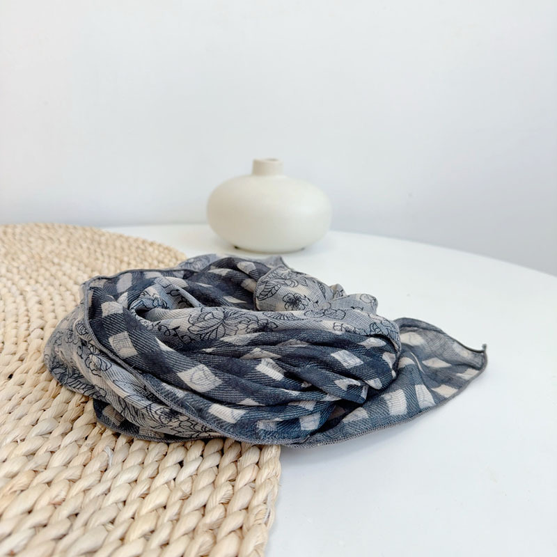 • 컬러 실 사각 스카프 - 회색 보라색 65*65cm