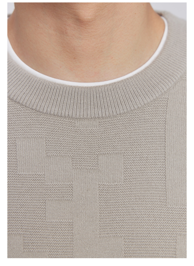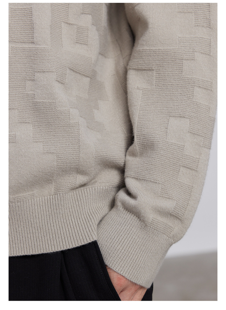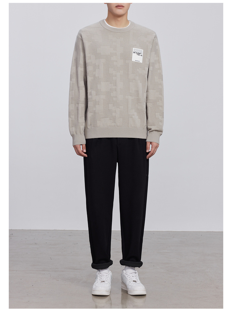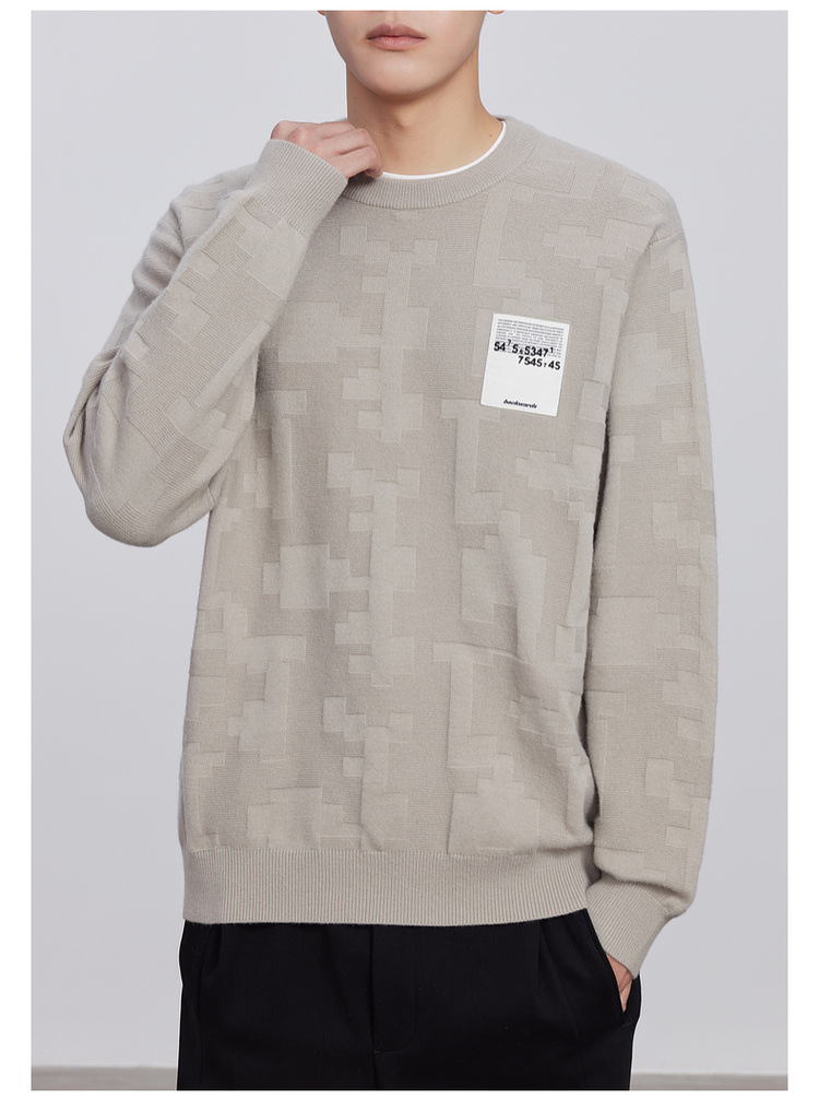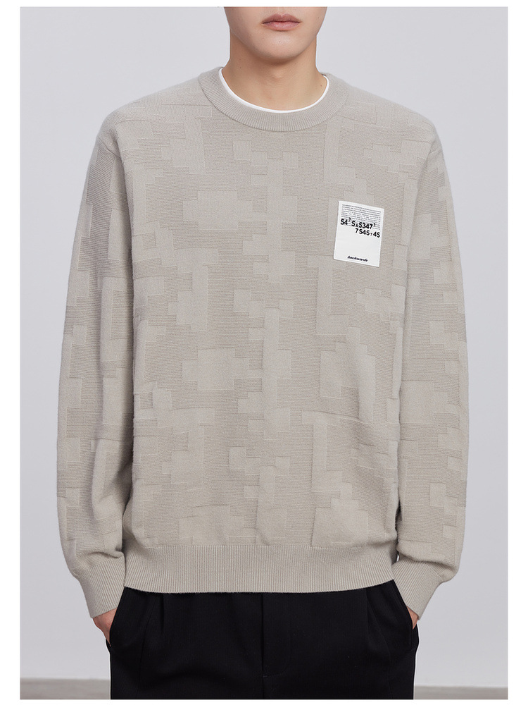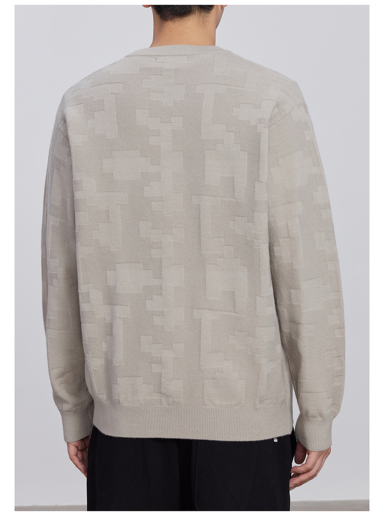 [Lyocell] 둥근 목 자카드 텍스처 캐주얼 스웨터 남자 2024 년 겨울 새 패션 마이크로 느슨한 니트 스웨터