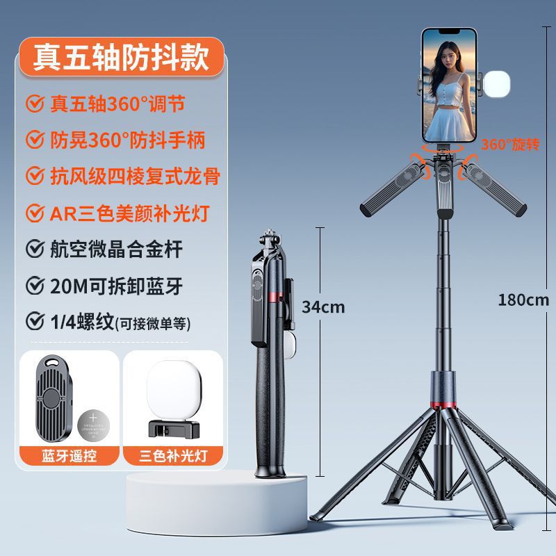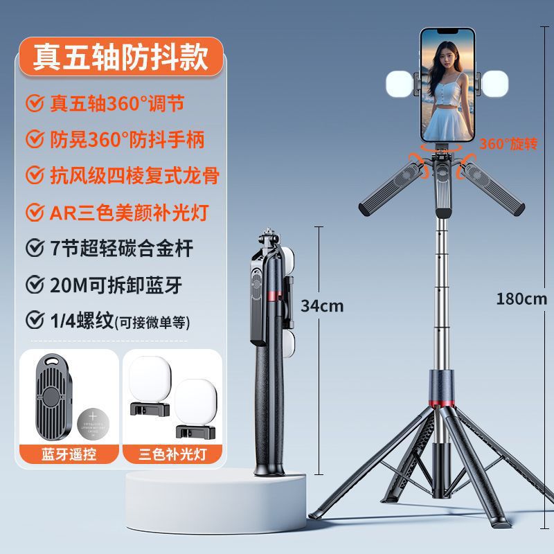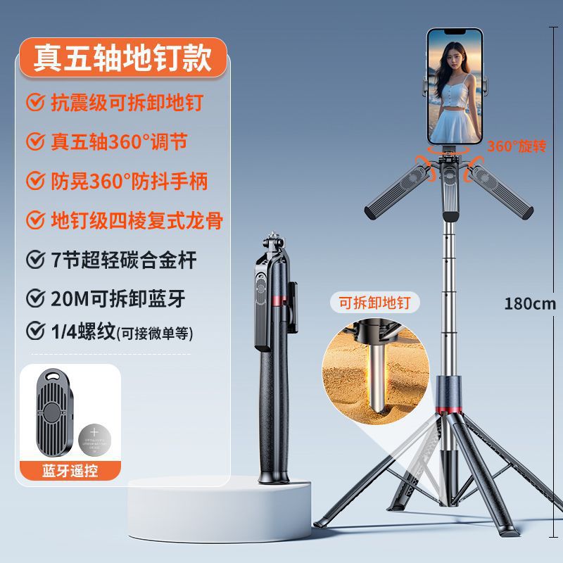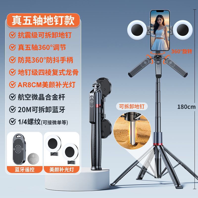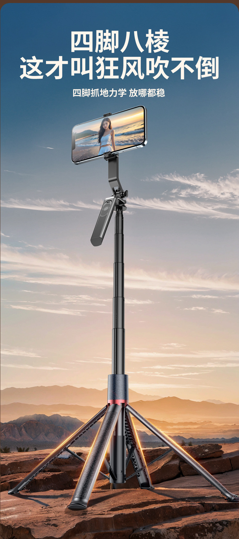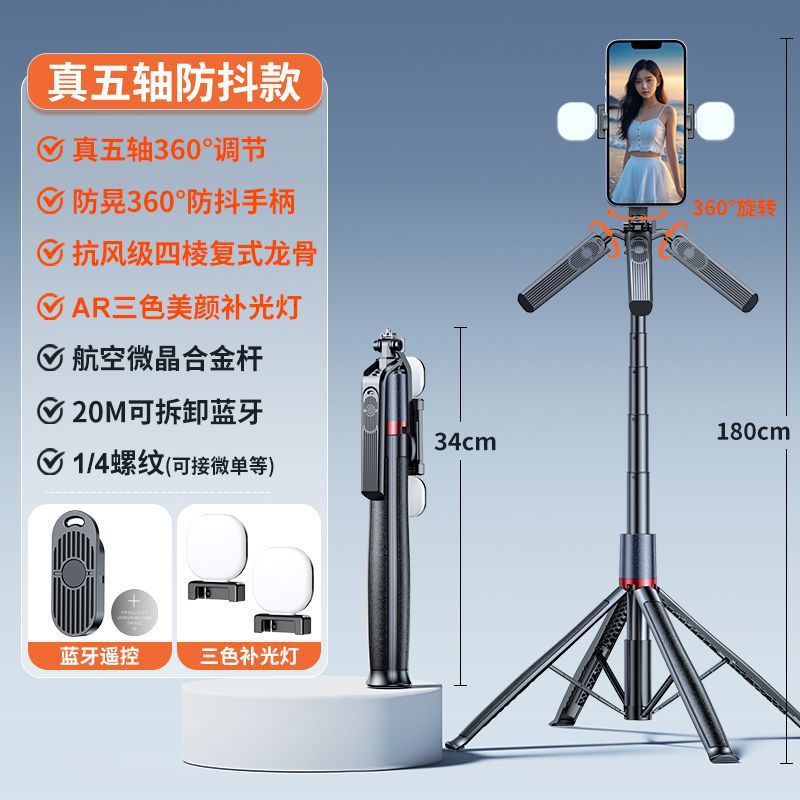 국경 간 새로운 휴대 전화 셀카 스틱 연장 블루투스 원격 제어 다기능 라이브 방송 바닥 쿼드 쉐이크 방지 브래킷