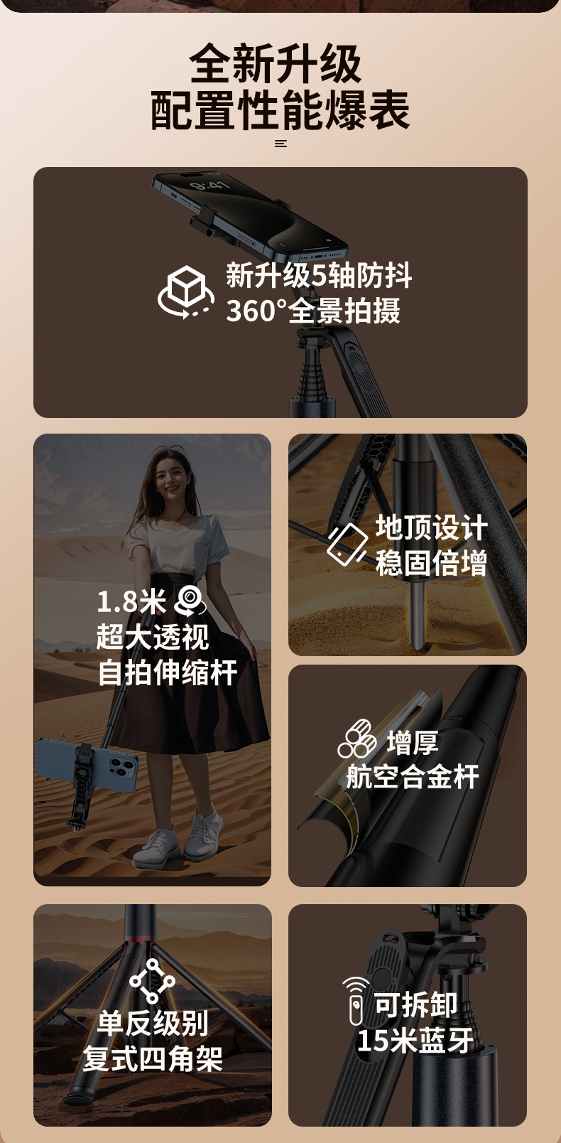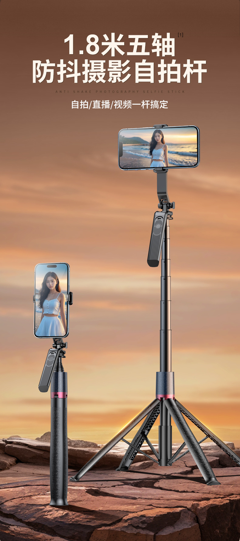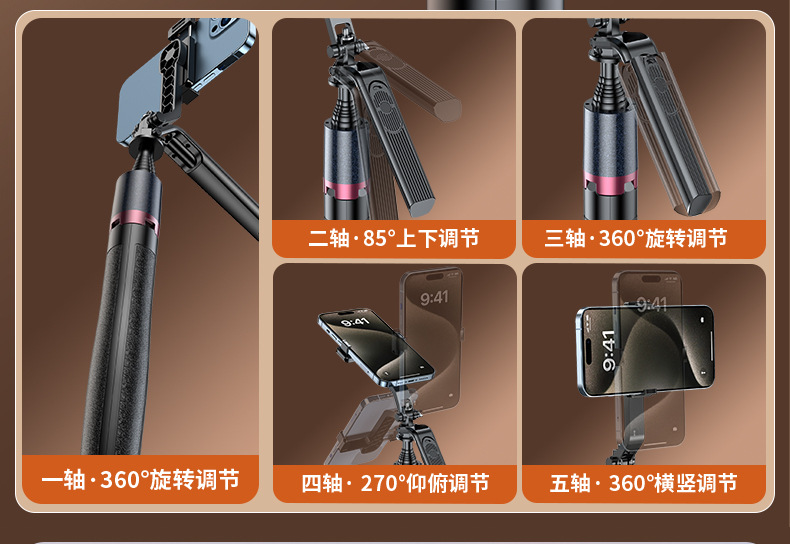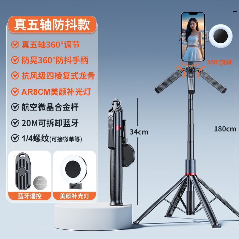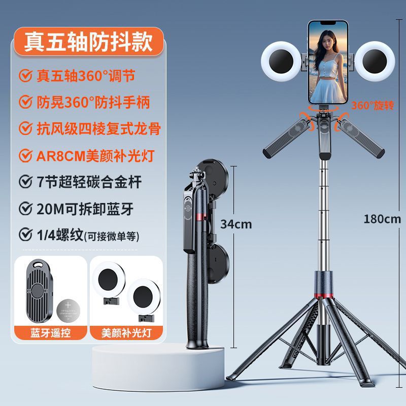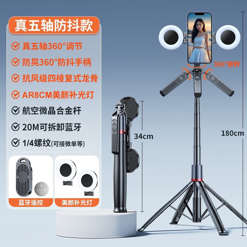 국경 간 새로운 휴대 전화 셀카 스틱 연장 블루투스 원격 제어 다기능 라이브 방송 바닥 쿼드 쉐이크 방지 브래킷