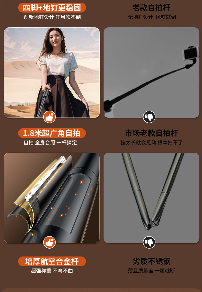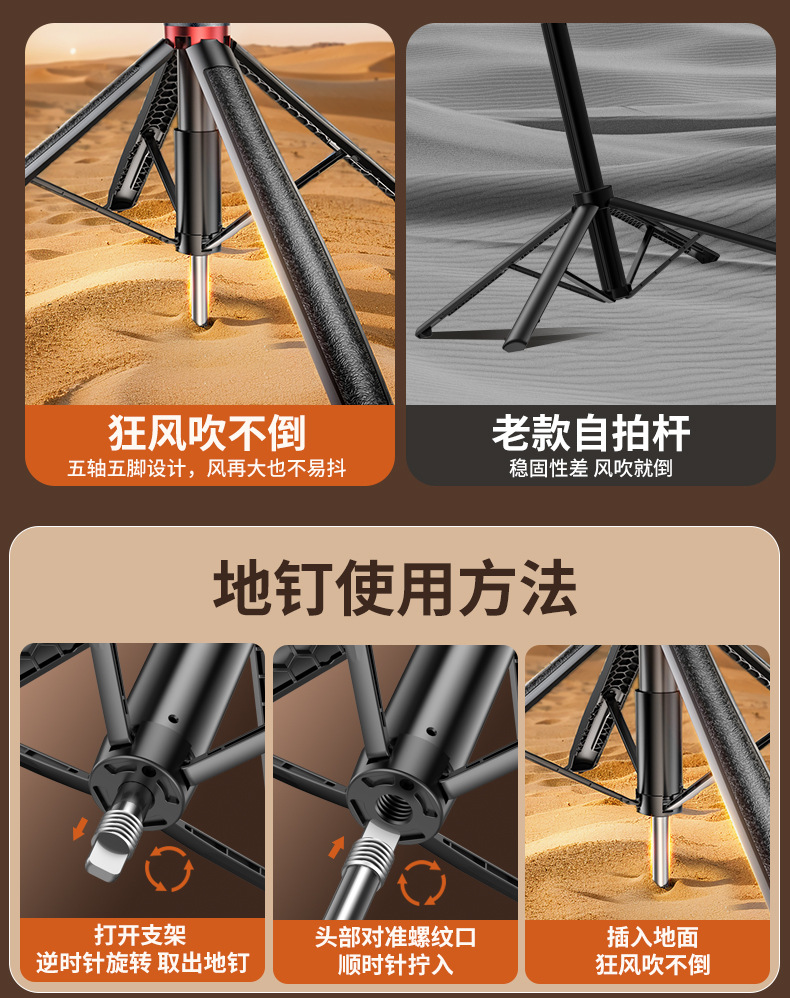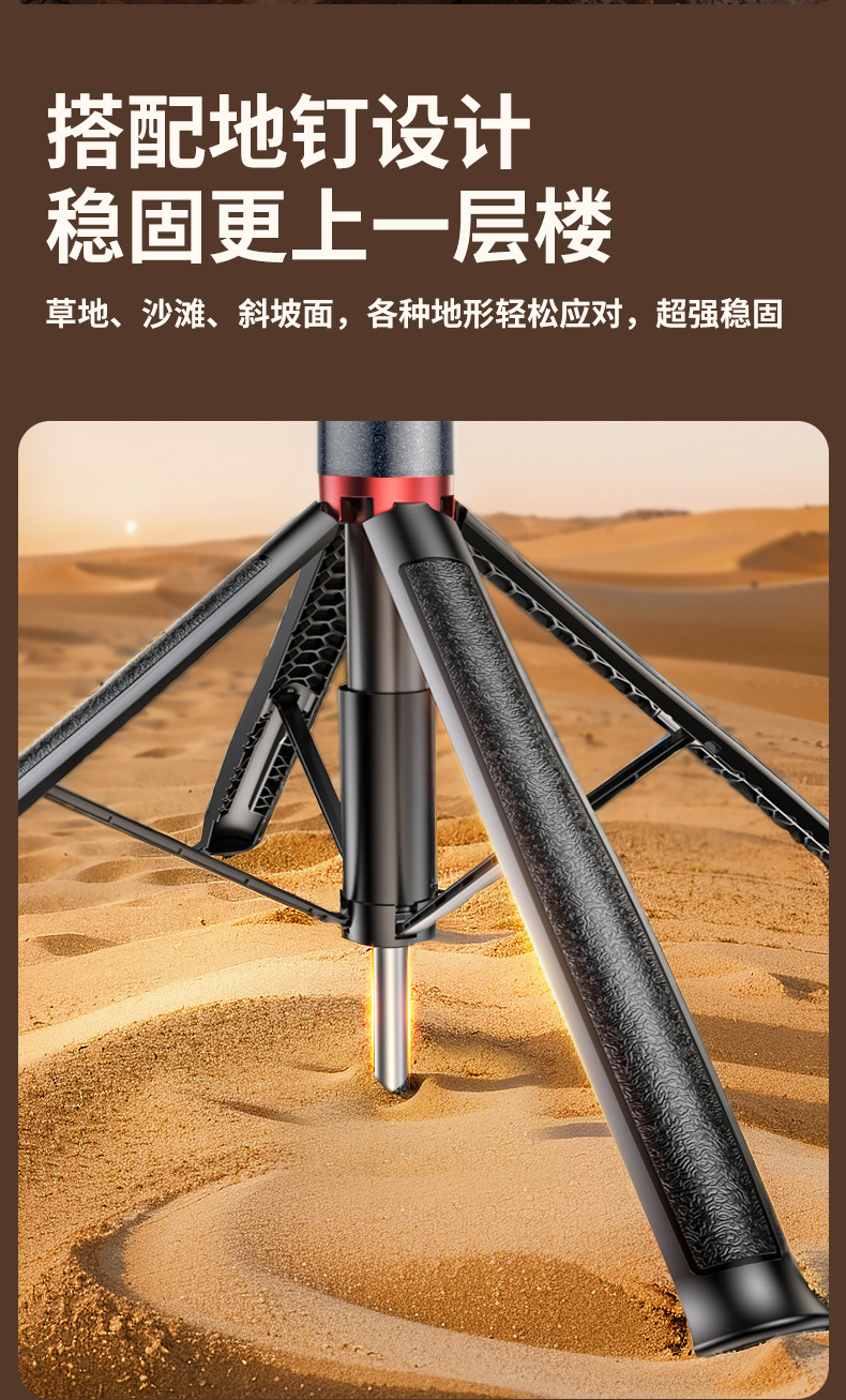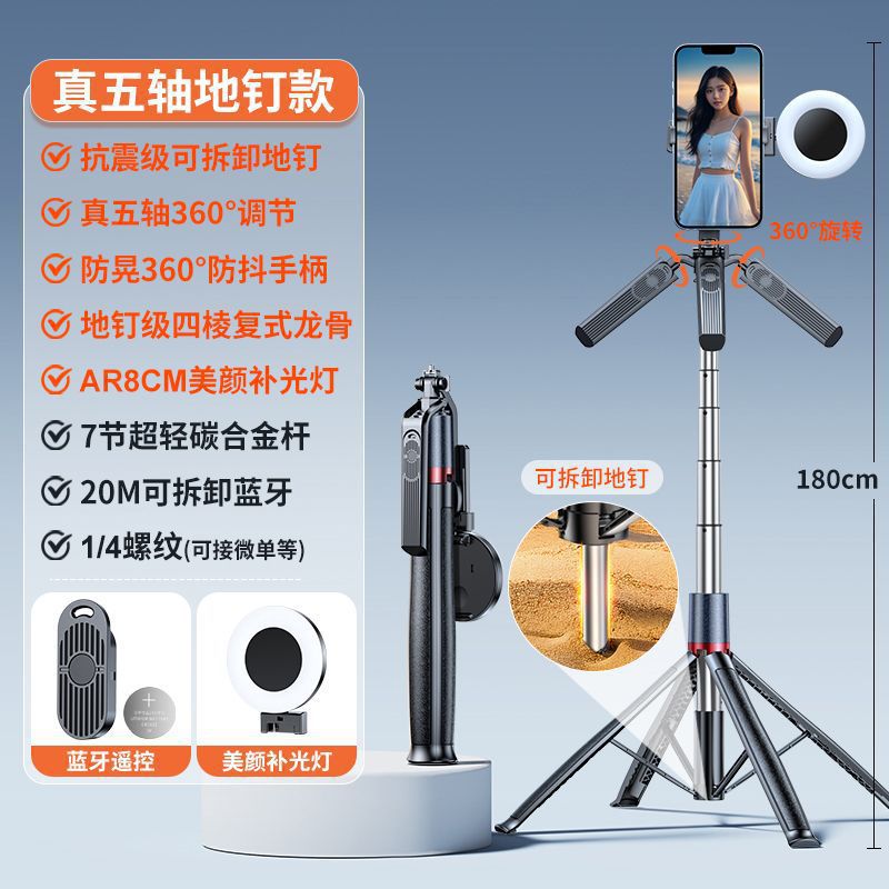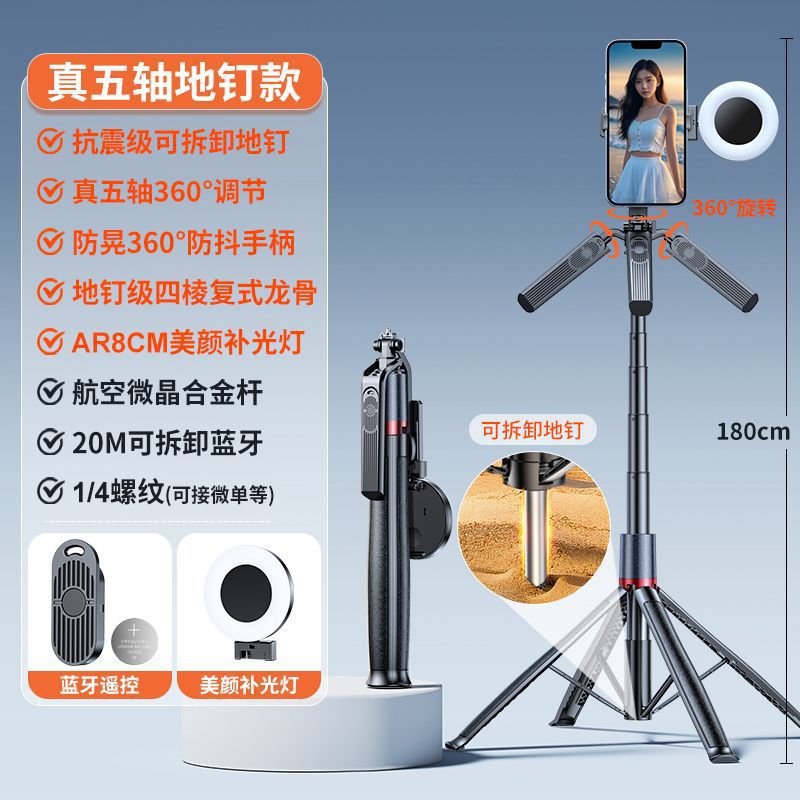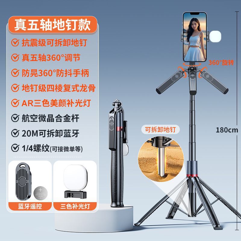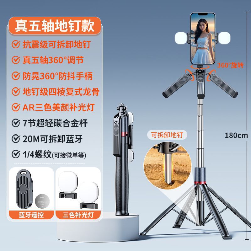 • 접지 못이 포함된 S186 4각 셀카봉, 알루미늄 합금 모델, 이중 헤드라이트