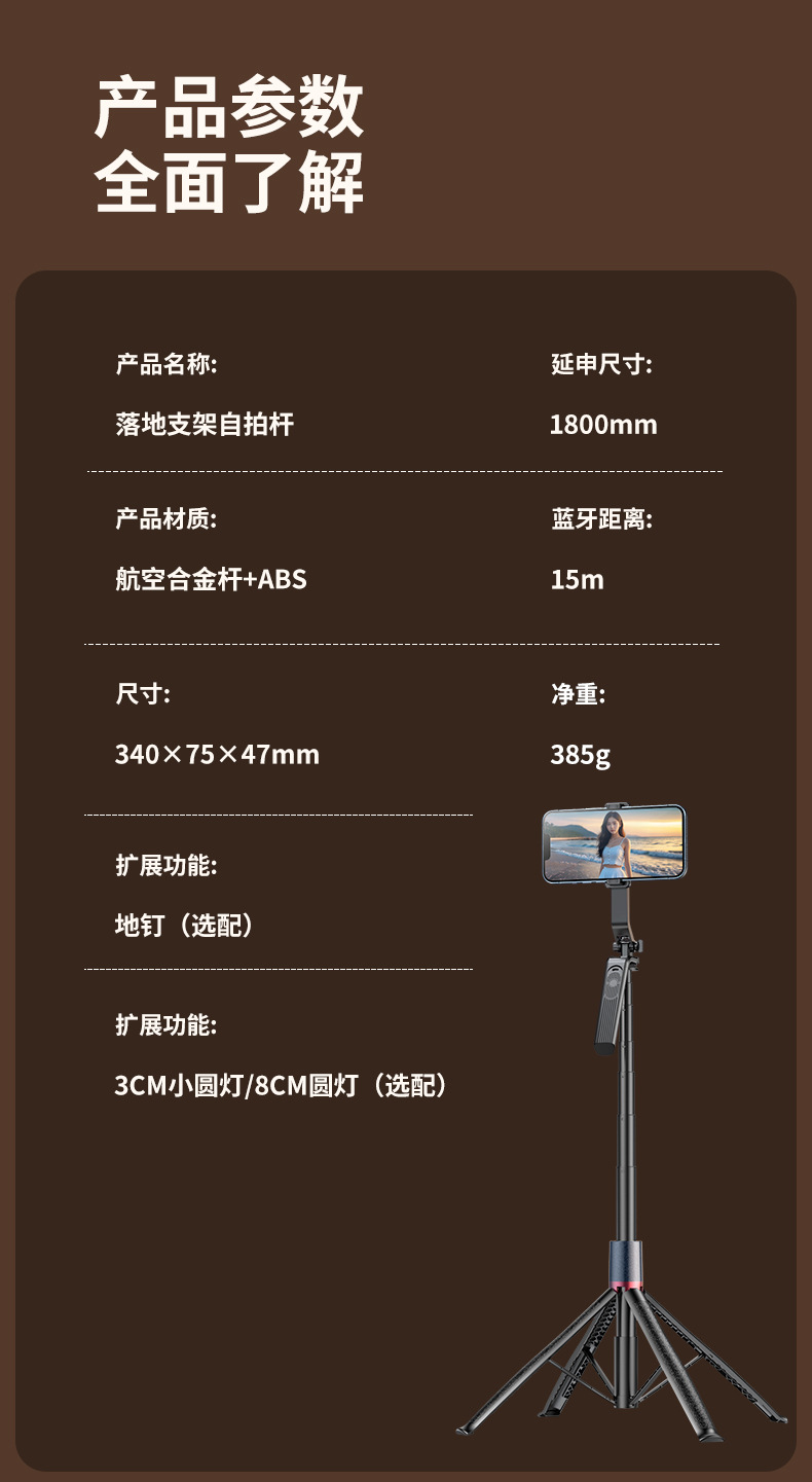 • S186 4각 셀카봉에는 접지 못이 포함되어 있지 않으며 조명이 없는 알루미늄 합금 모델입니다.