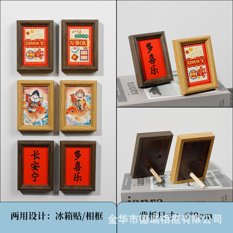 창조적 인 만화 미니 마그네틱 냉장고 스티커 나무 긴 사각형 작은 사진 프레임 비 천공 diy3 인치 테이블 선물스토어 가기