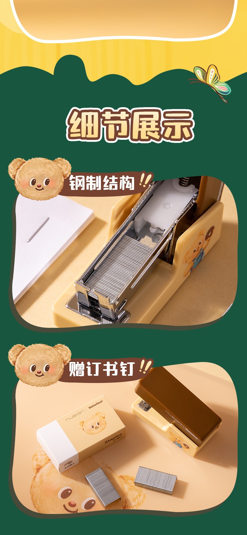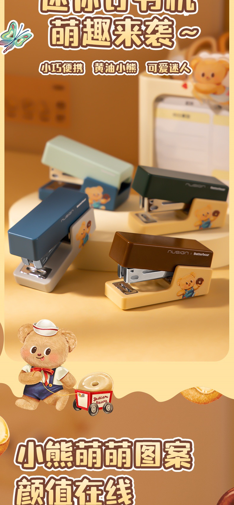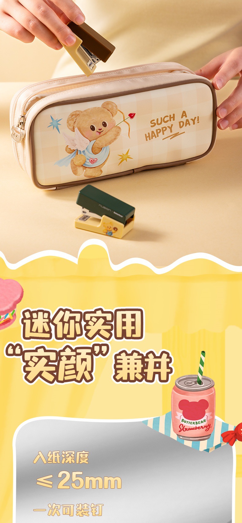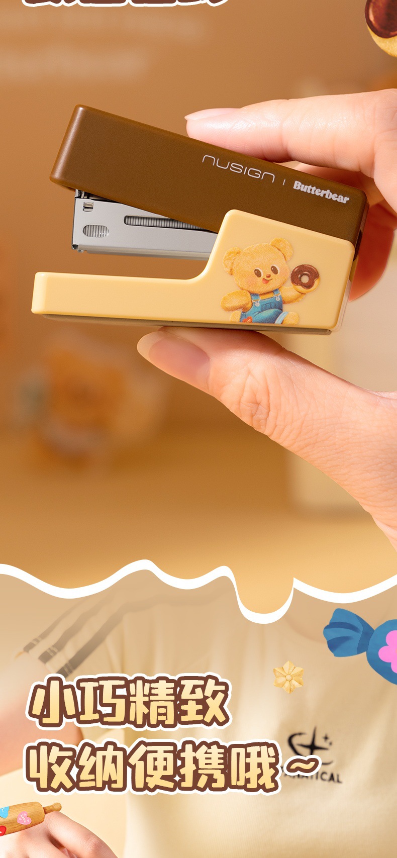 델리 NS083-B 버터 곰 공동 스테이플러 학생 귀여운 스테이플러 스몰 사이즈 휴대용 스테이플러